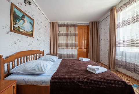 Примерно на одинаковом расстоянии – в 7–8 километрах находится железнодорожный вокзал и аэропорт.Трехэтажный кирпичный корпус гостевого дома расположен всего в 200 метрах от моря. В распоряжении гостей комфортабельные номера с удобствами. В каждом номере есть душ, кондиционер, электрочайник и телевизор.Для удобства отдыхающих в гостевом доме организована общая кухня. Среди услуг – беспроводной интернет и прачечная. В паре минут ходьбы разместился городской галечный пляж, оснащенный всем необходимым для отдыха.