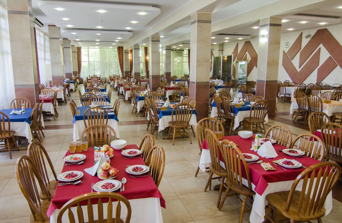 - столовая в отдельном здании, кухня европейская, часы работы 08:00-20:00