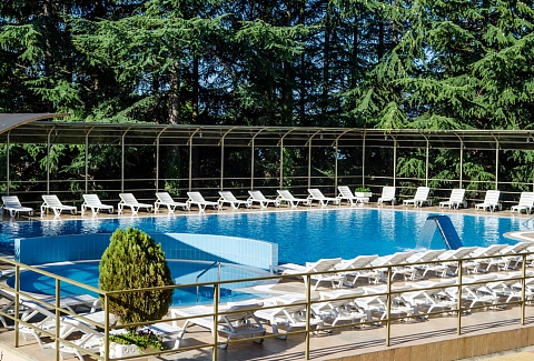 Поездом до ж/д вокзала Адлер, далее городским автобусом до остановки «Изумруд». Затем пешком 530 м до пансионата.