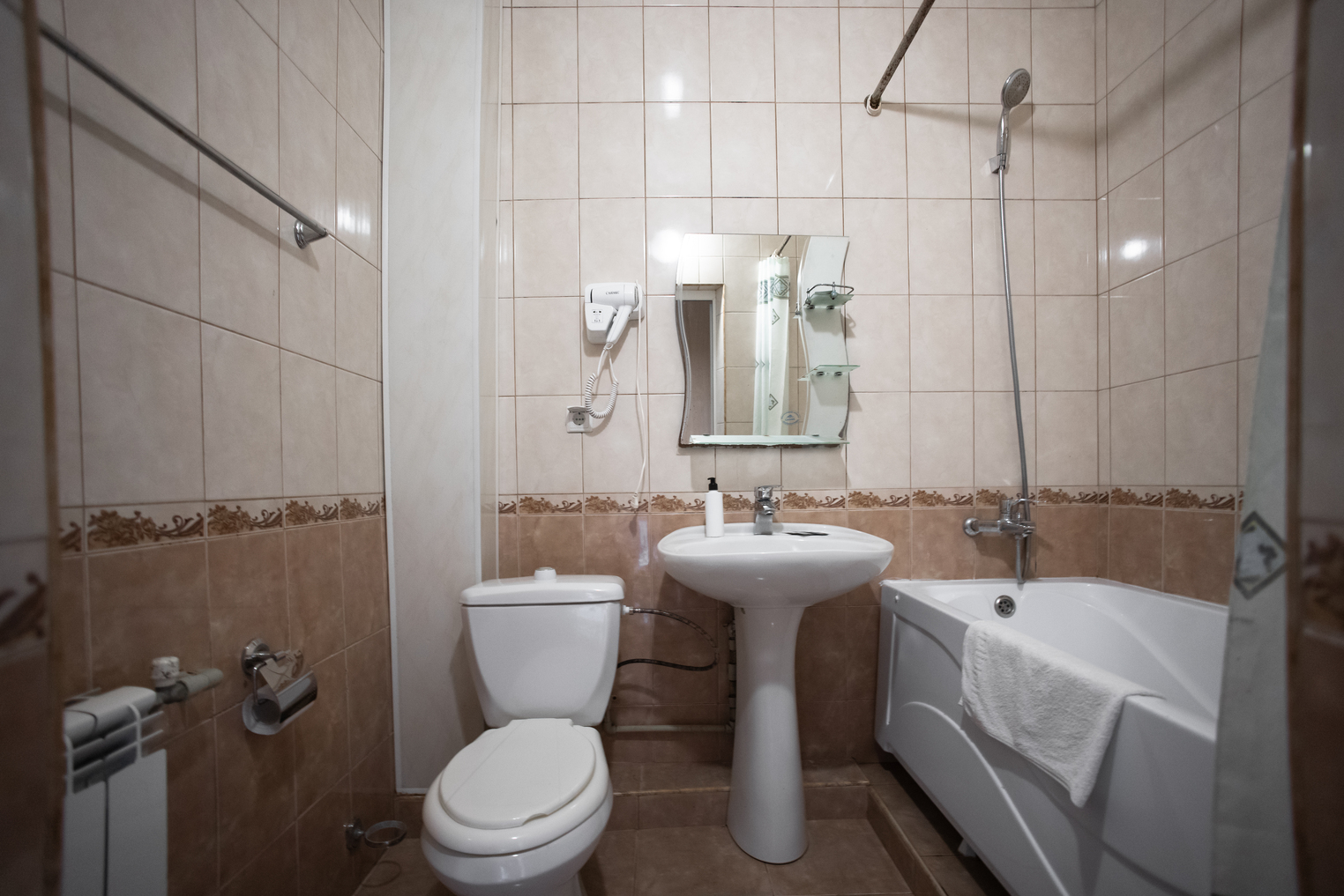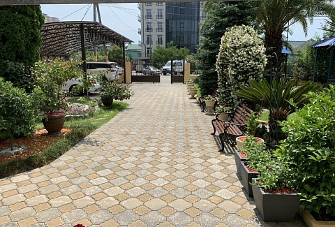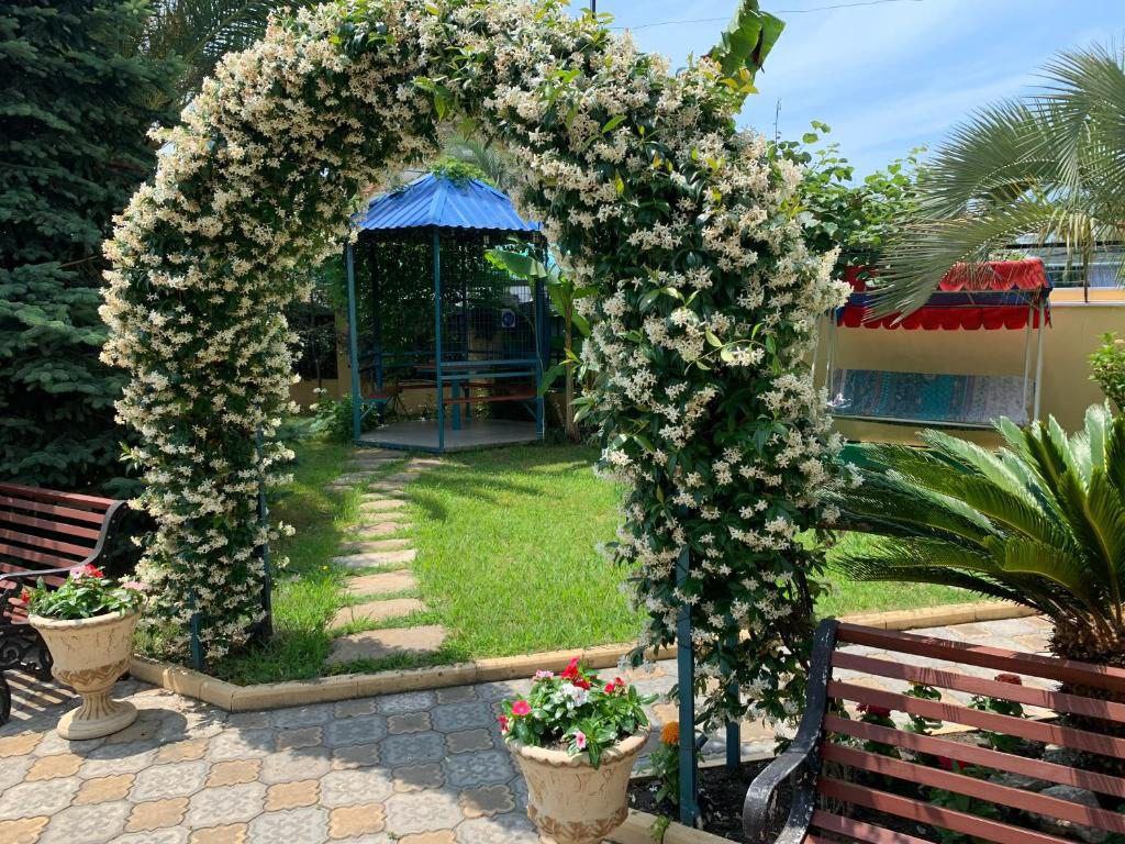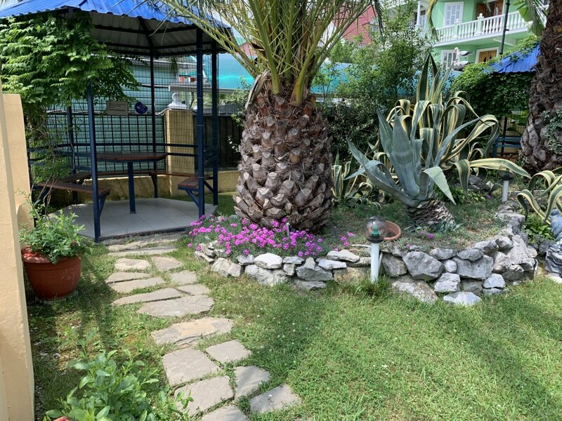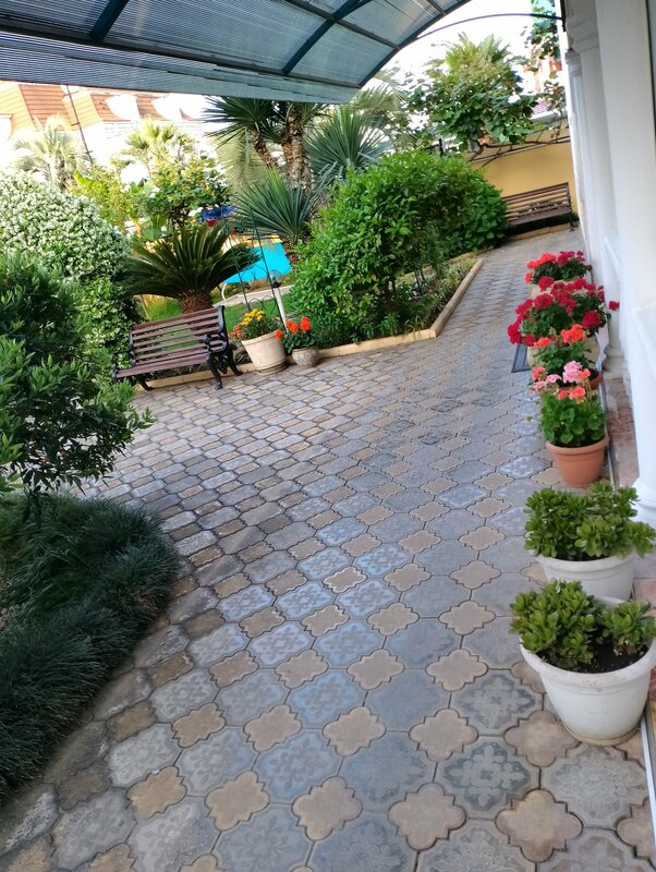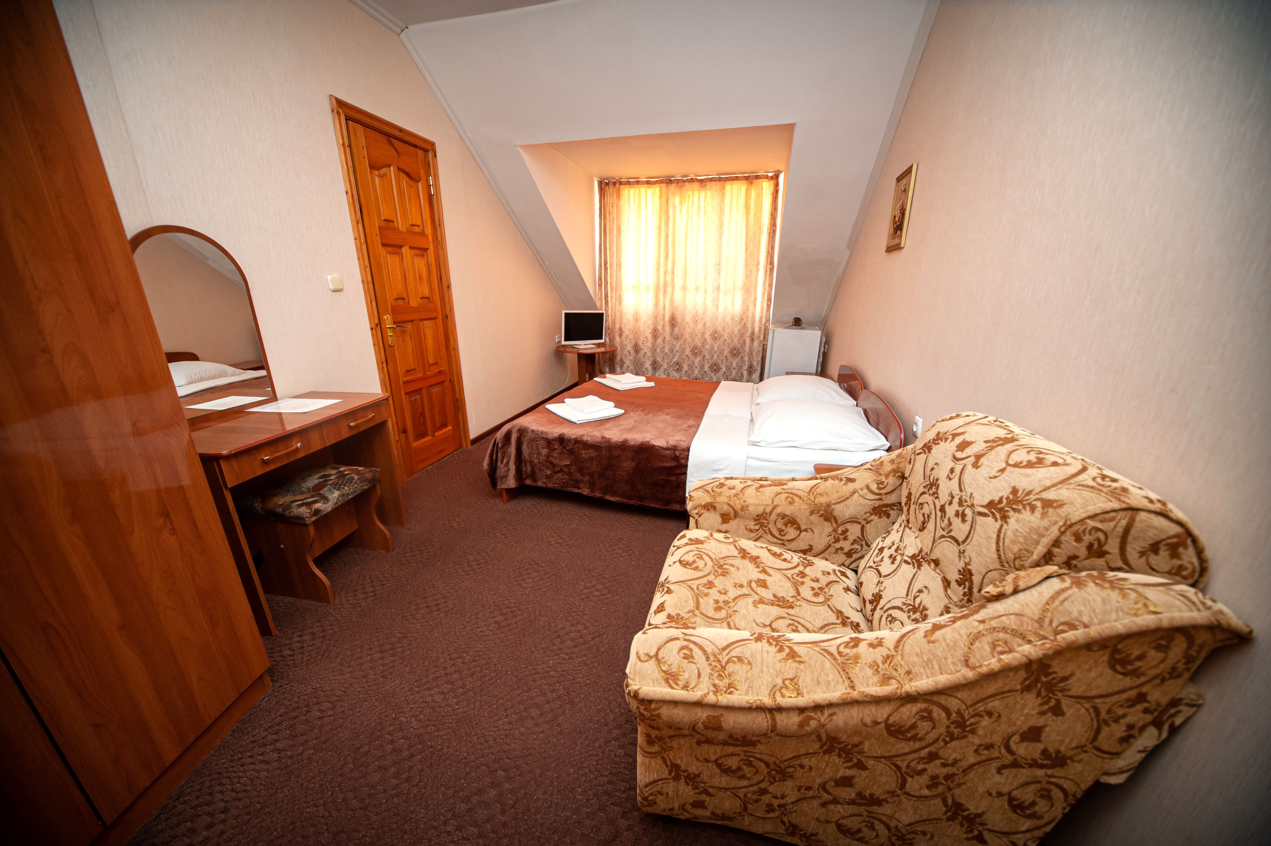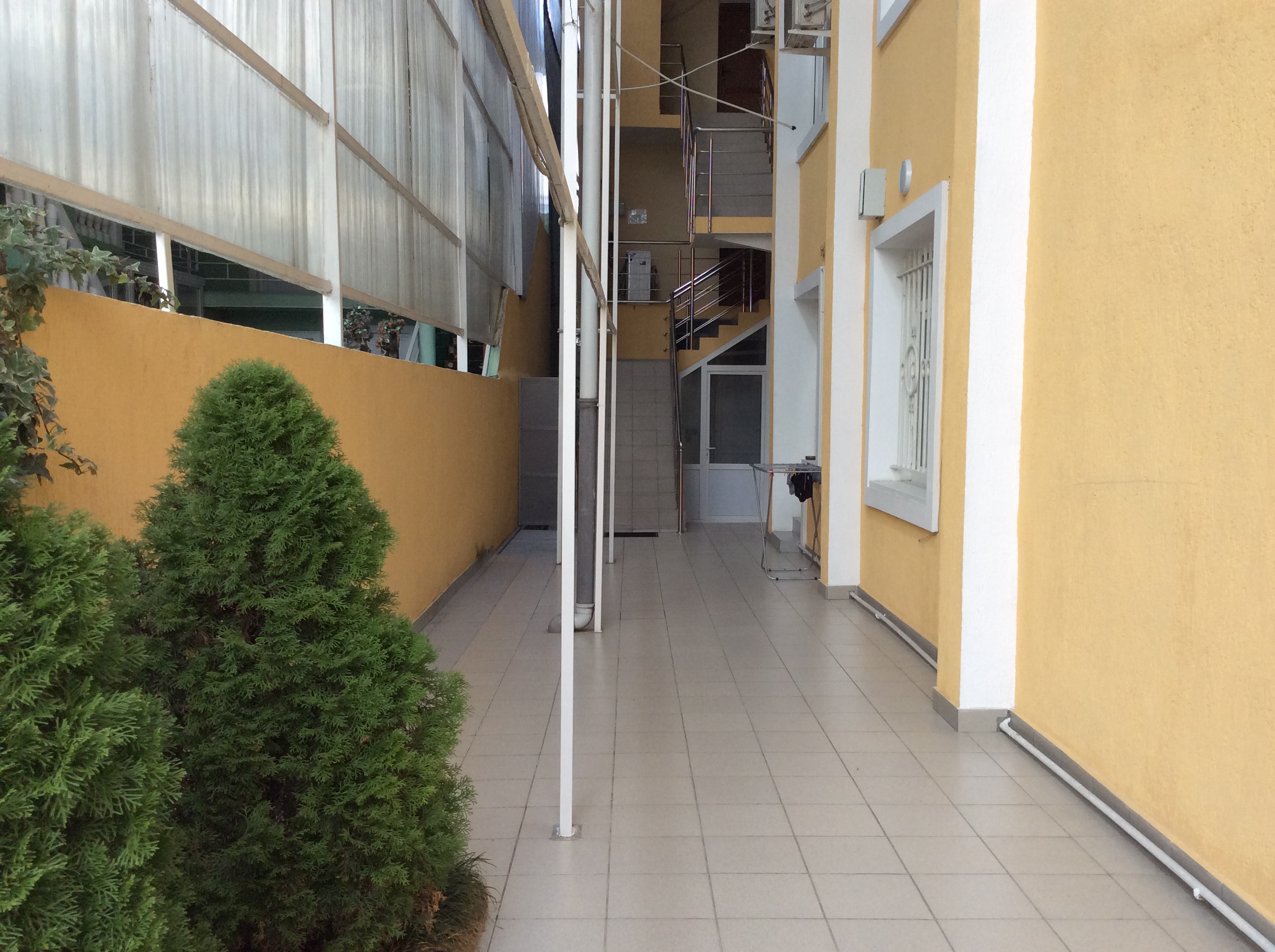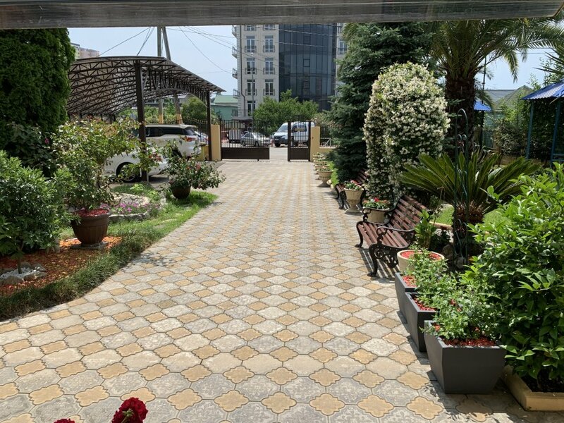 Отель занимает небольшую благоустроенную территорию в 400 метрах от моря. В распоряжении гостей однокомнатные и двухкомнатные номера с удобствами. В каждом номере предусмотрен индивидуальный санузел, есть кондиционер, электрочайник, мини-холодильник и телевизор. Для удобства отдыхающих в отеле есть микроволновая печь и термопод. В числе удобств — парковка возле корпуса и беспроводной интернет. До галечного пляжа — 5 минут ходьбы неспешным шагом. На побережье установлены лежаки, шезлонги, навесы, есть кабинки для переодевания.