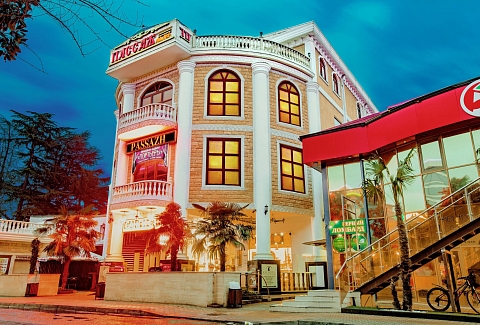 Отель «Пассаж» расположен в центре Адлера. Рядом находятся ТЦ «Сити Плаза», «Плаза Хоум», медицинский центр, различные магазины, кафе и рестораны, а также детские игровые центры. До центральной набережной и пляжа можно дойти пешком за 10 минут.