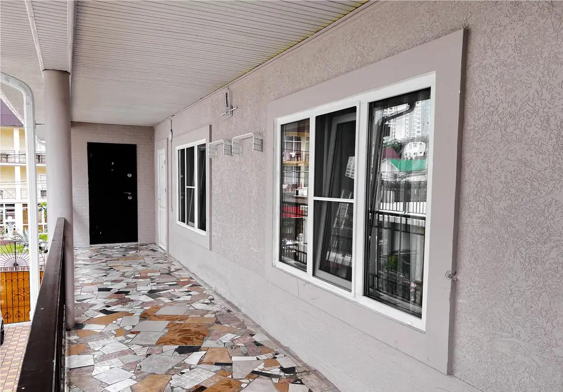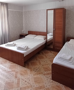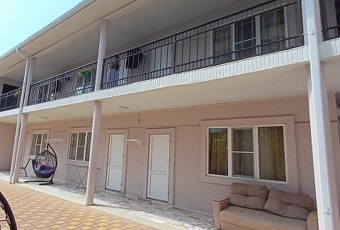 Гостевой дом расположен в Адлере, в 2 минутах от моря. В шаговой доступности вся инфраструктура, а именно: различные кафе, столовые, торговые точки, салон красоты, автобусная остановка. Курортный городок, океанариум и дельфинарий всего 5 минутах езды.К услугам гостей номера различных категорий от эконома до апартаментов.