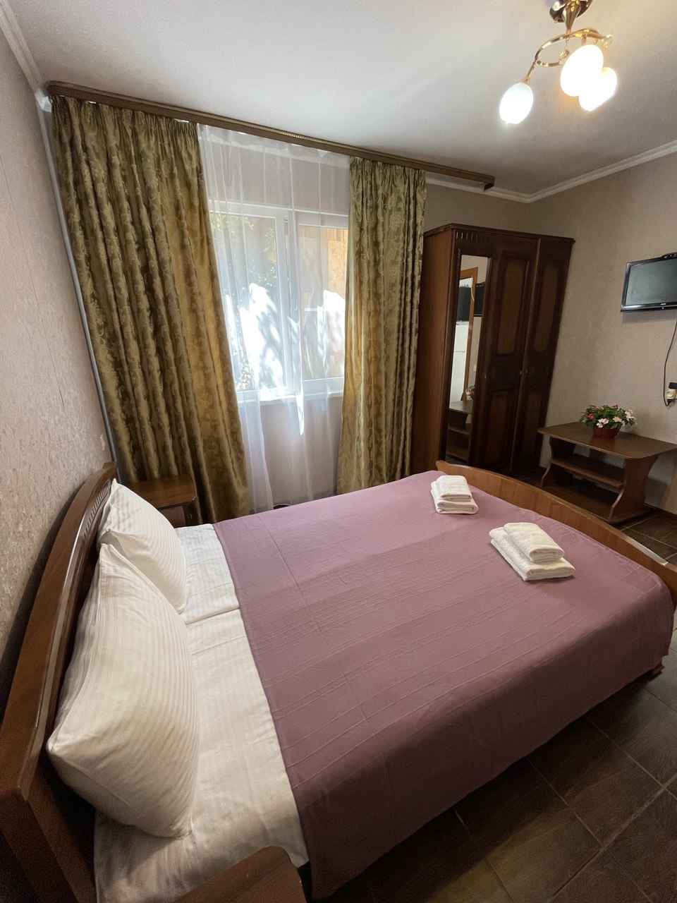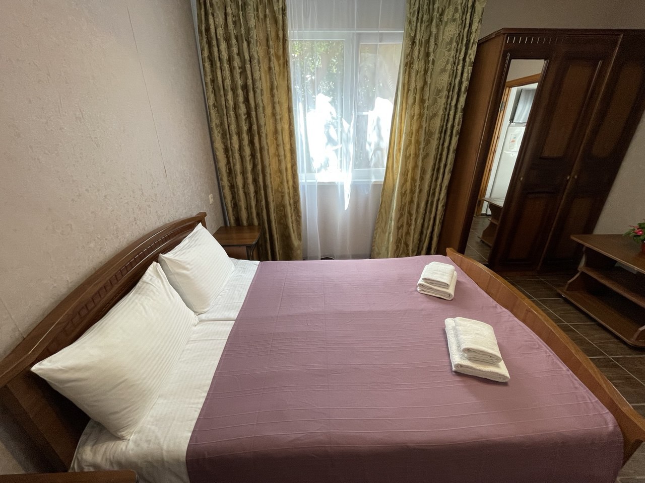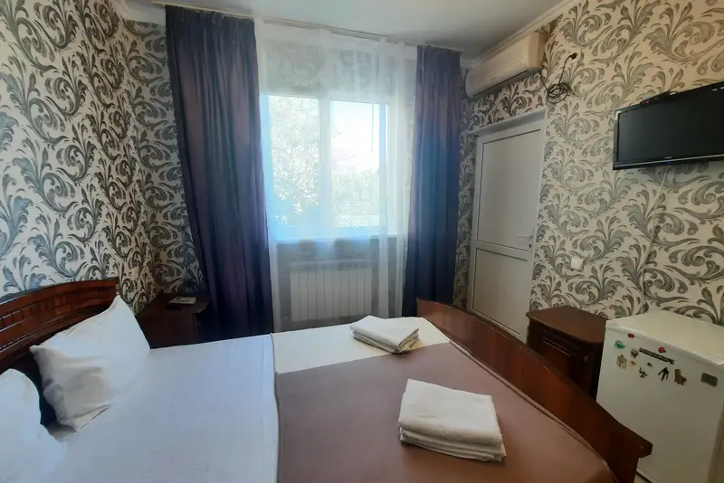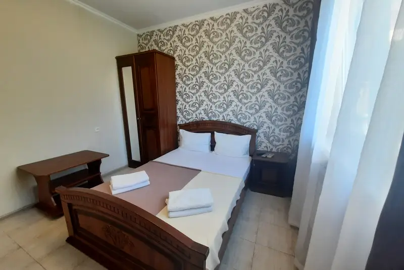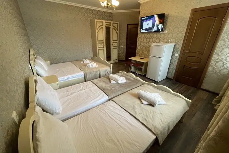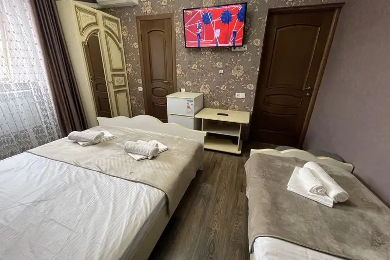 В распоряжении проживающих: 2-х, 3-х, 4-х, 5-ти местные номера, с хорошей мебелью. Душ, туалет, холодильник, телевизор, сплит-система. Все номера с удобствами и большинство с балконами и летней мебелью на них.Для удобств гостей предусмотрены гладильные принадлежности и стиральная машина.Городской оборудованный комфортабельный пляж в 5 минутах ходьбы.