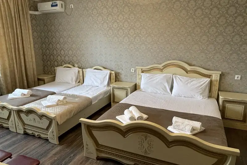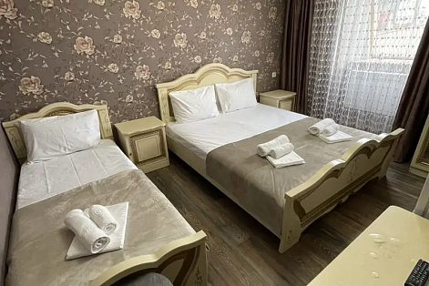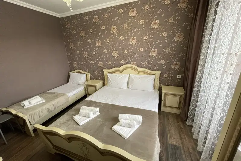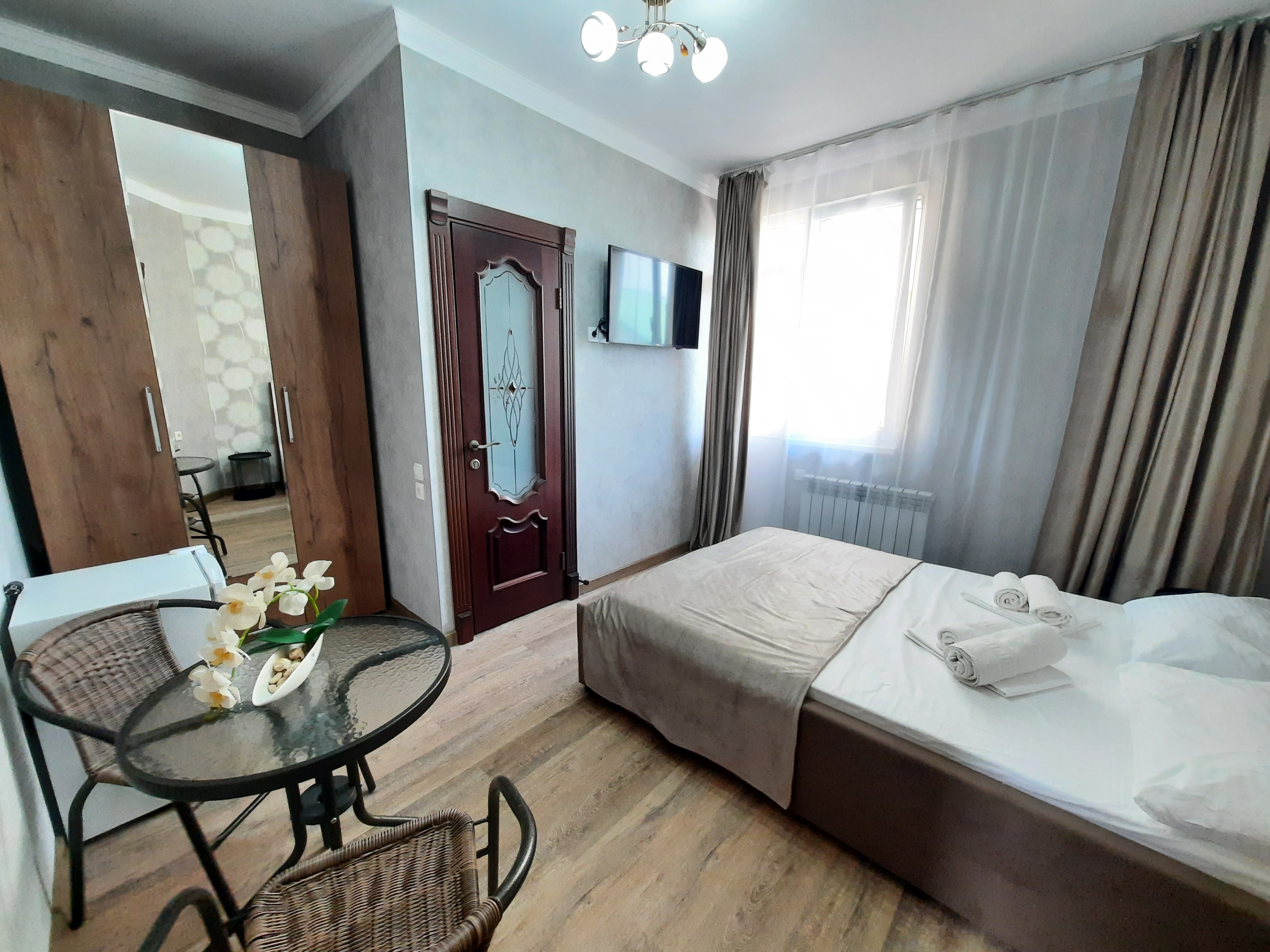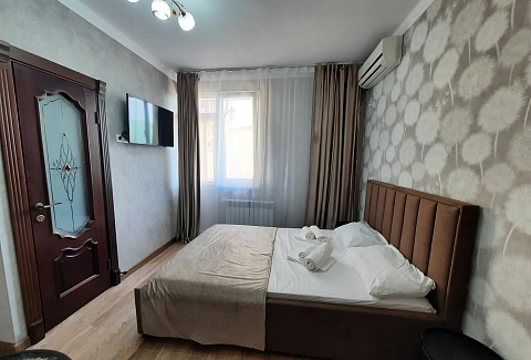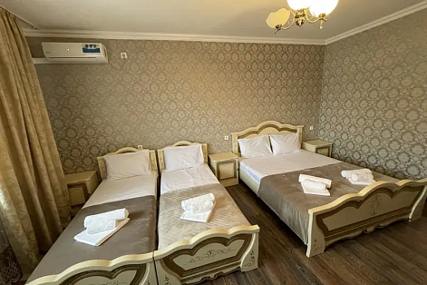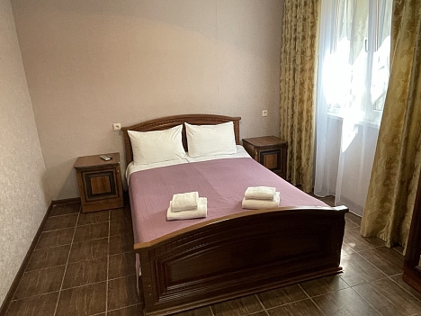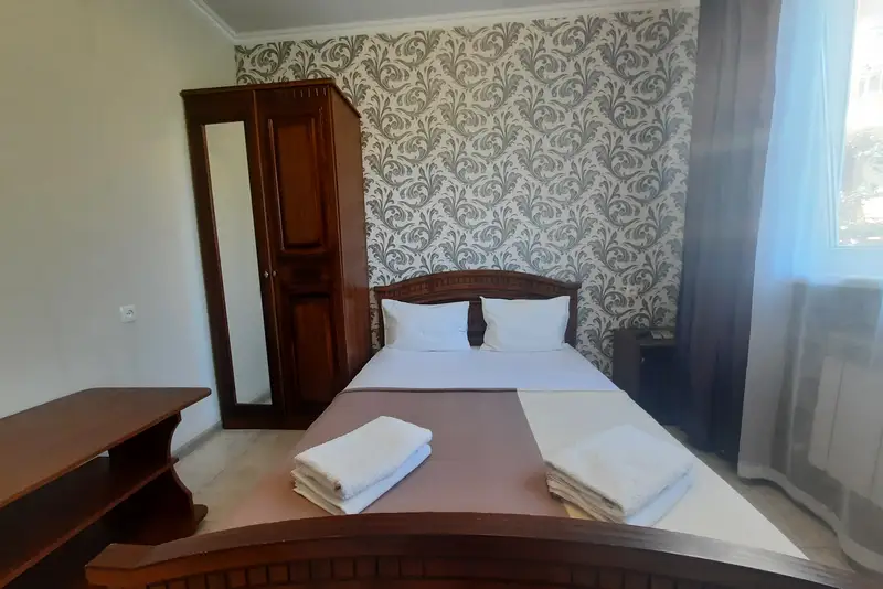 В распоряжении проживающих: 2-х, 3-х, 4-х, 5-ти местные номера, с хорошей мебелью. Душ, туалет, холодильник, телевизор, сплит-система. Все номера с удобствами и большинство с балконами и летней мебелью на них.Для удобств гостей предусмотрены гладильные принадлежности и стиральная машина.Городской оборудованный комфортабельный пляж в 5 минутах ходьбы.