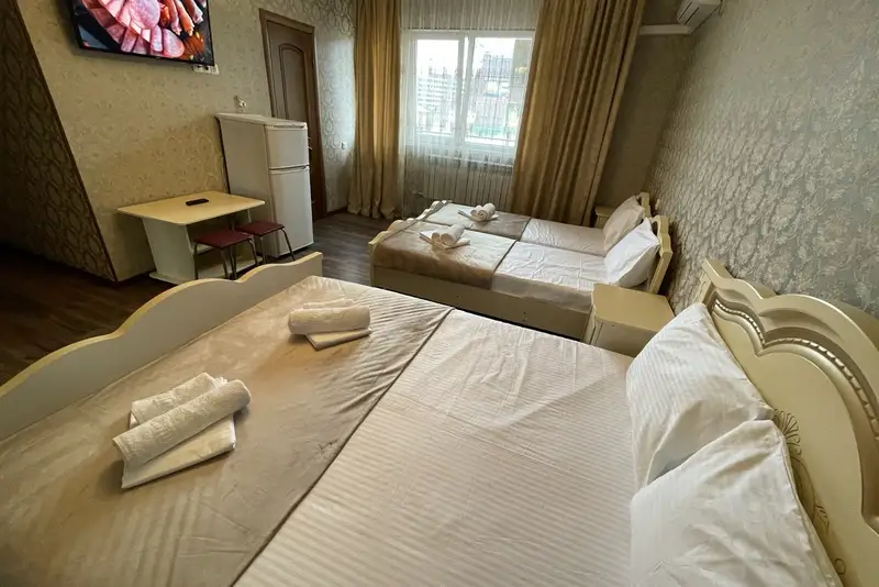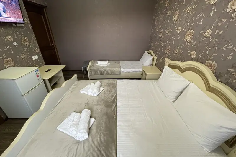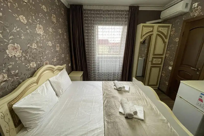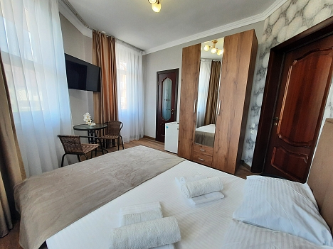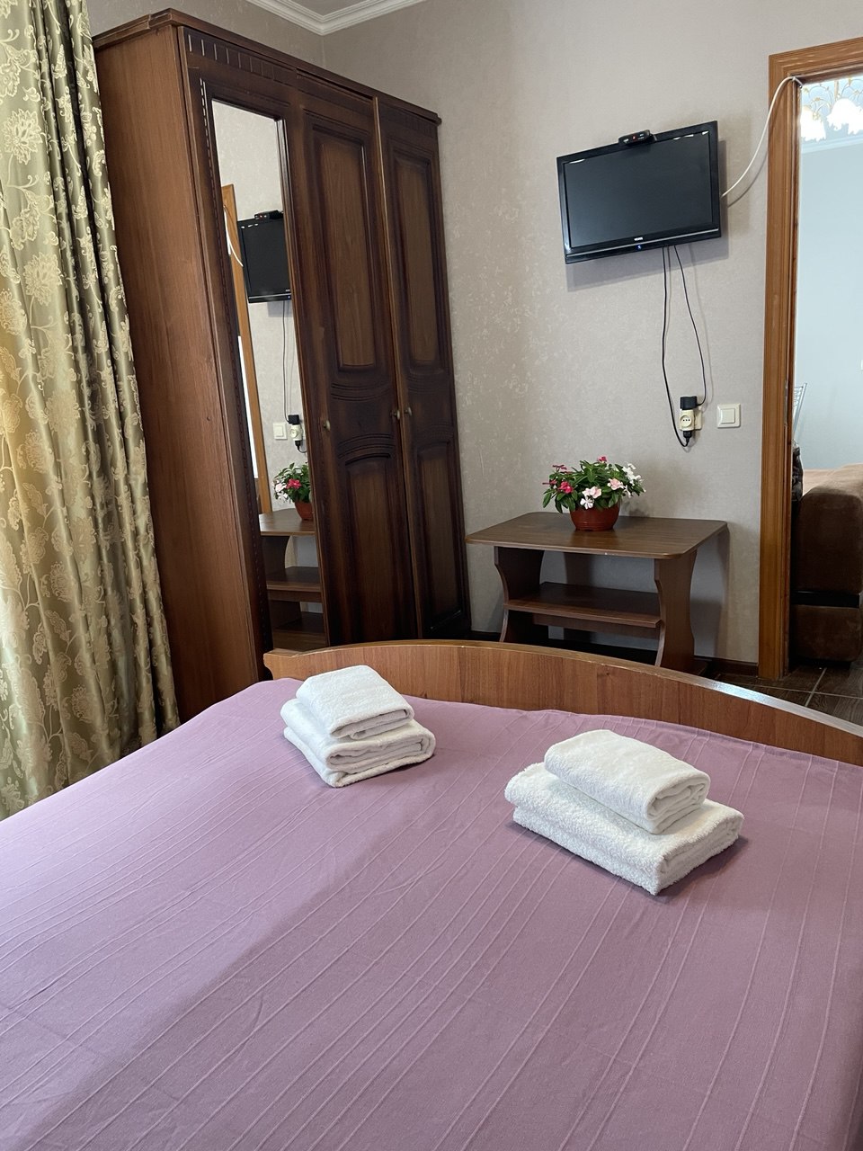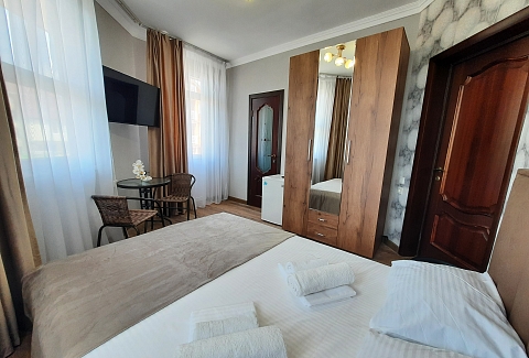 В номере: диван раскладной, зеркало, кровать двуспальная, столик журнальный, шкаф, кондиционер, телевизор ЖК, холодильник