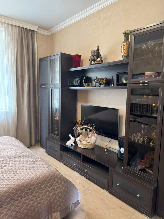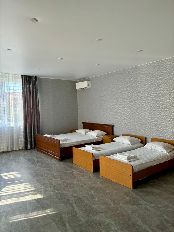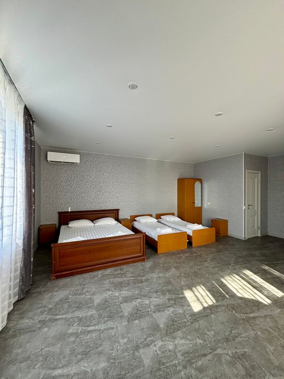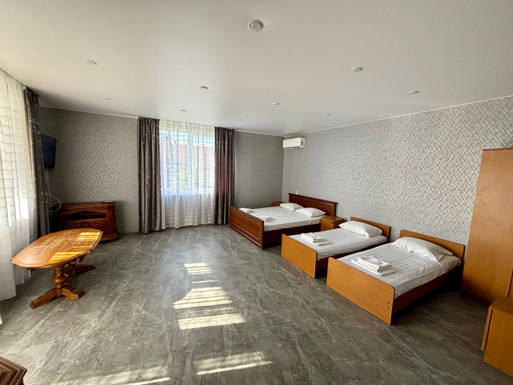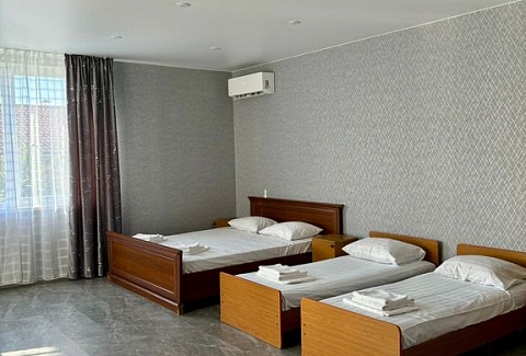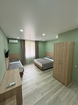 В номере: зеркало, кровати односпальные, кровать двуспальная, стол, шкаф, кондиционер, телевизор