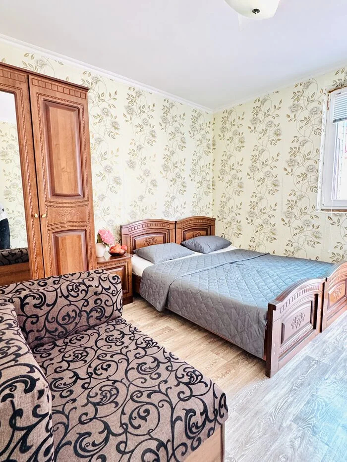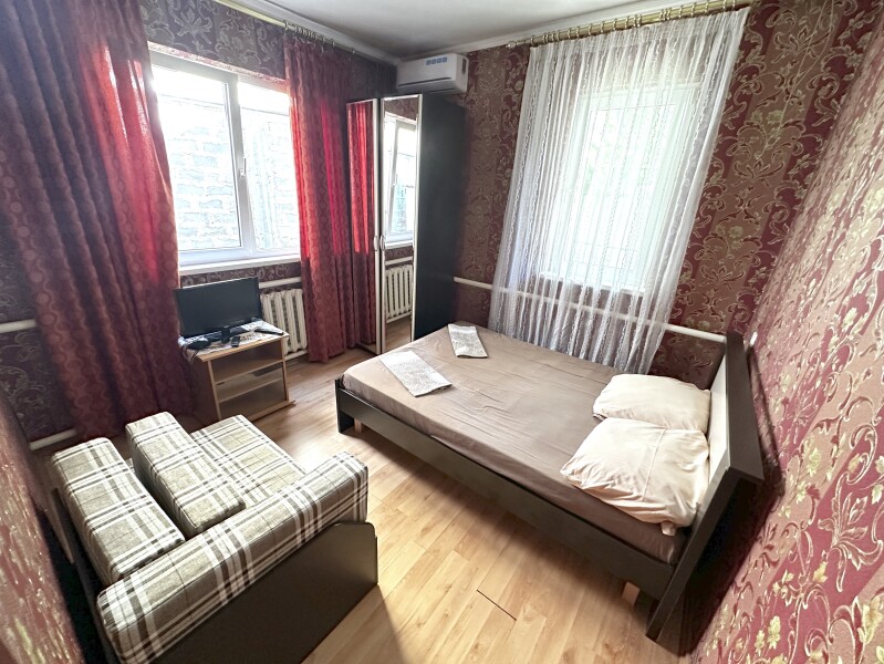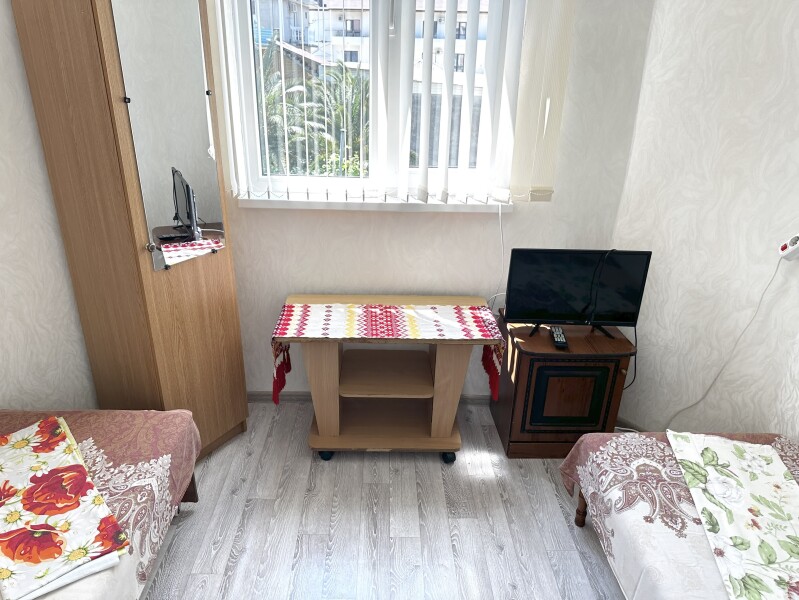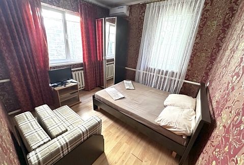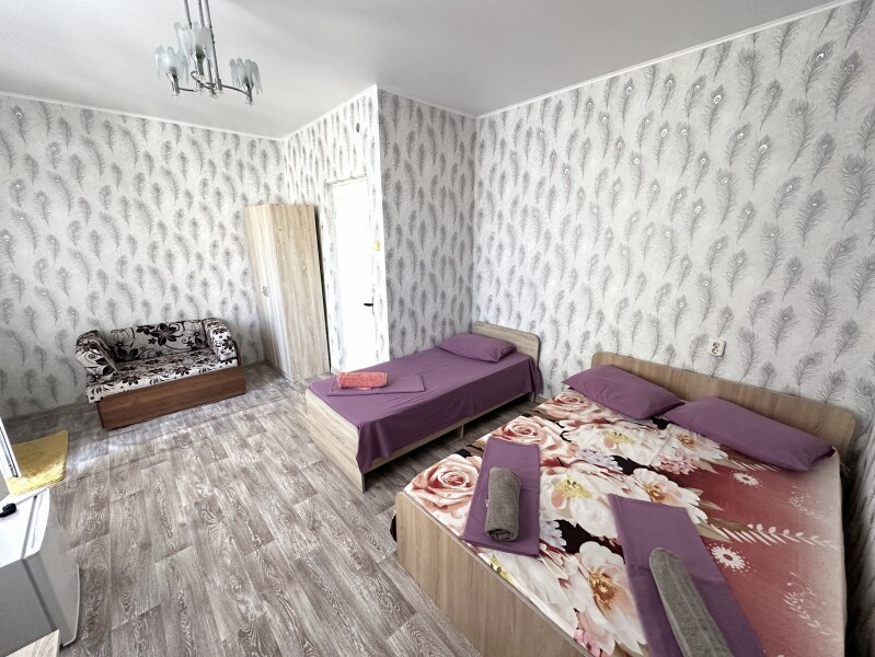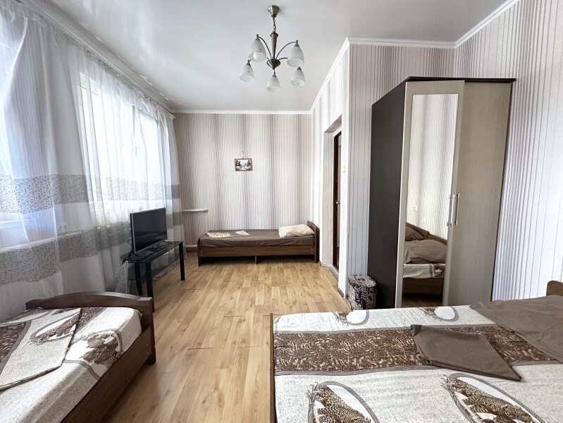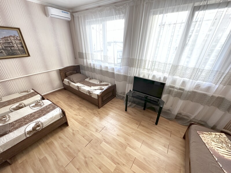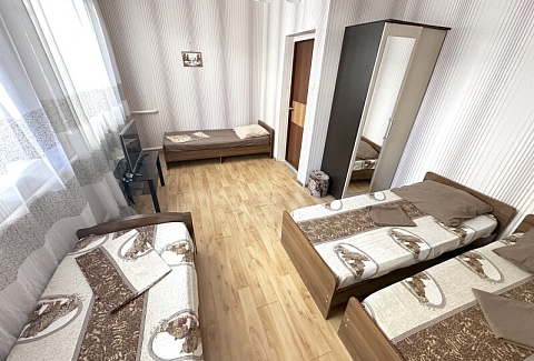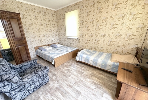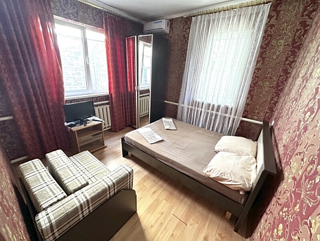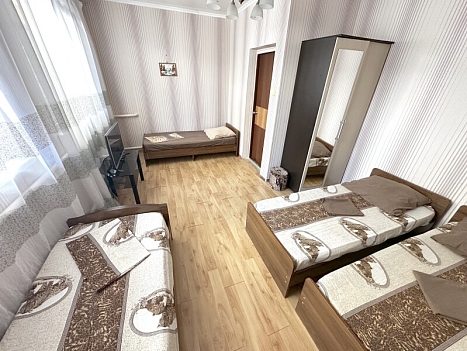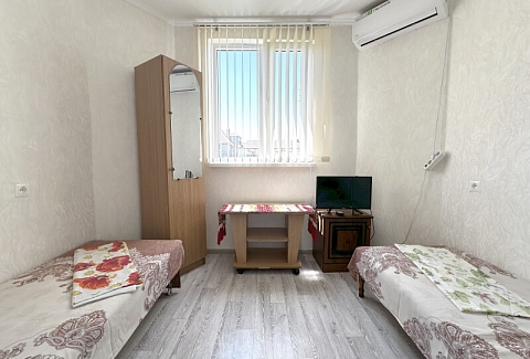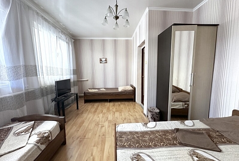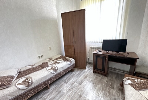 В номере: диван, кровати односпальные /одна двуспальная кровать, прикроватная тумбочка, шкаф, кондиционер, телевизор, холодильник