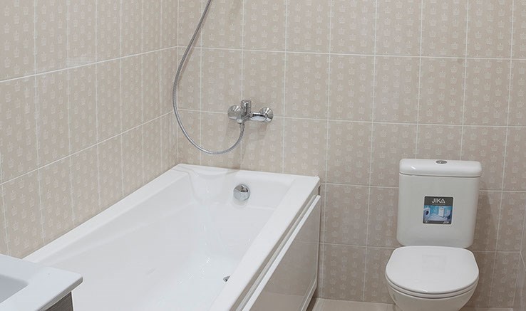 Санузел: с ванной, туалетные принадлежности, фен
