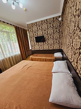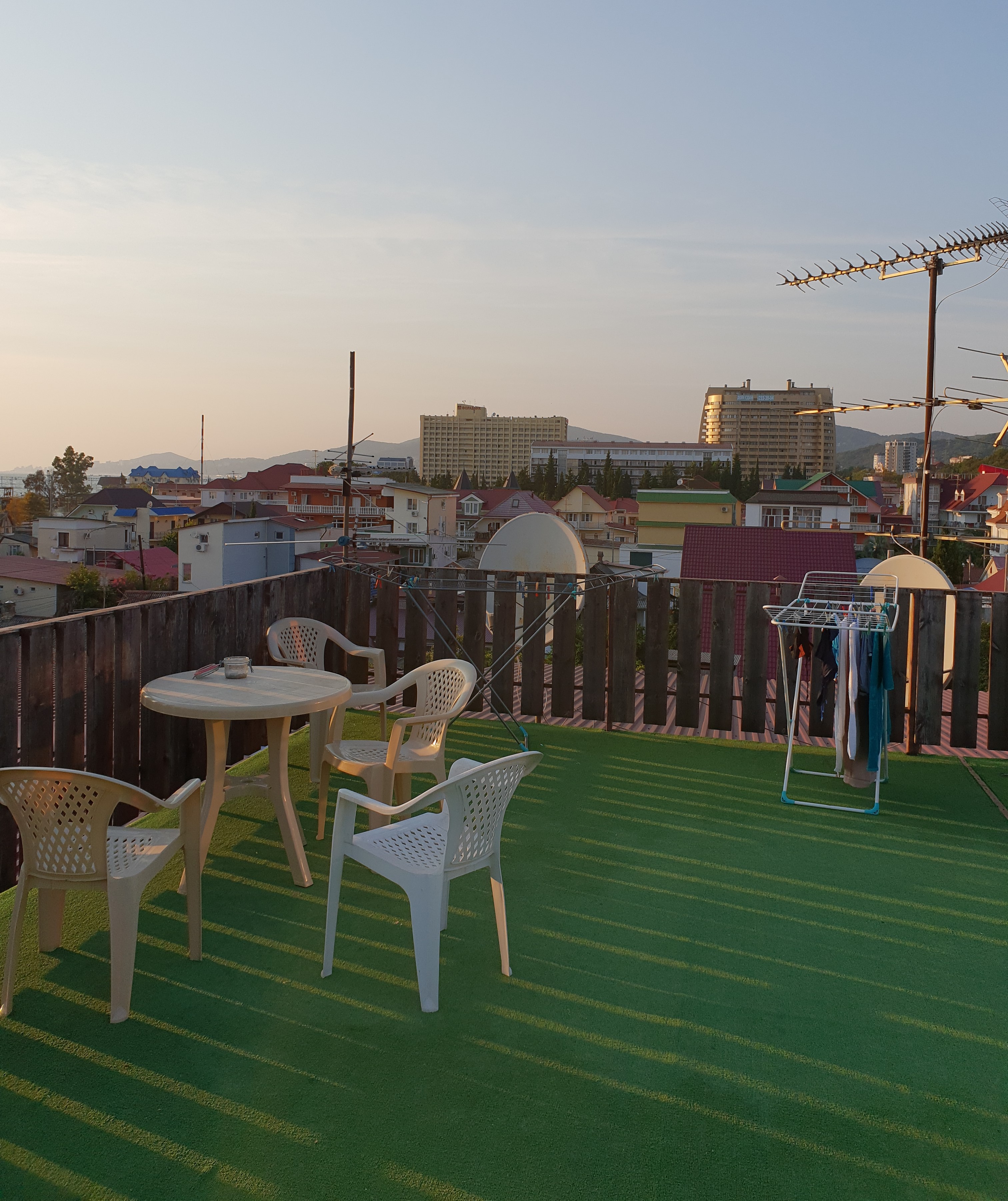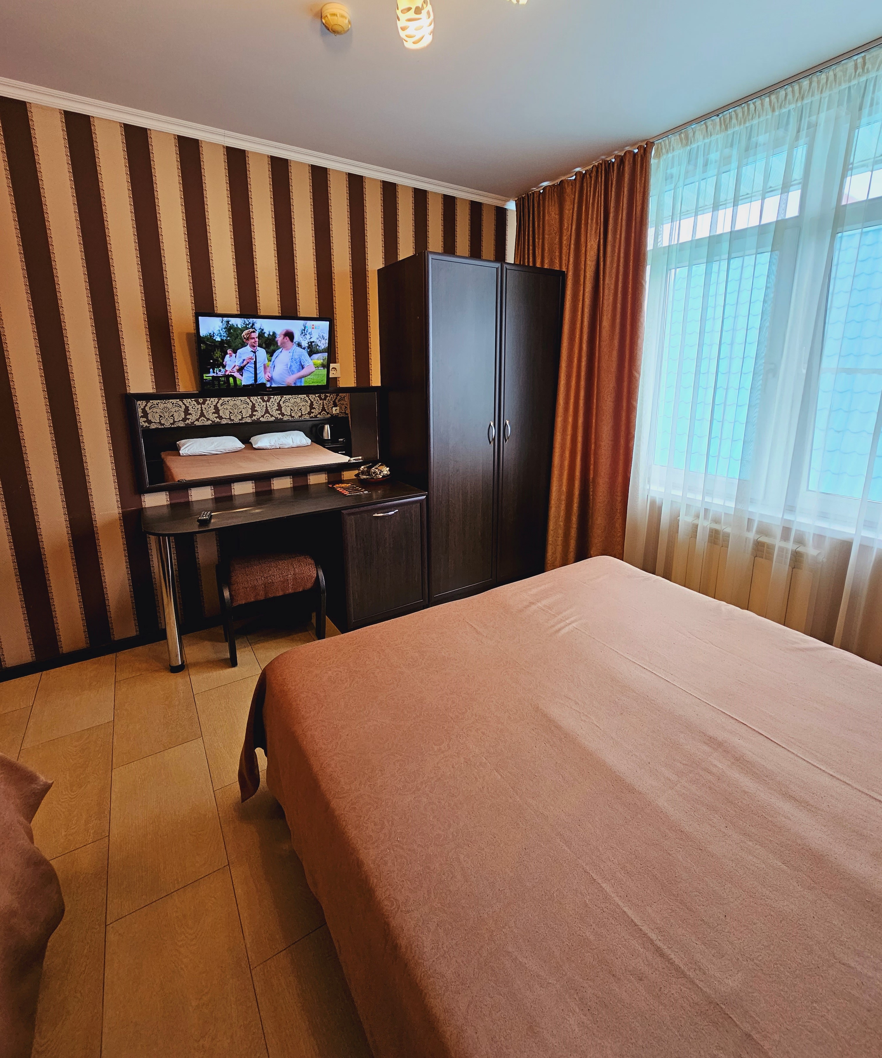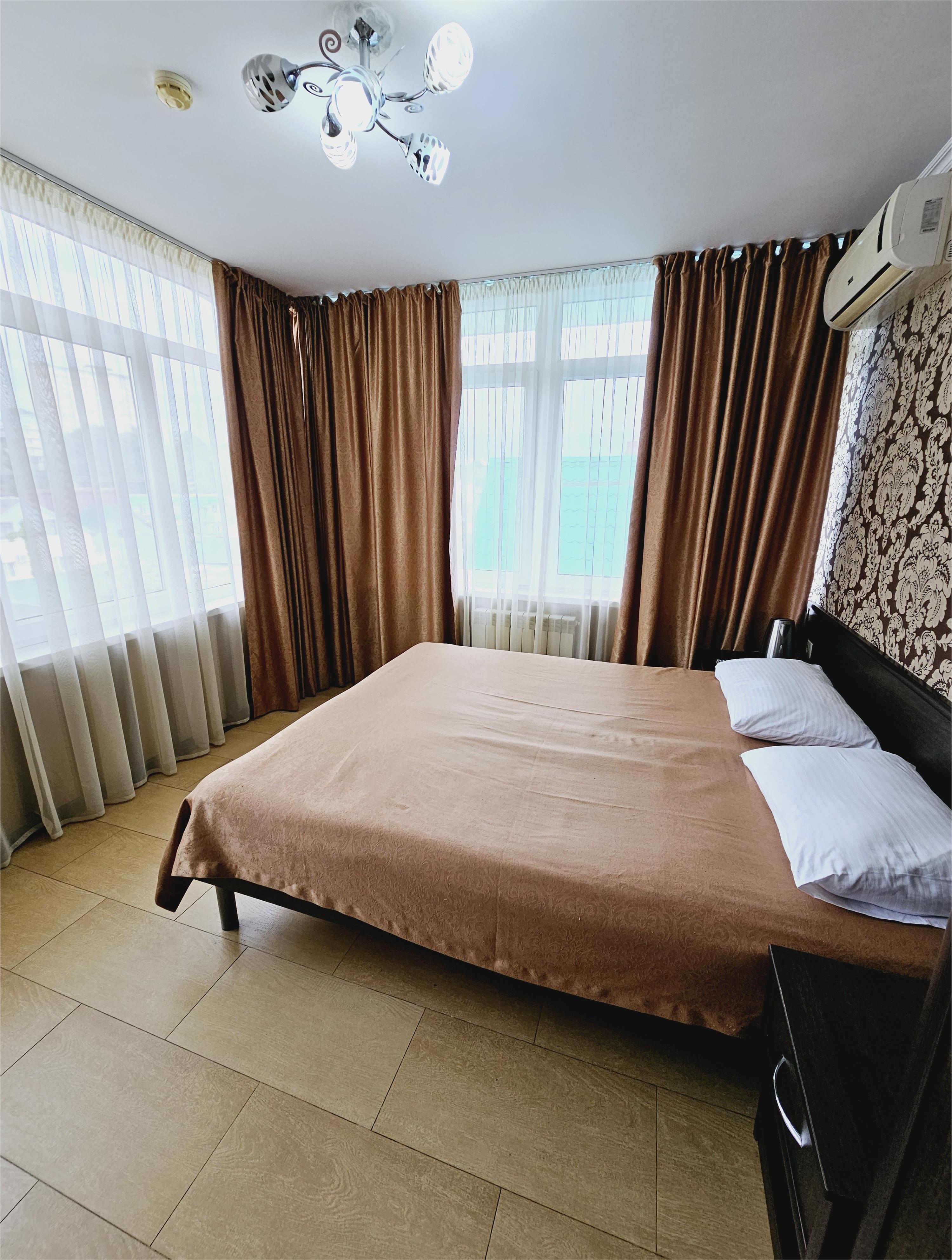 Гостей ожидают номера разных категорий, в том числе и апартаменты с кухней. Номера оснащены собственным санузлом с душем, а во всех комнатах есть необходимая техника – телевизор, кондиционер, фен, электрочайник.На территории работают столовая с русской и кавказской кухнями, суш-бар, пиццерия, пивной бар, открыта летняя веранда. Среди услуг – видовая терраса на крыше здания и высокоскоростной интернет.До городского галечного пляжа, оборудованного раздевалками, лежаками, навесами, всего пара минут ходьбы.