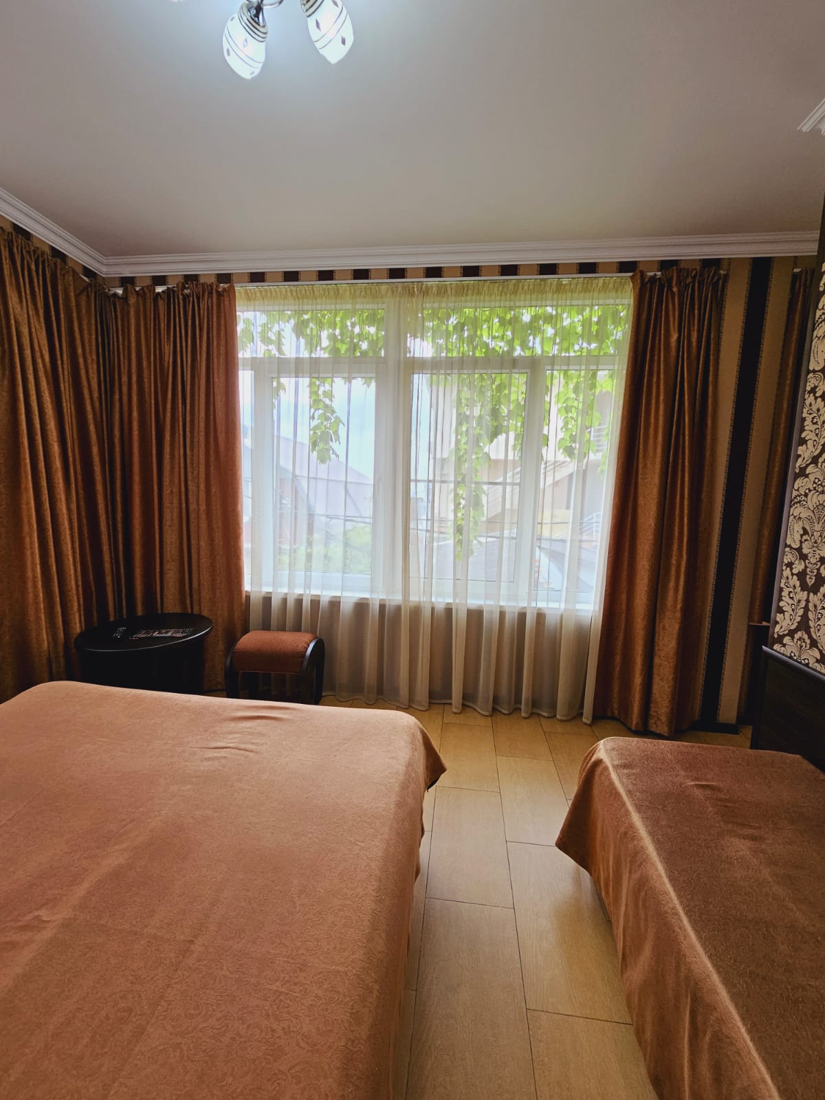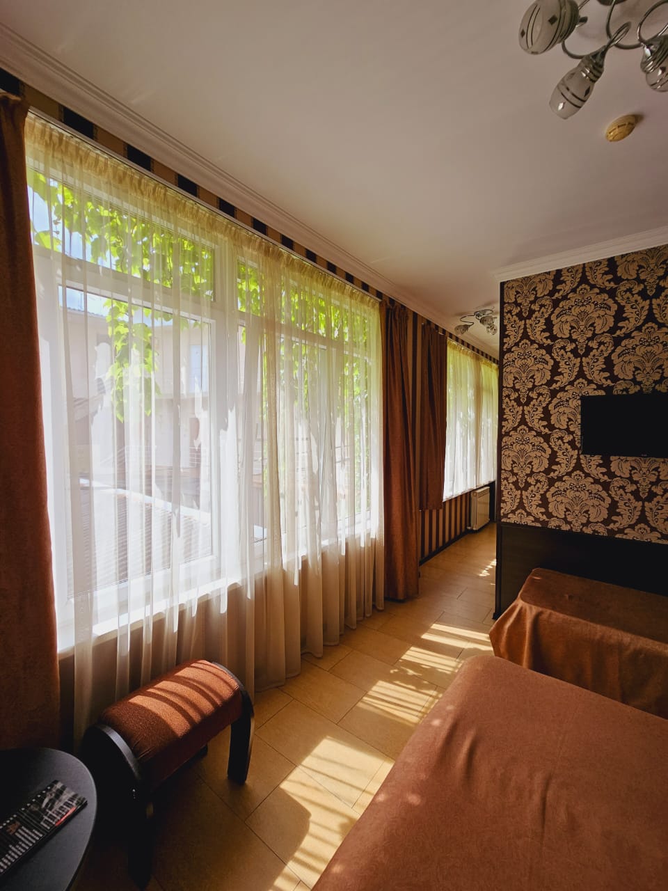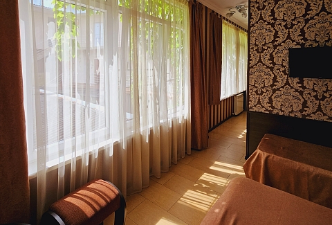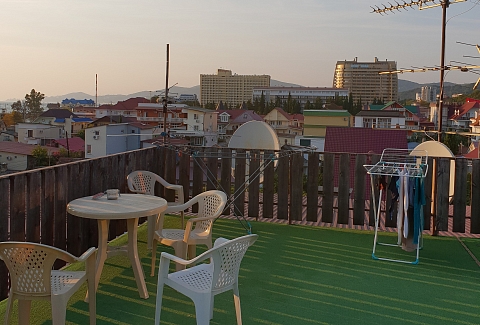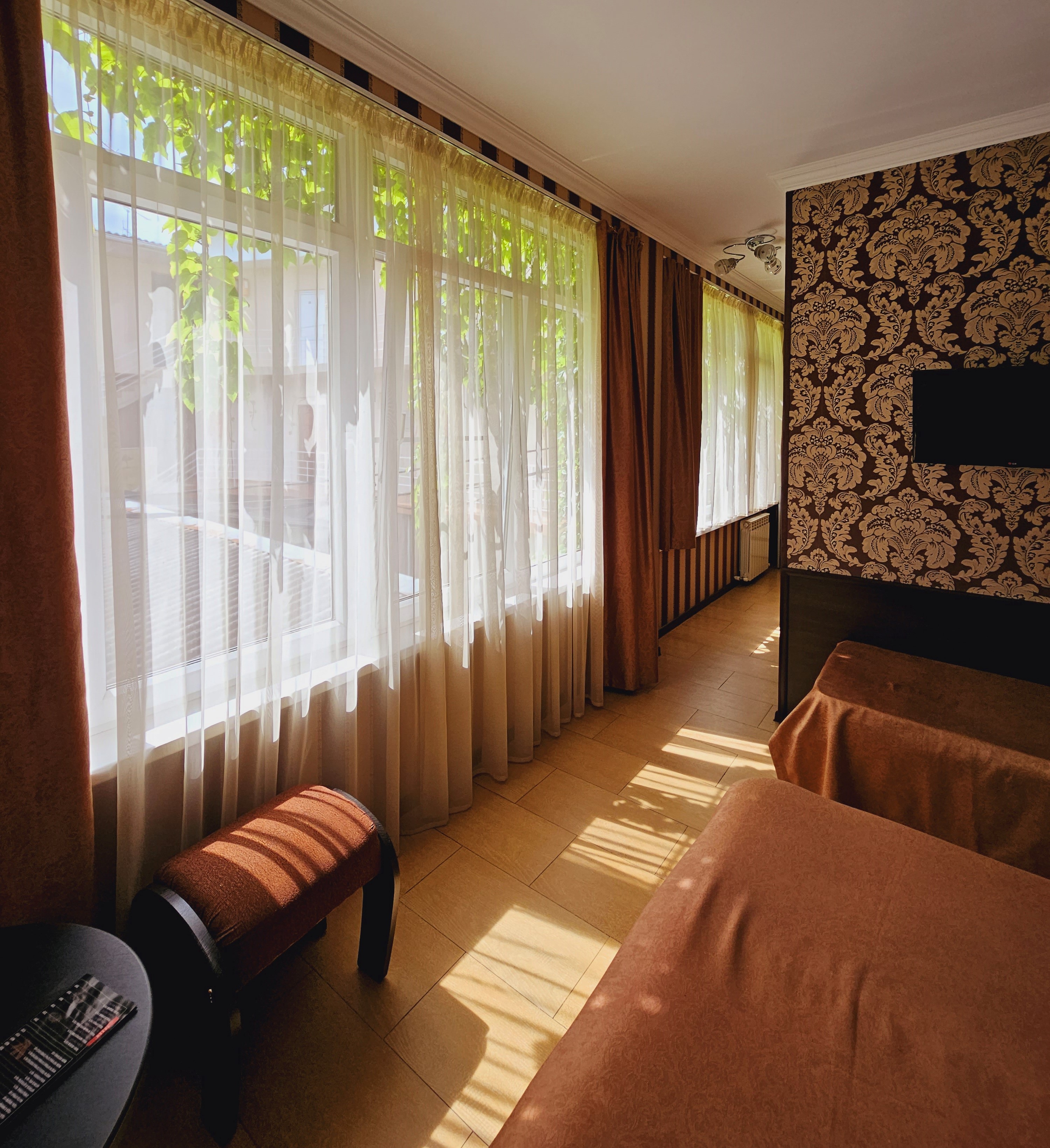 Гостей ожидают номера разных категорий, в том числе и апартаменты с кухней. Номера оснащены собственным санузлом с душем, а во всех комнатах есть необходимая техника – телевизор, кондиционер, фен, электрочайник.На территории работают столовая с русской и кавказской кухнями, суш-бар, пиццерия, пивной бар, открыта летняя веранда. Среди услуг – видовая терраса на крыше здания и высокоскоростной интернет.До городского галечного пляжа, оборудованного раздевалками, лежаками, навесами, всего пара минут ходьбы.