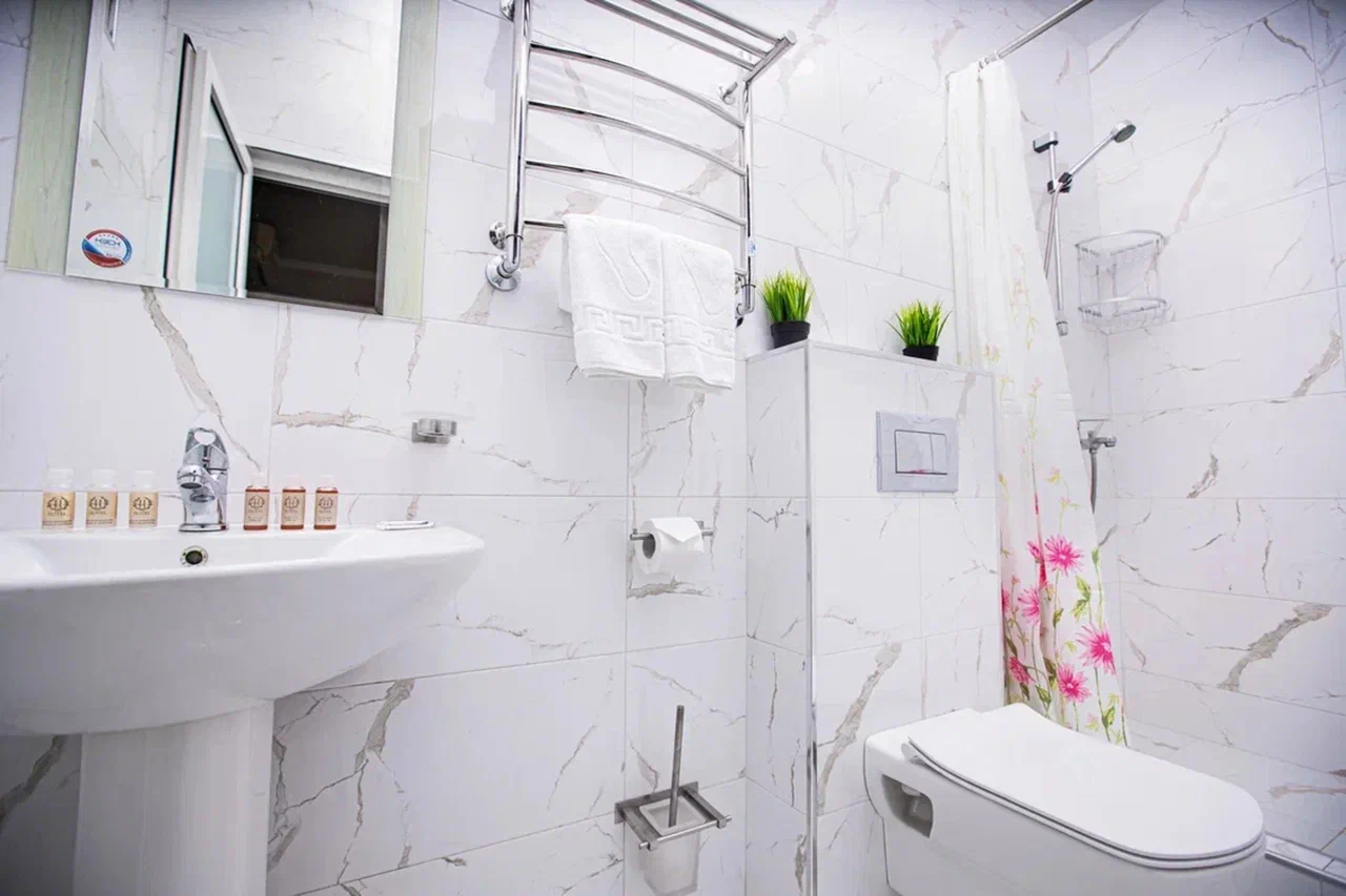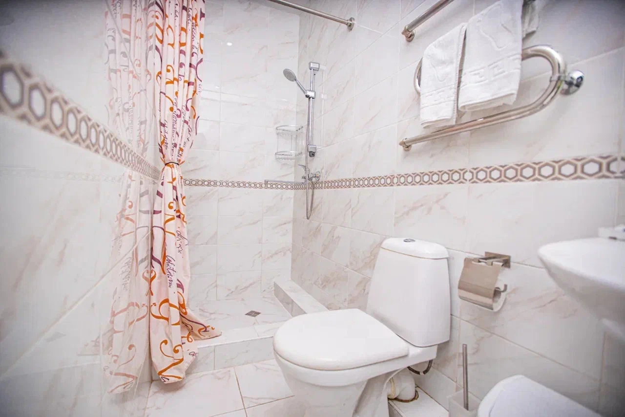 Санузел: с душем, туалетные принадлежности, фен