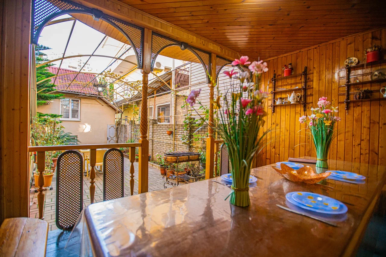 Благодаря удобному расположению, гости могут легко добраться до моря, кафе, магазинов и остановок общественного транспорта. Все номера оснащены необходимыми удобствами: кондиционером, телевизором, холодильником, душем и туалетом. На территории предоставляется бесплатный Wi-Fi. Гостевой дом предлагает общую кухню, оборудованную всем необходимым для самостоятельного приготовления пищи. Во дворе обустроена зона отдыха с беседкой и мангалом. Для гостей, прибывших на автомобиле, предусмотрена парковка.