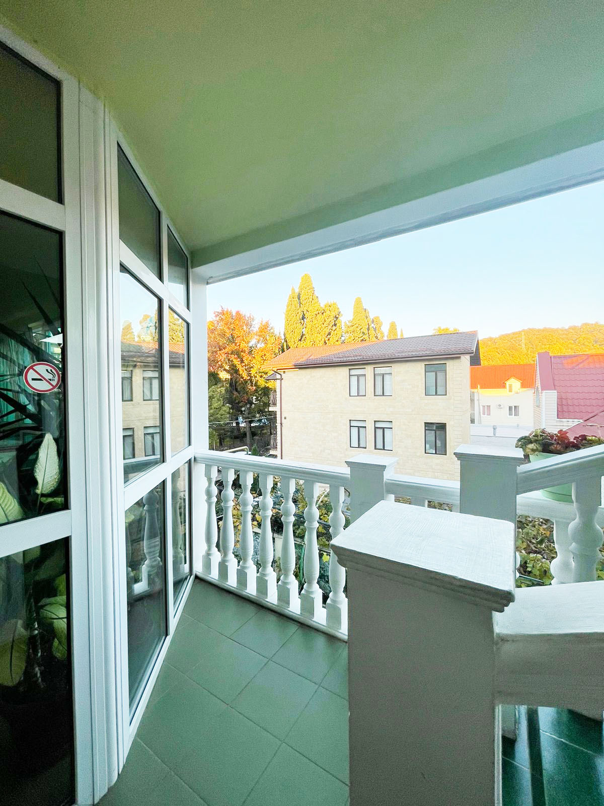 На самолете до аэропорта Адлер, далее на автобусе №105,105с до остановки «Пансионат Знание», далее пройти 410 м до отеля.