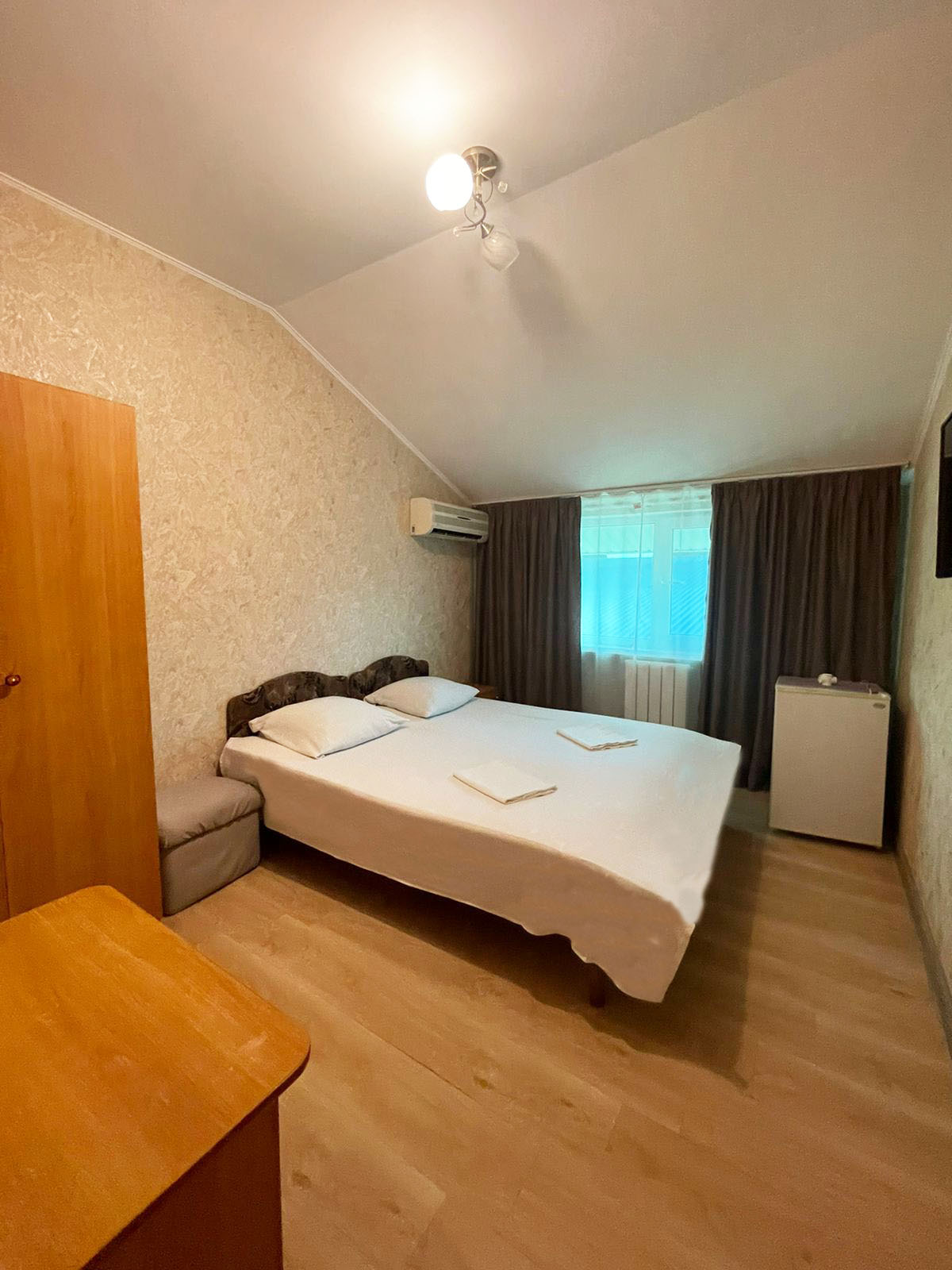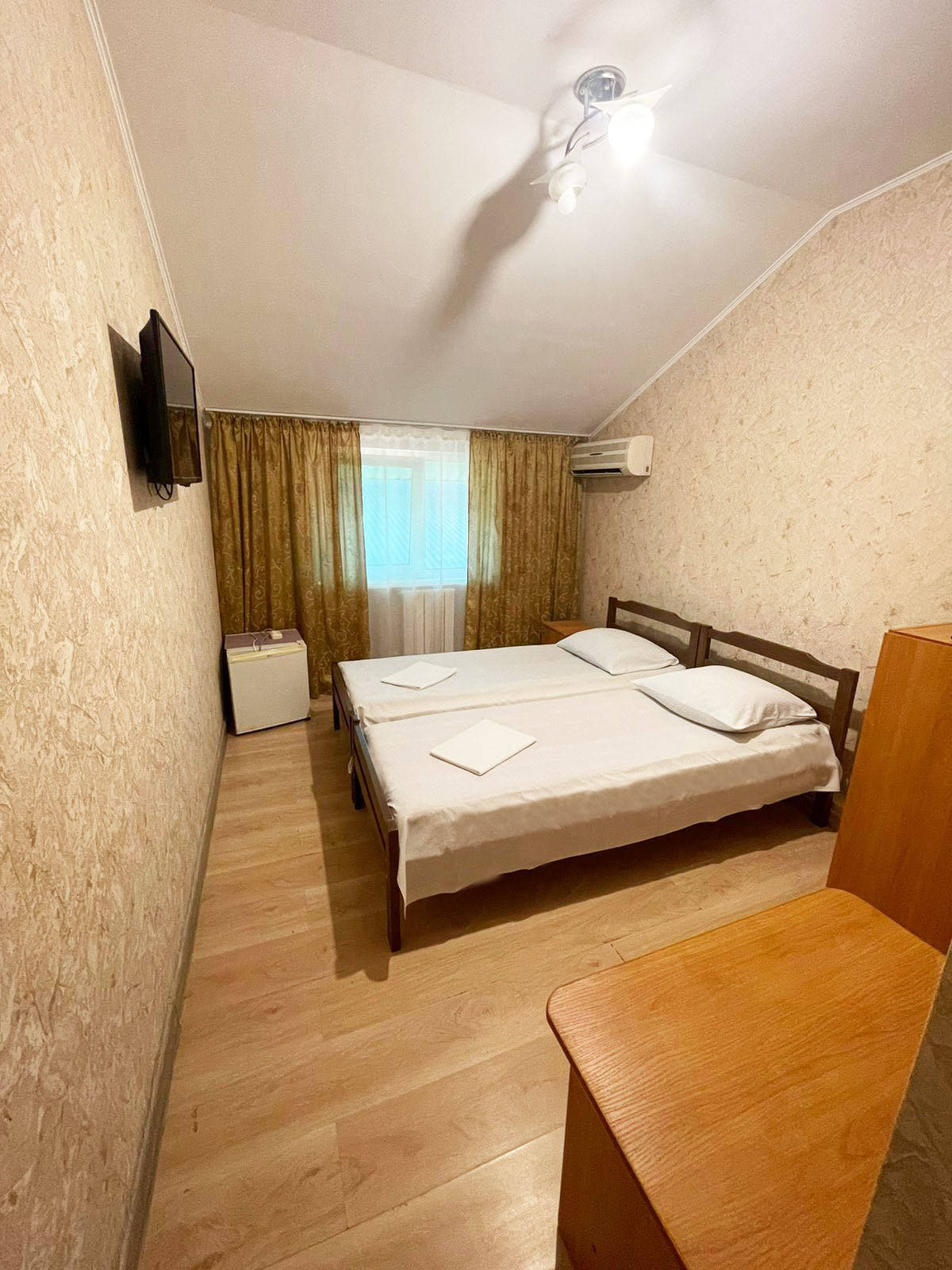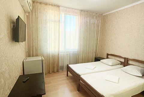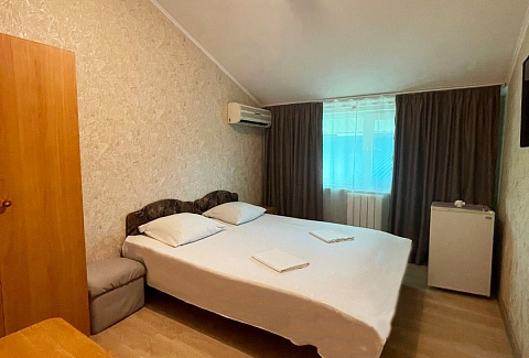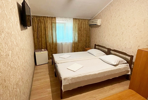 В номере: кровать двуспальная, кровать односпальная, стол, стулья, шкаф, кондиционер, мини-холодильник, телевизор