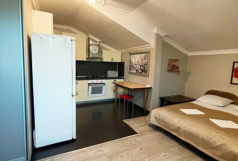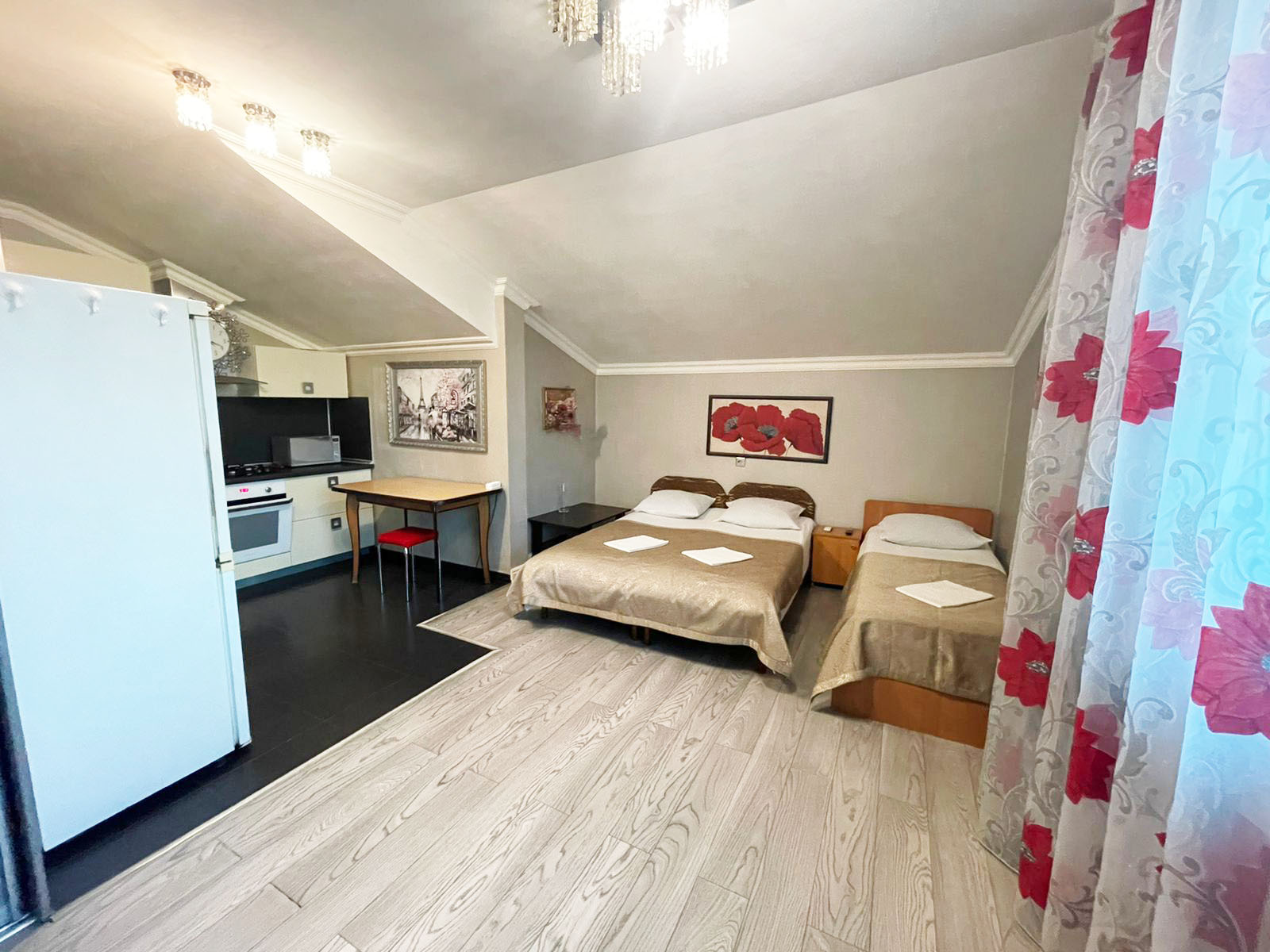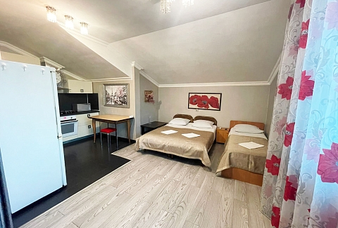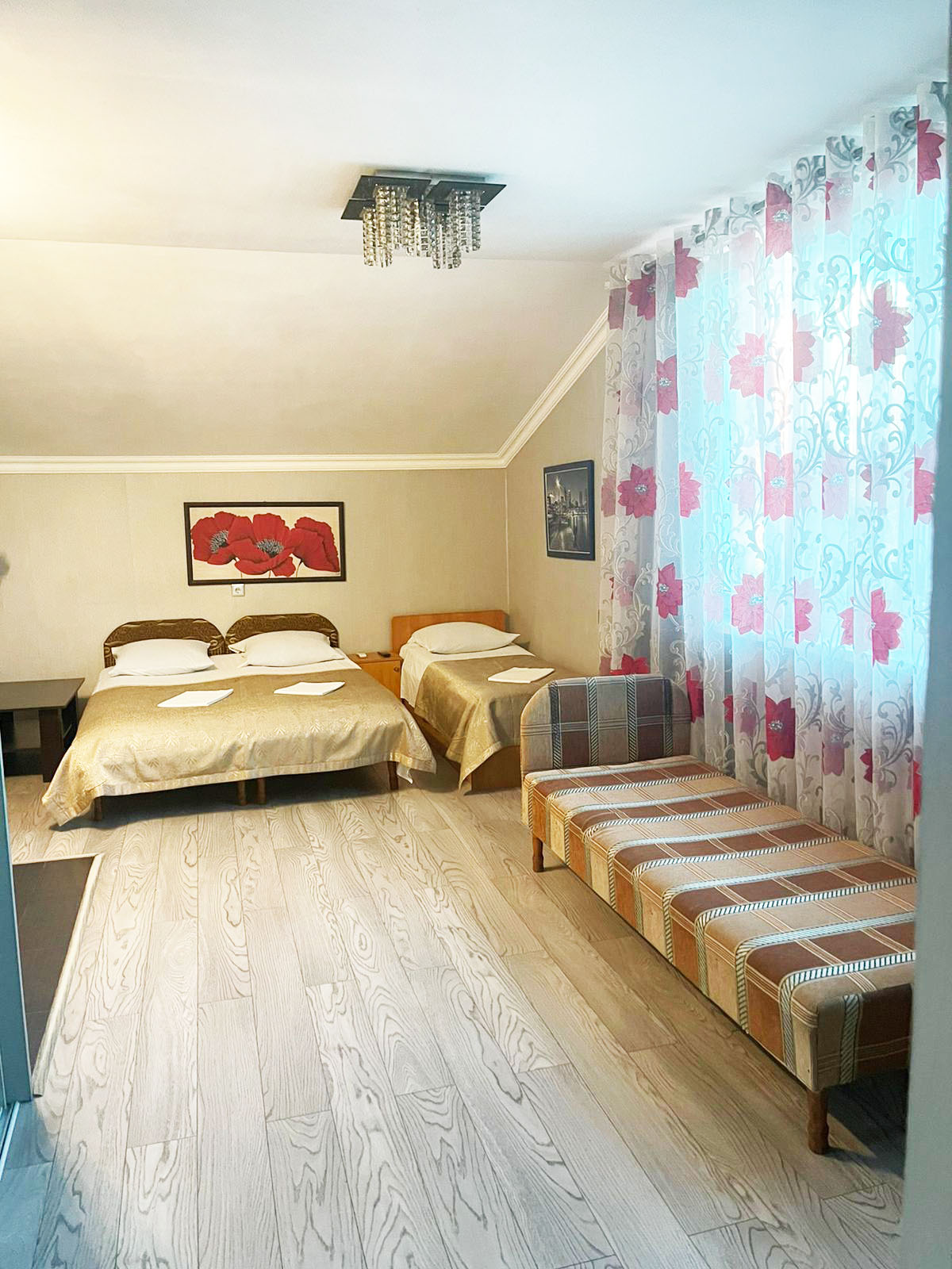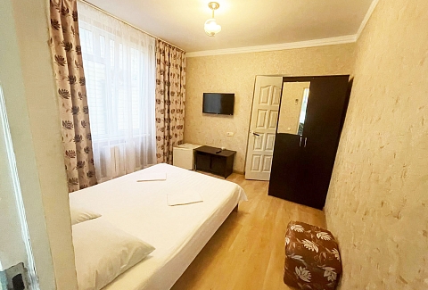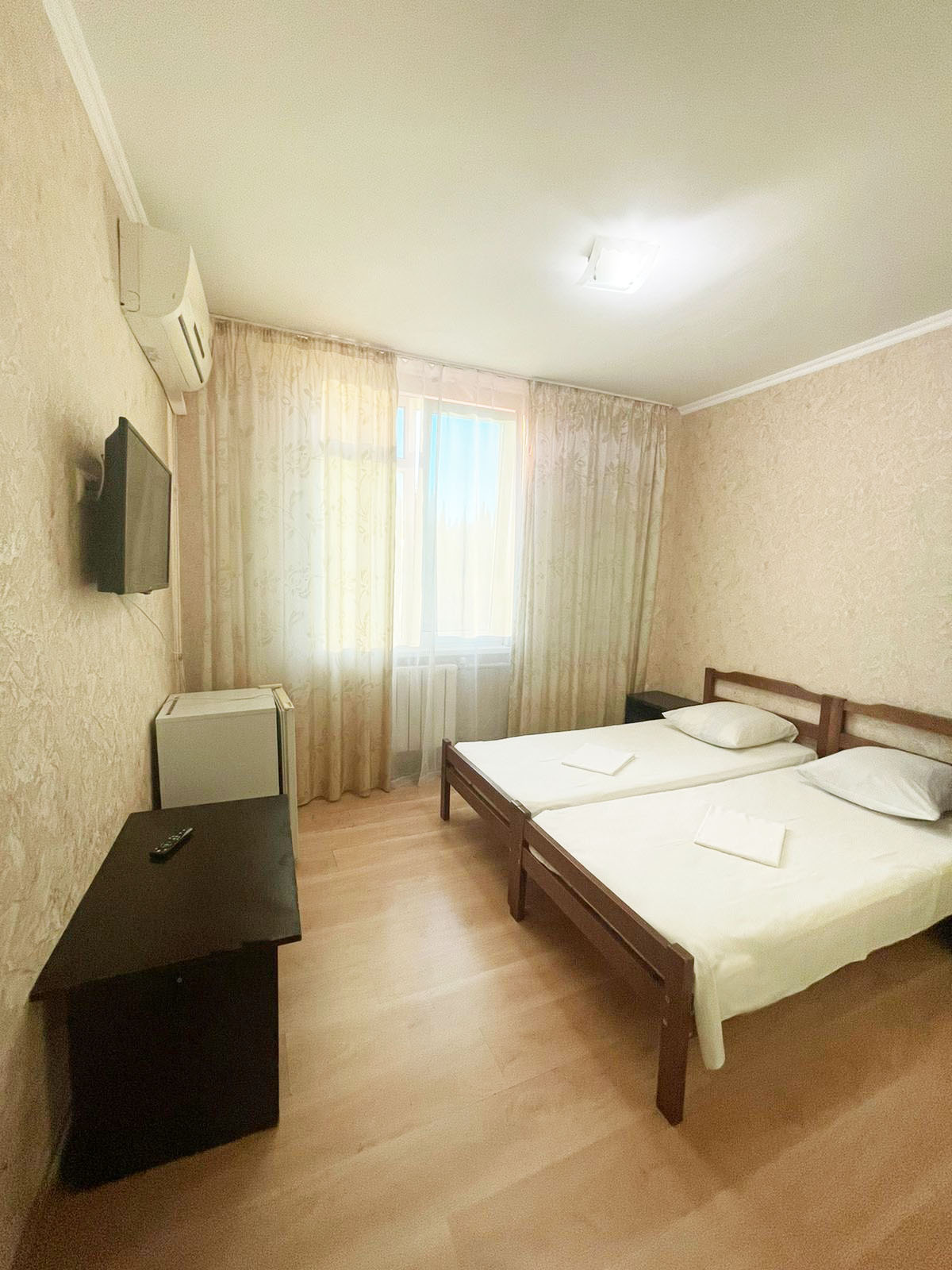 В номере: кровать двуспальная, кровать односпальная, стол, стулья, шкаф, кондиционер, мини-холодильник, телевизор