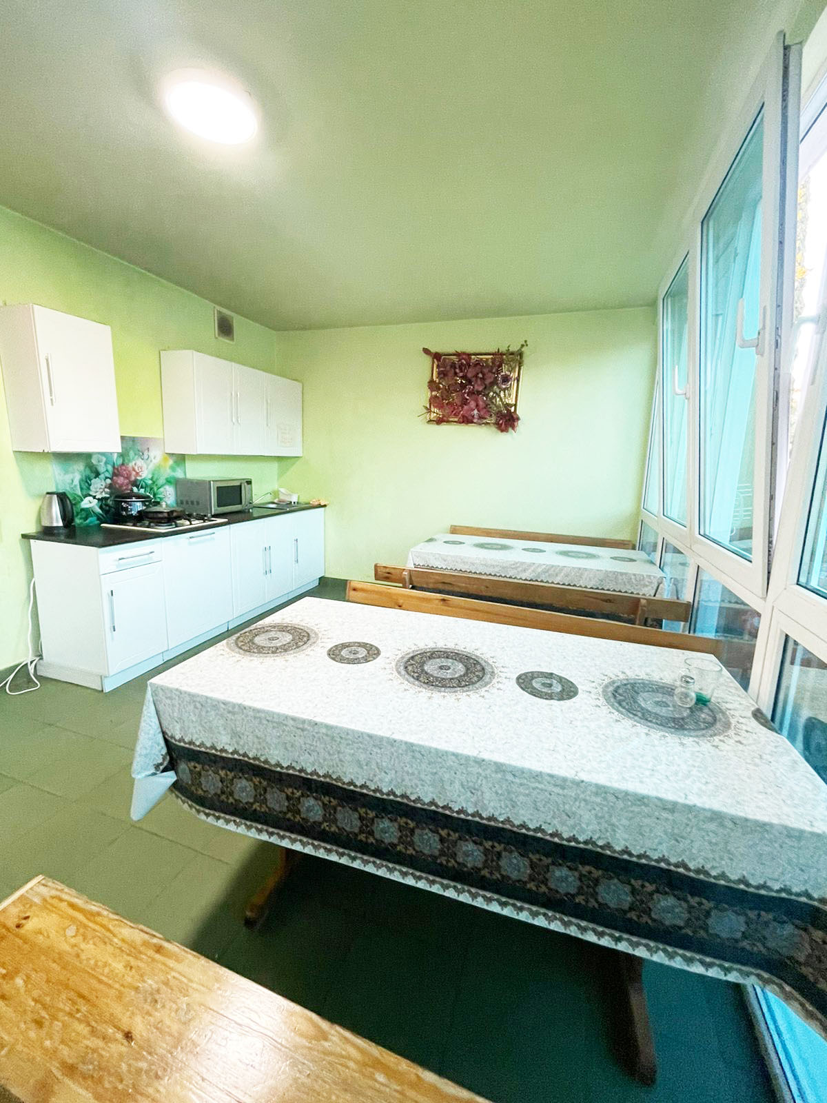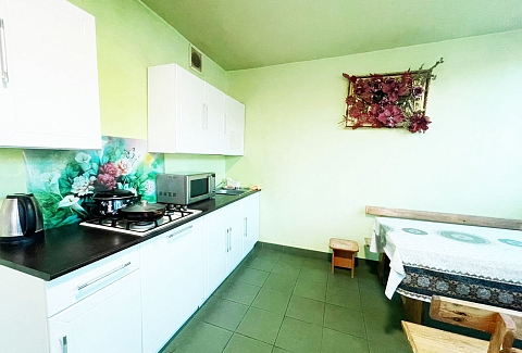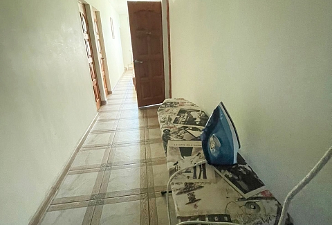 В номере: вешалка, кровати односпальные, кровать двуспальная, стол, стулья, шкаф, кондиционер, микроволновая печь, плита электрическая, телевизор