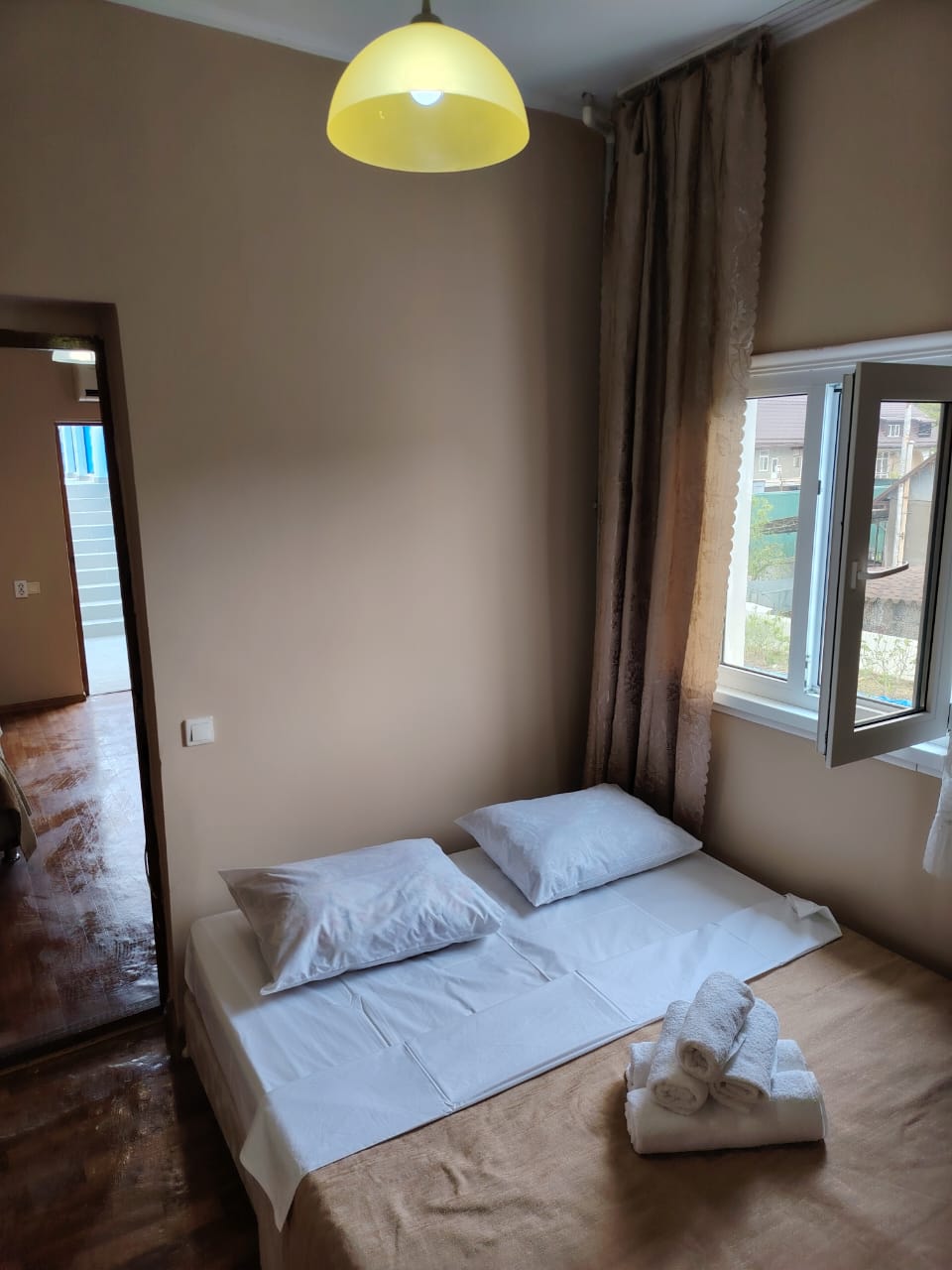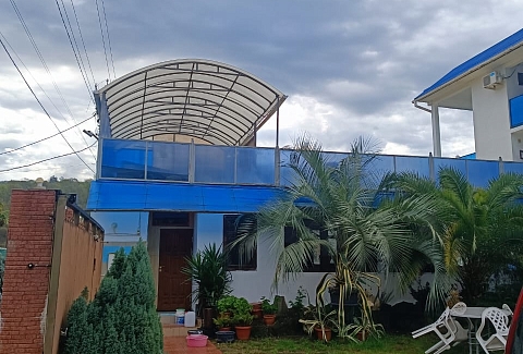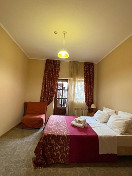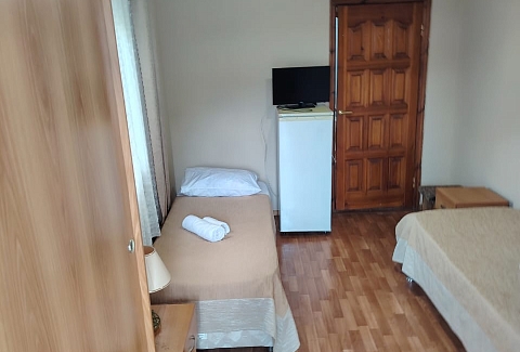 В соседнем поселке находится Аквапарк.Дом находится в живописном, тихом месте с благоустроенной территорией, на которой находится кухня для самостоятельного приготовления пищи, бассейн с лежаками для комфортного отдыха и большая парковка для любителей автомобильного отдыха.Для размещения предоставляются номера разной комфортности и вместимости. Для удобства работает интернет Wi-Fi.