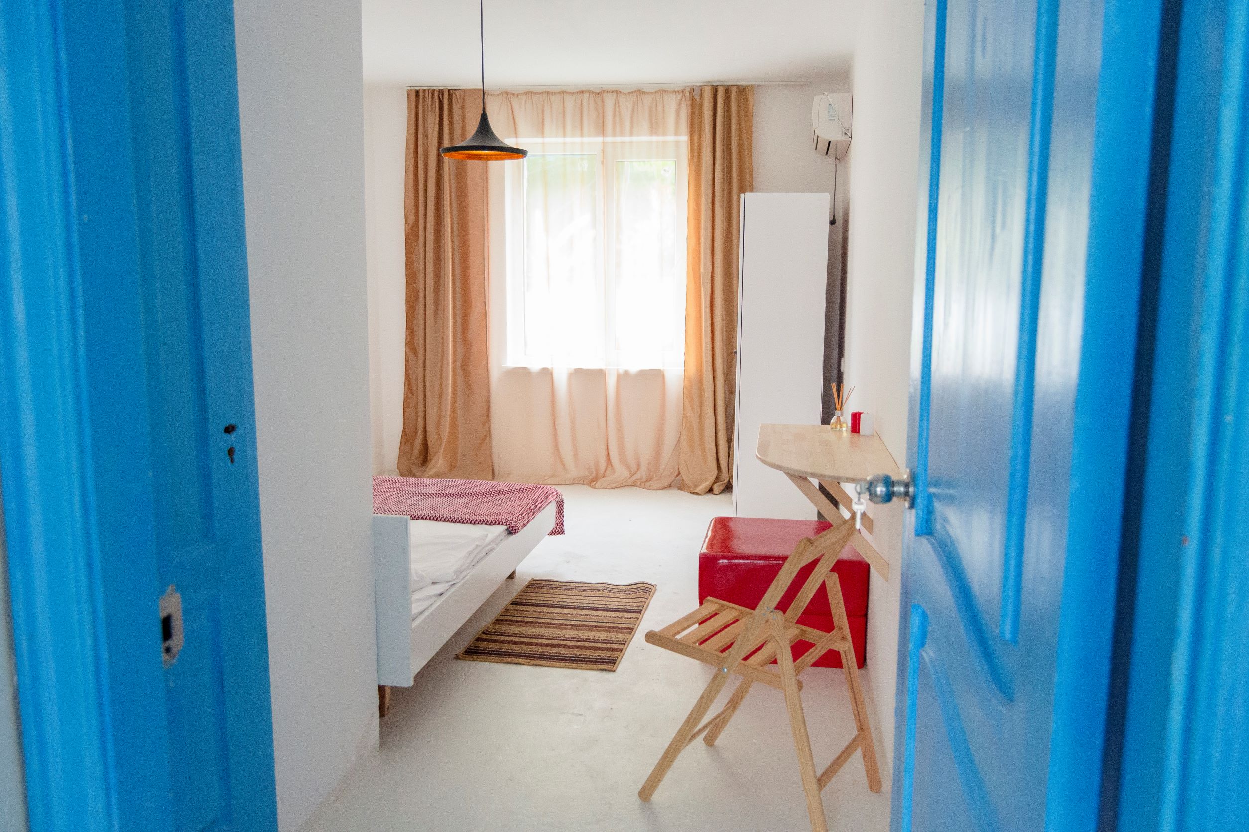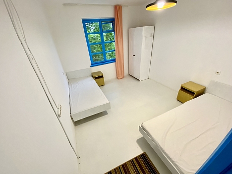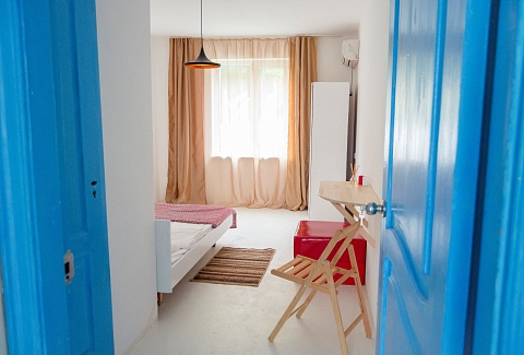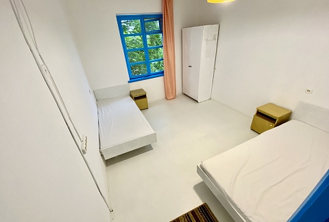 Расстояние до аэропорта составляет 50 километров. Номерной фонд расположился в 2-этажном здании. В комнатах выполнен свежий ремонт в светлых оттенках, установлена удобная мебель для отдыха, есть места для хранения одежды, вентилятор или кондиционер. Санузел индивидуальный или общий на блок, с душем. На территории отеля есть оборудованная кухня общего пользования для самостоятельного приготовления еды. Также рабоатет столовая. Отдыхающим предлагается посетить баню на дровах с парной и бассейном. Во внутреннем дворе с пальмами и фруктовыми деревьями есть места для отдыха. Для проведения концертов, практик, собраний и других мероприятий предусмотрен зал с набором необходимого оборудования. Маленькие постояльцы могут весело провести время в детской комнате. Добраться до дикого пляжа можно за 3 минуты прогулочным шагом. Береговая линия галечная, с пологим входом в воду, протяженностью около 3 километров.