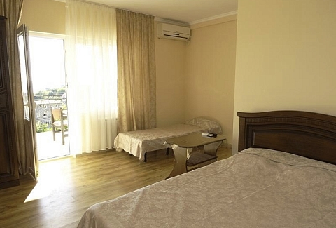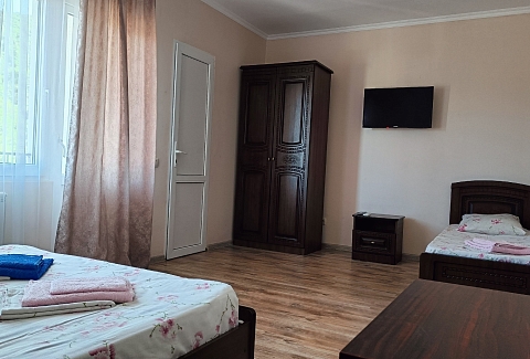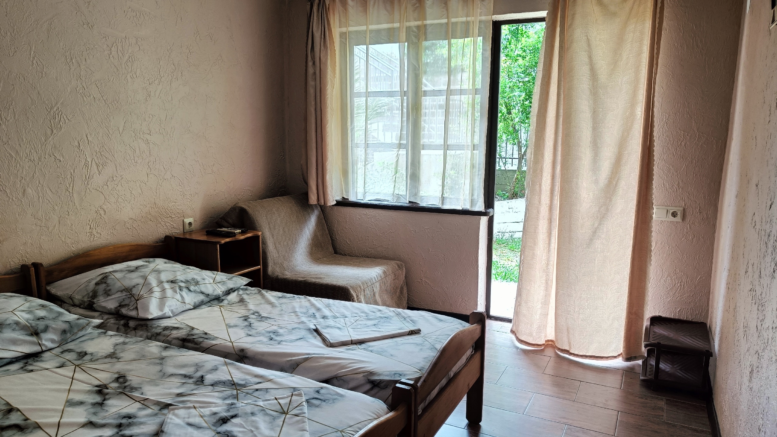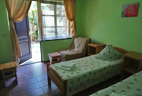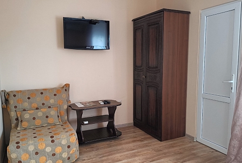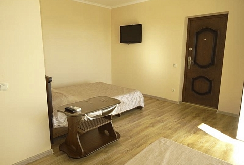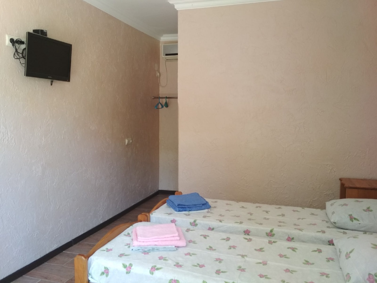В комнатах есть кондиционер, телевизор, также в номерах корпуса 2 предусмотрены балконы. На территории для отдыхающих организована общая кухня, укомплектованная посудой и техникой, есть терраса для отдыха, крытая веранда и место для пикника. На территории третьего корпуса установлен каркасный детский бассейн, гости с 1,2 корпуса так же могут им пользоваться. Всего в 30 метрах расположена столовая, где можно вкусно покушать. Также среди услуг — парковка, стиральная машина, беспроводной интернет. Для детей - детская лайт-анимация, детский уголок. А всего в 500 метрах от отеля находится галечный пляж.