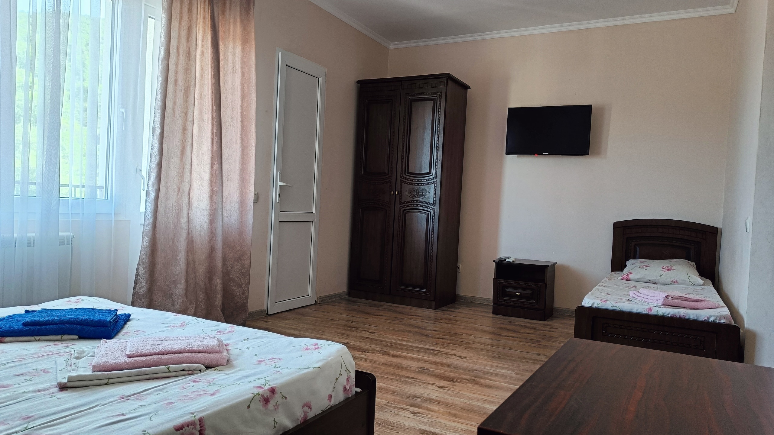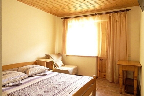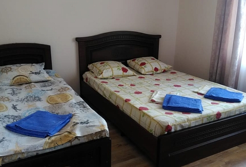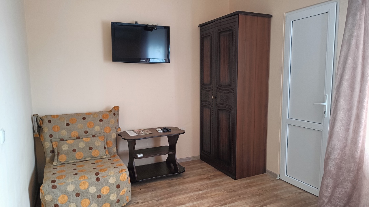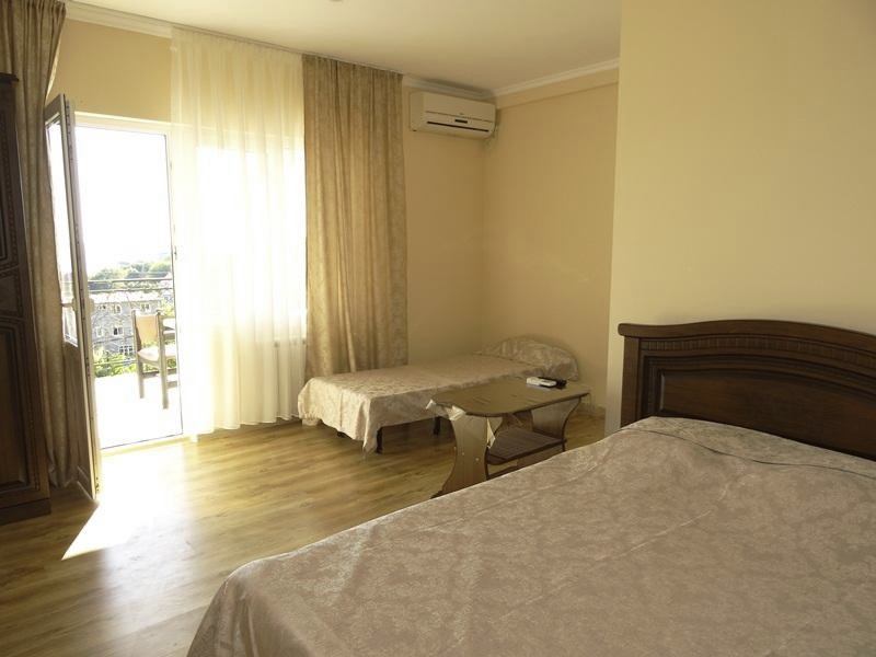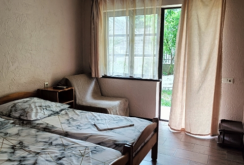 В комнатах есть кондиционер, телевизор, также в номерах корпуса 2 предусмотрены балконы. На территории для отдыхающих организована общая кухня, укомплектованная посудой и техникой, есть терраса для отдыха, крытая веранда и место для пикника. На территории третьего корпуса установлен каркасный детский бассейн, гости с 1,2 корпуса так же могут им пользоваться. Всего в 30 метрах расположена столовая, где можно вкусно покушать. Также среди услуг — парковка, стиральная машина, беспроводной интернет. Для детей - детская лайт-анимация, детский уголок. А всего в 500 метрах от отеля находится галечный пляж.