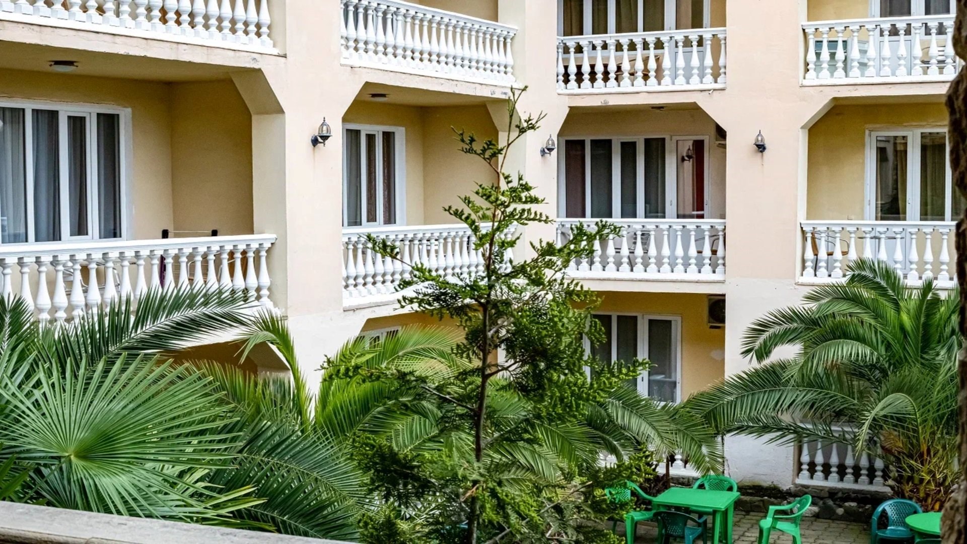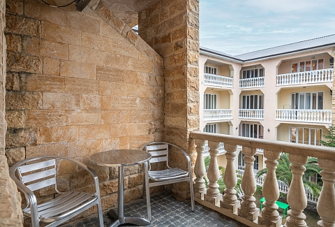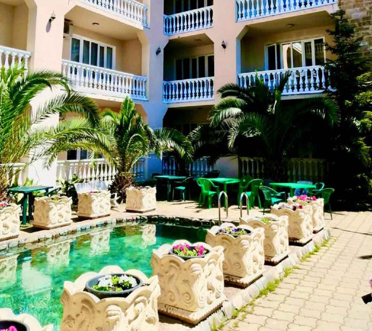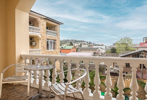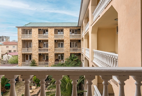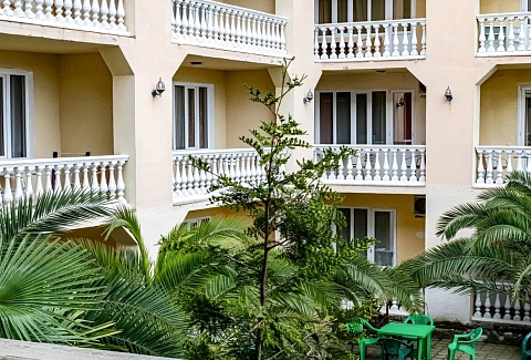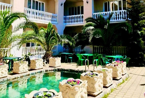Четырехэтажное здание гостевого дома разместилось на благоустроенном участке, на котором высажены экзотические тропические растения. Гостей ожидают номера разных категорий: Стандарт, Семейный, Комфорт, Делюкс. Во всех комнатах есть кондиционер, индивидуальный санузел, телевизор и беспроводной интернет, в некоторых номерах предусмотрены балконы. На территории гостевого дома работают столовая и летнее кафе, где отдыхающие могут заказать себе трехразовое питание. В распоряжении гостей открытый подогреваемый бассейн, лаундж-зона с диванчиками и шезлонгами. Для любителей спорта оборудован тренажерный зал, по вечерам проходят различные развлекательные программы с конкурсами, рассчитанные как на взрослых, так и на детей. Также для юных гостей организована игровая площадка с батутом и горками, работает детский клуб, за малышами присматривают воспитатели, а дети постарше участвуют в детских дискотеках. В 500 метрах от гостевого дома расположился поселковый пляж. На побережье мелкая галька, установлены раздевалки, навесы, отдыхающим предлагаются различные водные развлечений: катания на гироскутерах, бананах, таблетках.