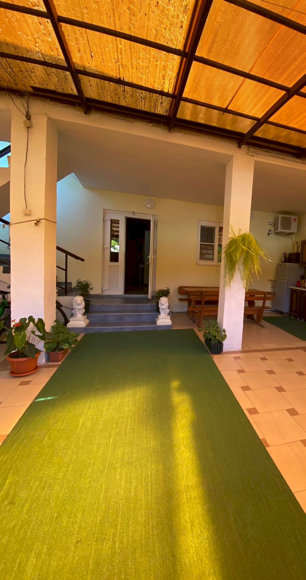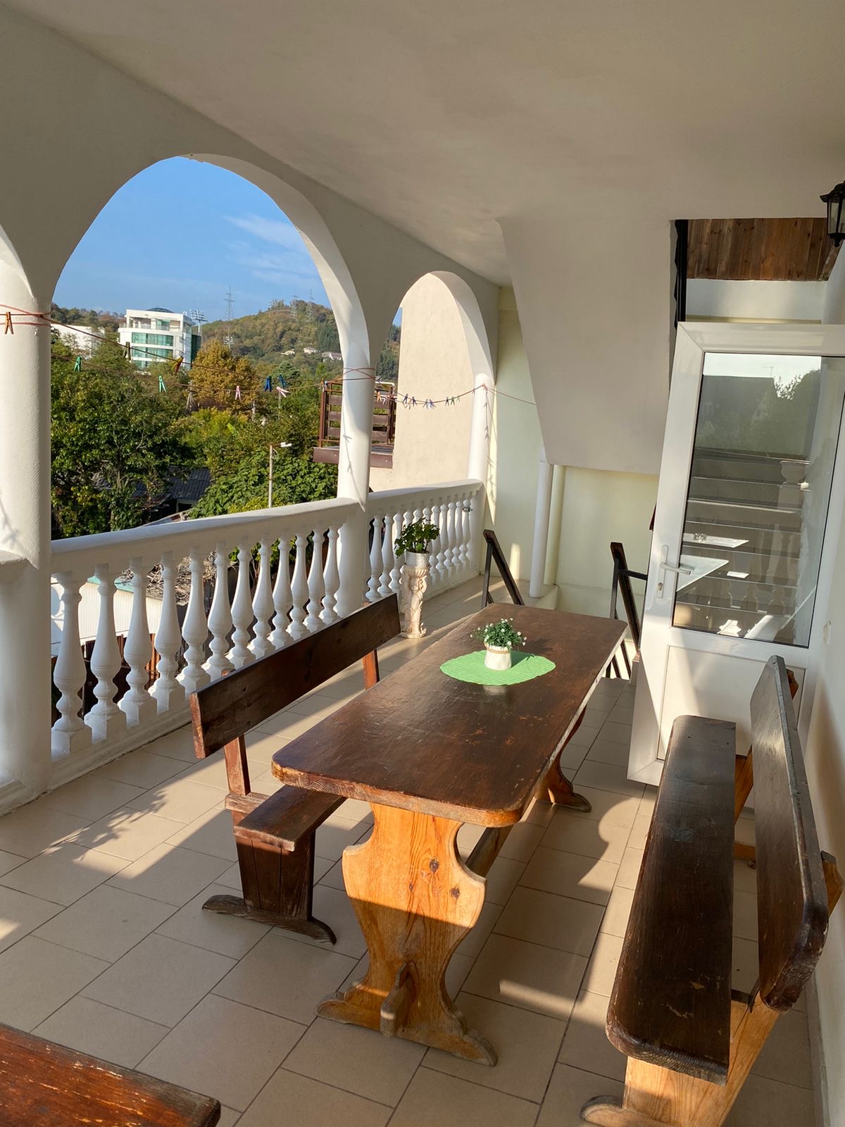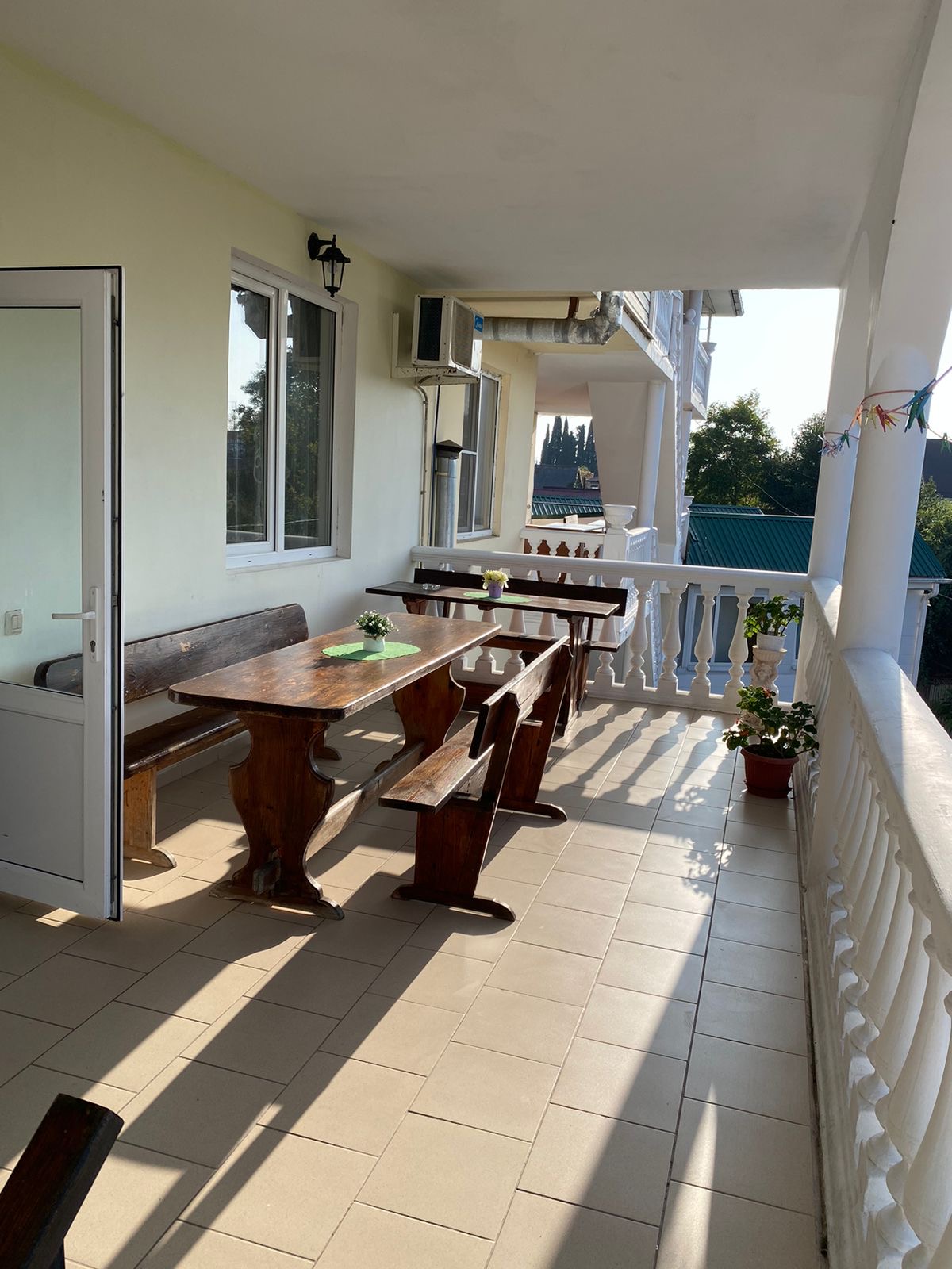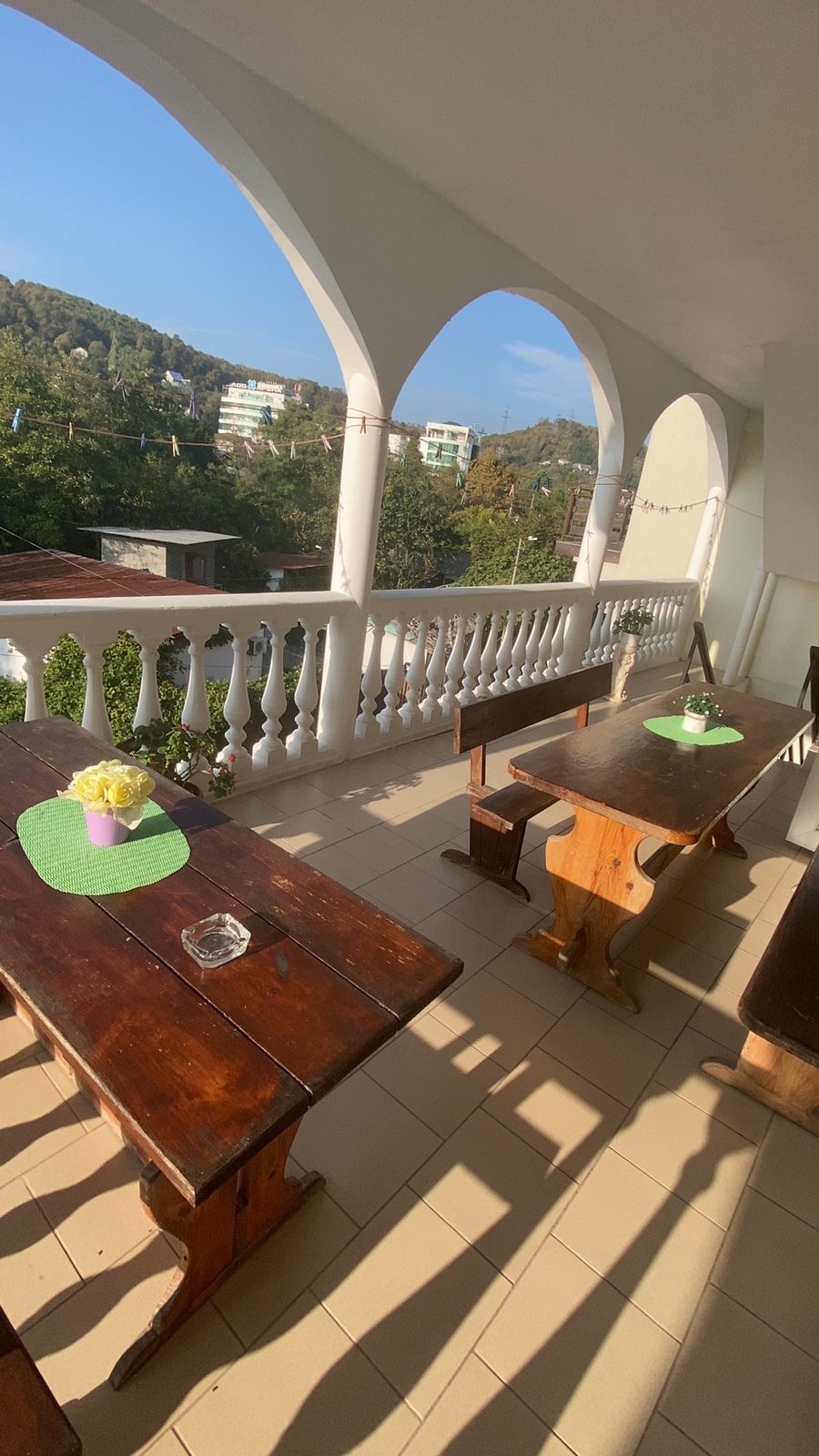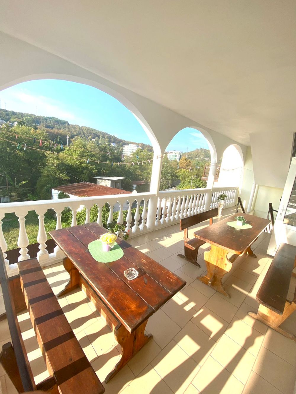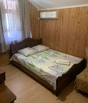В каждом номере имеется удобная мебель, кондиционер, телевизор и холодильник. Для удобства гостей на 1 этаже имеется микроволновая печь, стиральная машина и гладильная доска. На каждом этаже в общем пользовании - дополнительный холодильник и чайник. Вечера приятно дополнят террасы с видом на горы и местную реку, ухоженный дворик с местом для отдыха и детским уголком. Во дворе оборудована мангальная зона, есть парковка.