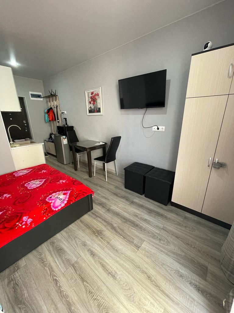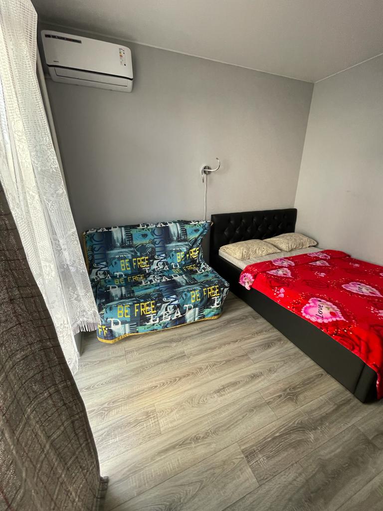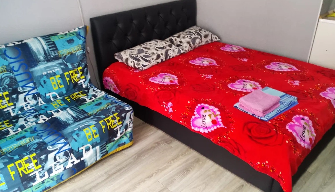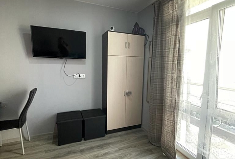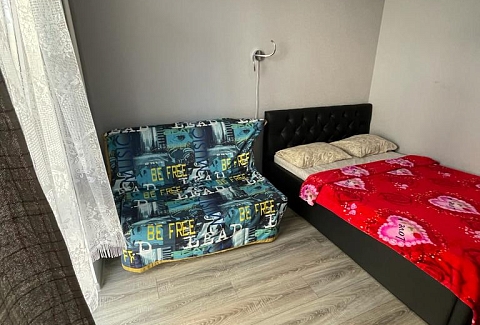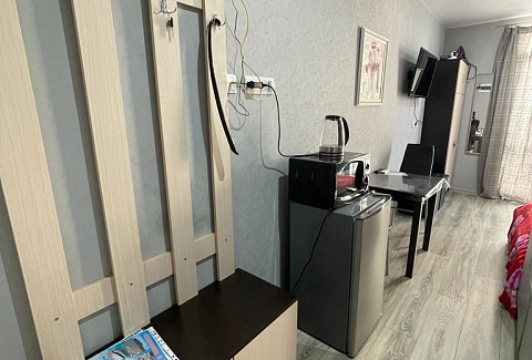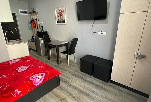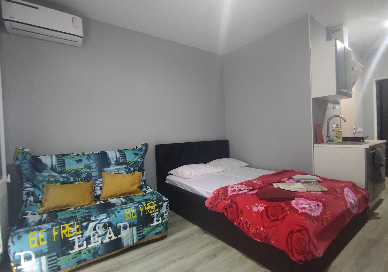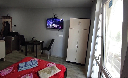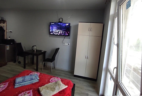 В номере: вешалка, диван раскладной, кровать двуспальная, стол, стулья, шкаф, кондиционер, микроволновая печь, мини-холодильник, набор посуды, плита электрическая, стиральная машина, телевизор