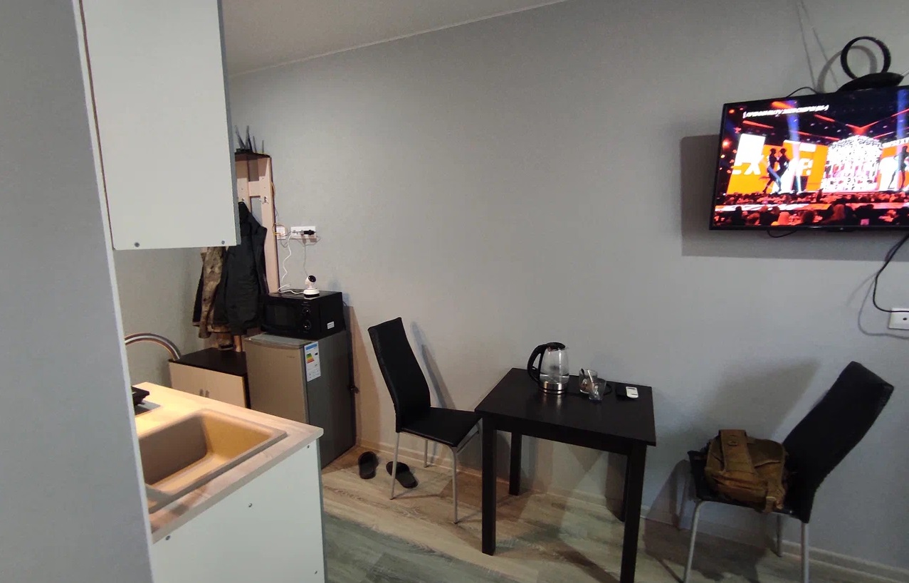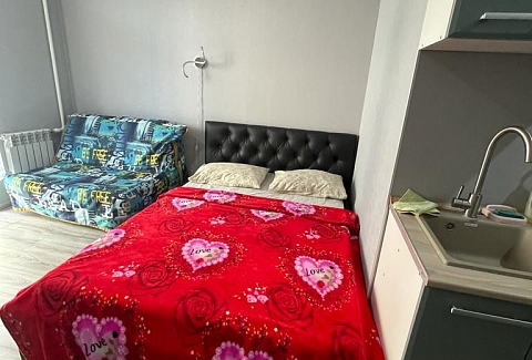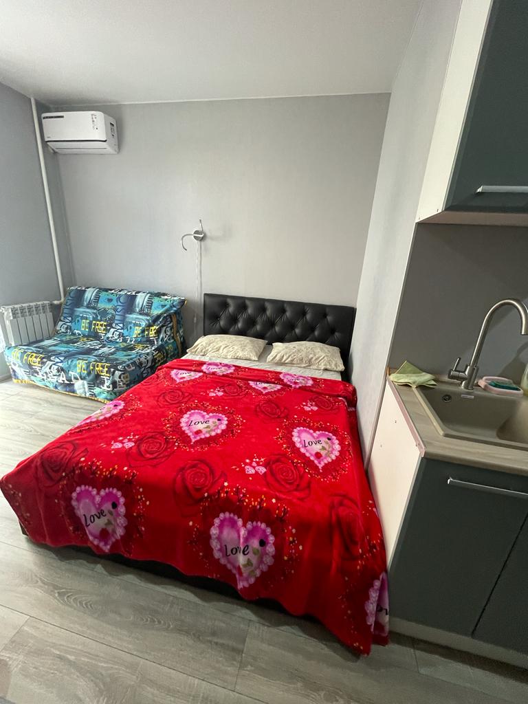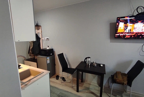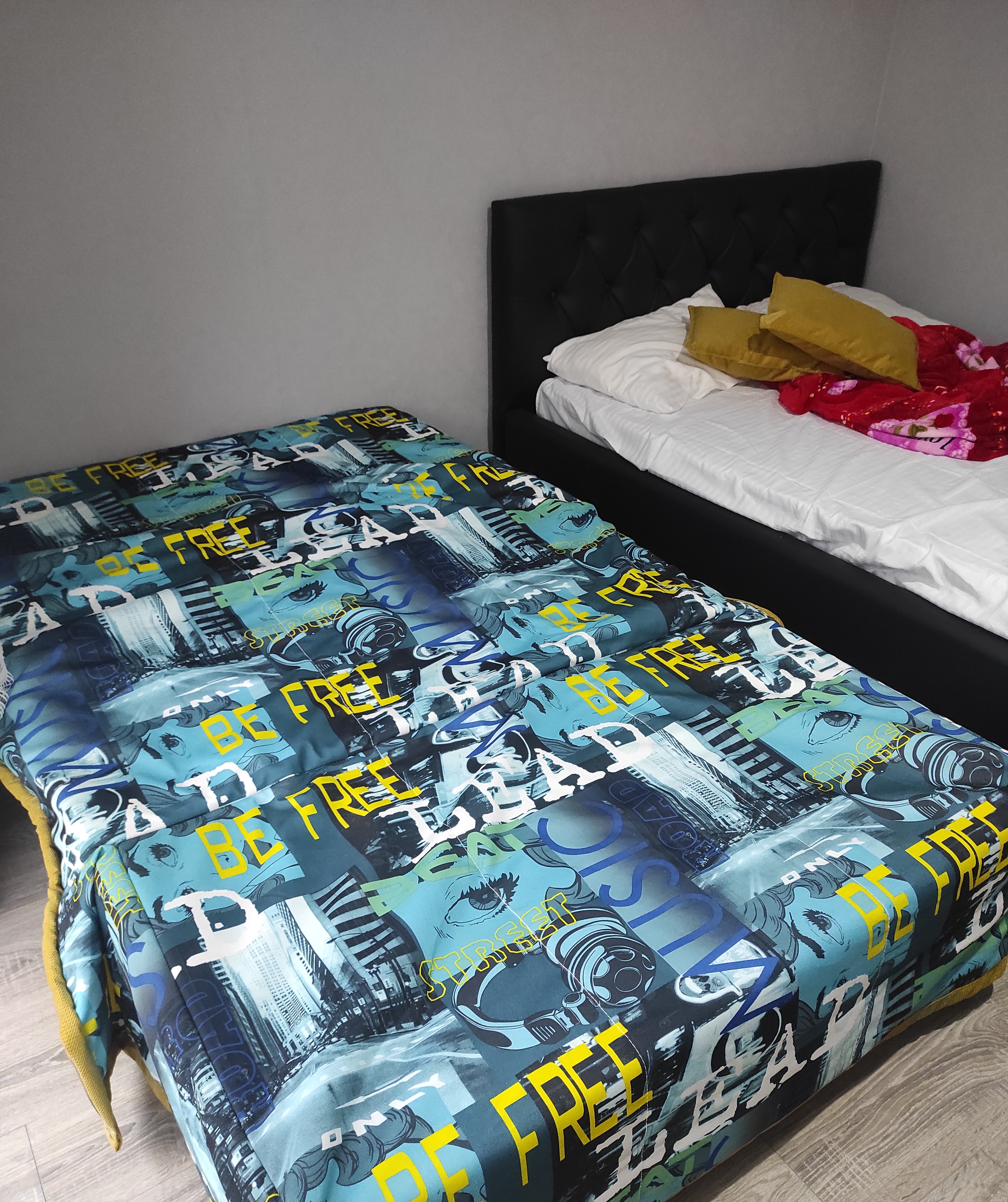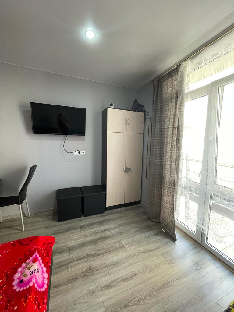 В номере: вешалка, диван раскладной, кровать двуспальная, стол, стулья, шкаф, кондиционер, микроволновая печь, мини-холодильник, набор посуды, плита электрическая, стиральная машина, телевизор