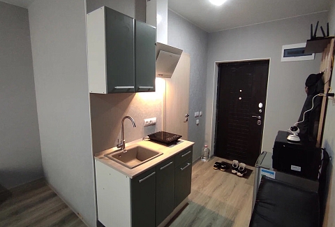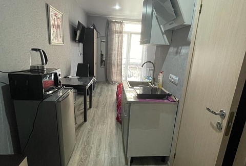 К услугам гостей телевизор, высокоскоростной интернет, кондиционер, стиральная машина. Санузел с душем, полотенцами и туалетными принадлежностями. Кухонная зона оснащена мини-холодильником, плитой, микроволновой печью и электрическим чайником. Личный транспорт можно оставить на парковке возле дома. Ближайший пляж галечный, с шезлонгами, навесами, зонтами от солнца, раздевалками и водными развлечениями на любой вкус.