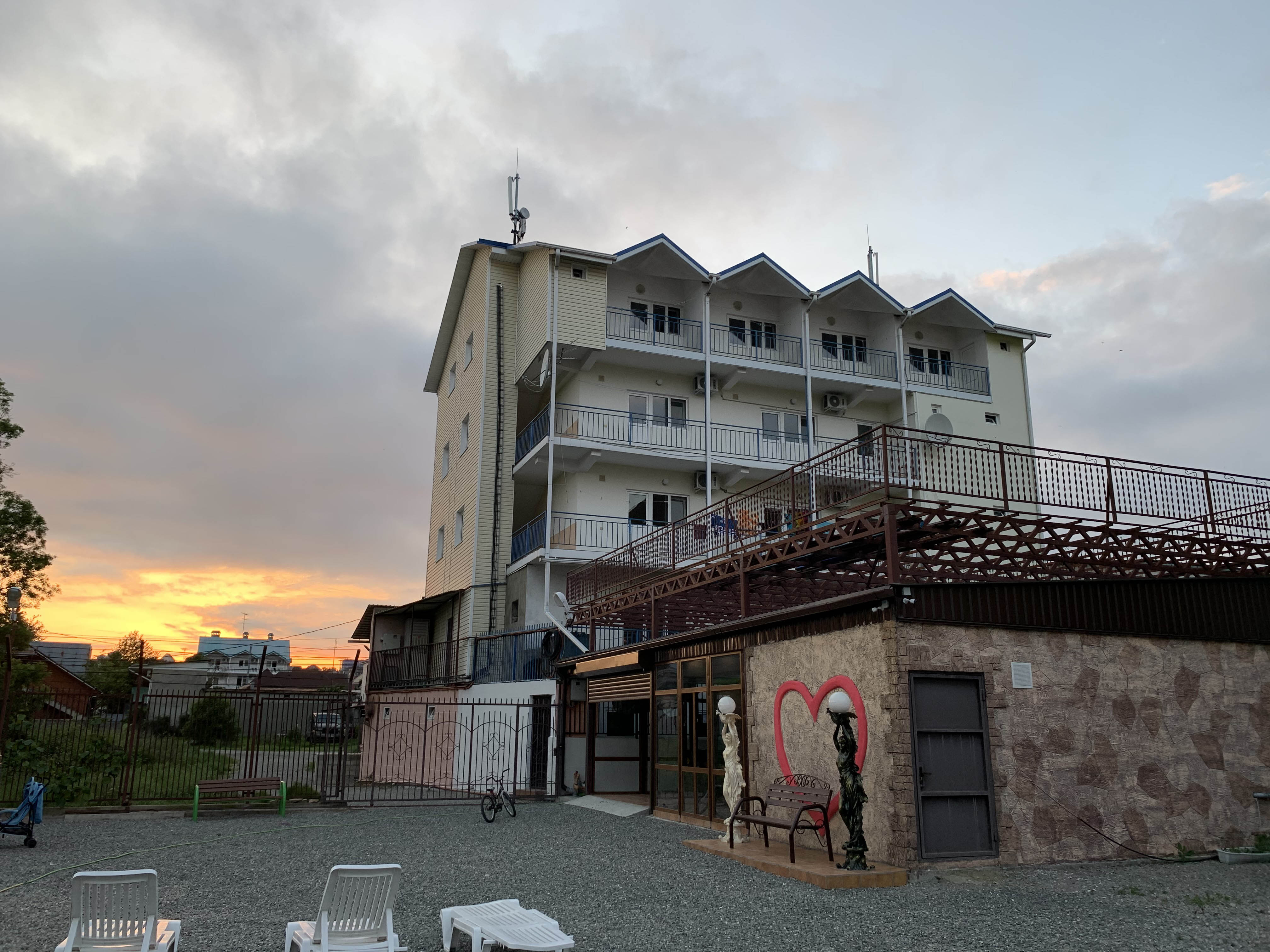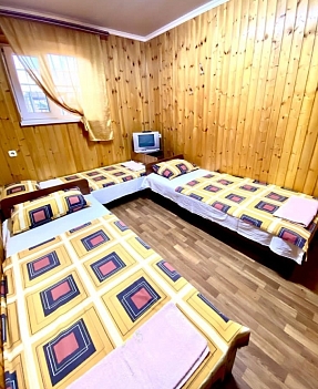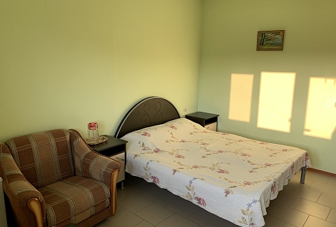 Гостевой дом «Рузана» принимает гостей круглый год и наличие некоторых удобств в его номерах зависит от цены. Так, в некоторых номерах кондиционеры заменены вентиляторами, а отдельный санузел есть только в номерах повышенной комфортности. Для постояльцев эконом-класса душ, холодильник и туалеты общие, на этаже.Пятиэтажное здание гостевого дома «Рузана» в Сочи расположено на небольшой собственной территории, ухоженной и благоустроенной.Рядом с гостевым домом “Рузана” в Сочи есть удобный стадион с турникетами и беговой дорожкой, которым могут воспользоваться любители спорта. Также для активного отдыха постояльцев предназначено оборудование для настольного тенниса.Для самостоятельного приготовления пищи постояльцами в отеле «Рузана» есть оборудованная кухня с полным набором необходимых бытовых приборов и посуды, вместительная столовая и столики на улице, беседка и мангал для пикников. При желании гости всегда смогут найти себе точку питания по вкусу в окрестностях.Поселковый пляж имеет галечное, местами – песчано-галечное покрытие и оборудован душевыми, кабинками для переодевания, лежаками и навесами. По всей протяжённости берега функционируют службы проката, водные аттракционы и мелкие пункты питания.