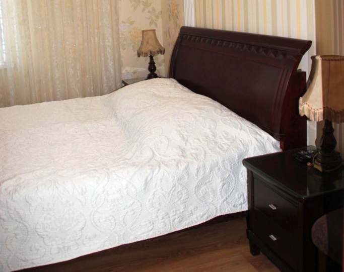 В номере: кровать двуспальная, прикроватные тумбочки, стол, стулья, шкаф, кондиционер, микроволновая печь, набор посуды, телевизор, холодильник, электрочайник