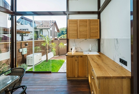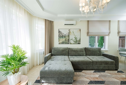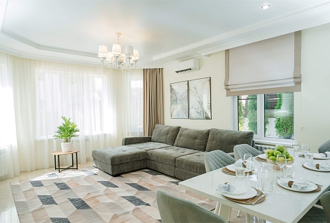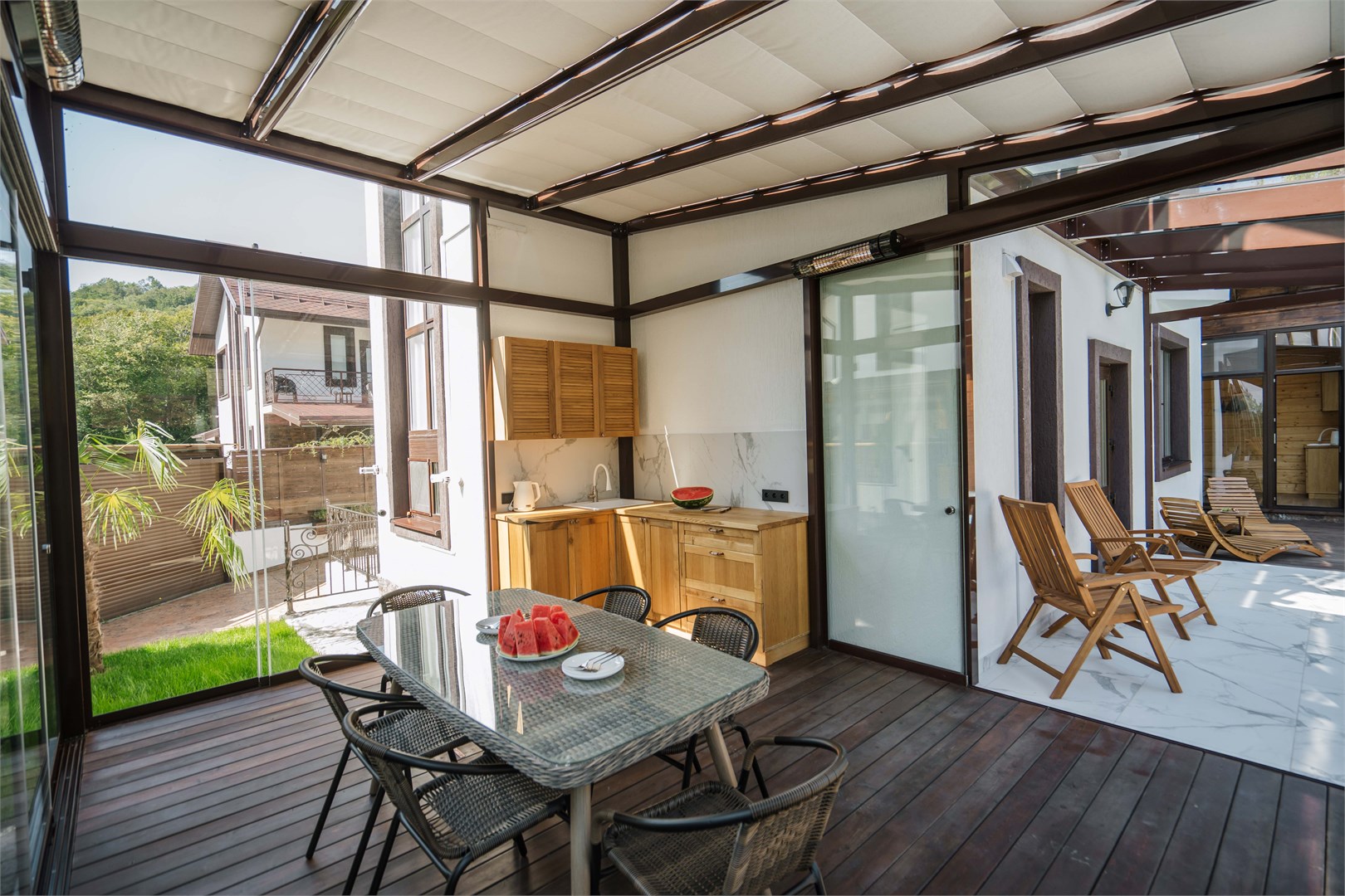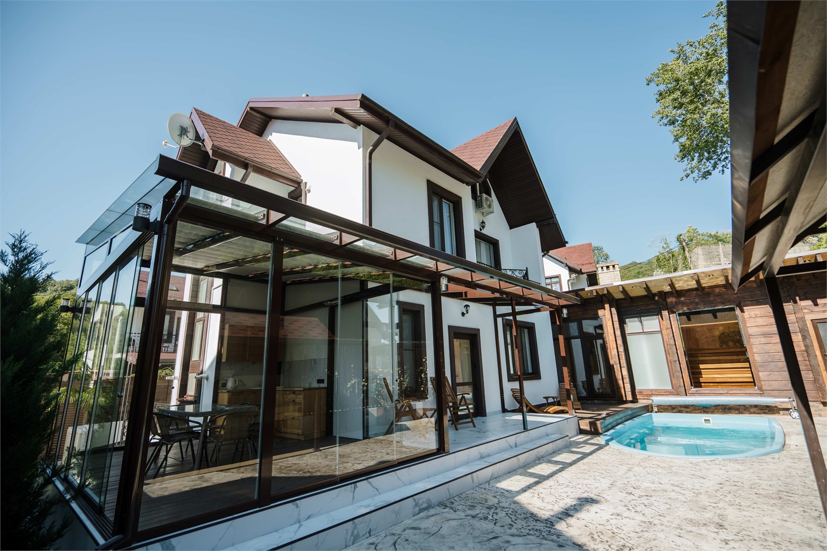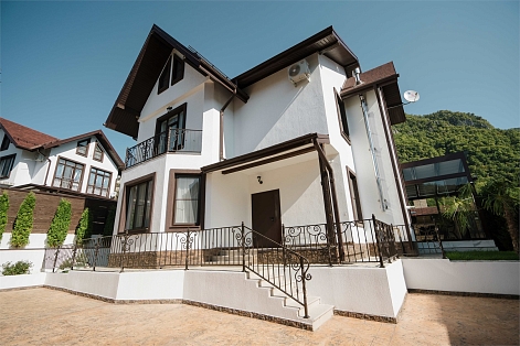 Великолепный дом в современном стиле расположен в окружении гор, всего в пятнадцати минутах езды на автомобиле до центра посёлка Красная Поляна и в двадцати минутах до аэропорта Сочи. С порога здесь открывается атмосфера комфорта и домашнего уюта. В доме пять комнат, оборудованная кухня-гостиная с полным набором бытовой техники и всем необходимым, туалет с душевой кабиной, Wi‑Fi, smart‑телевизоры и кондиционеры.