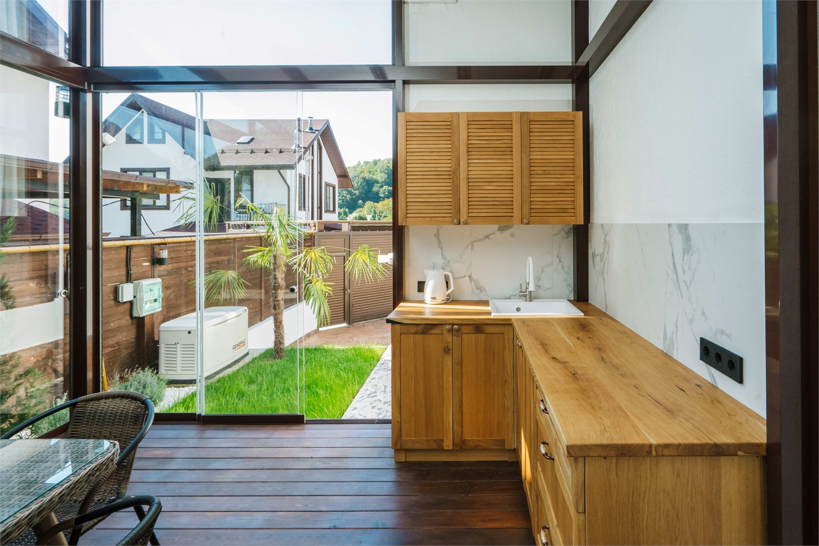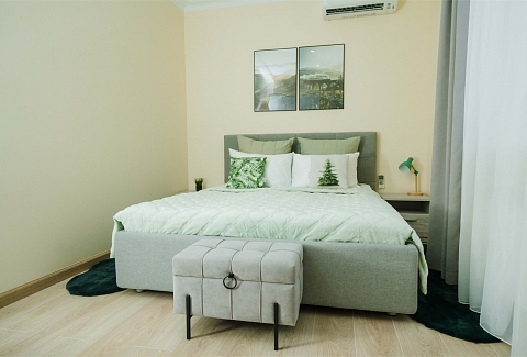 В номере: вешалка, диван, диван раскладной, зеркало, кресла, кровати односпальные, кровать двуспальная, набор мягкой мебели, набор плетеной мебели, прикроватные тумбочки, стол, столик журнальный, столик туалетный, стол обеденный, стулья, тумба, шкаф, шкаф встроенный, гладильная доска, кондиционер, кофемашина, микроволновая печь, набор посуды, стиральная машина, телевизор, утюг, холодильник, электрочайник