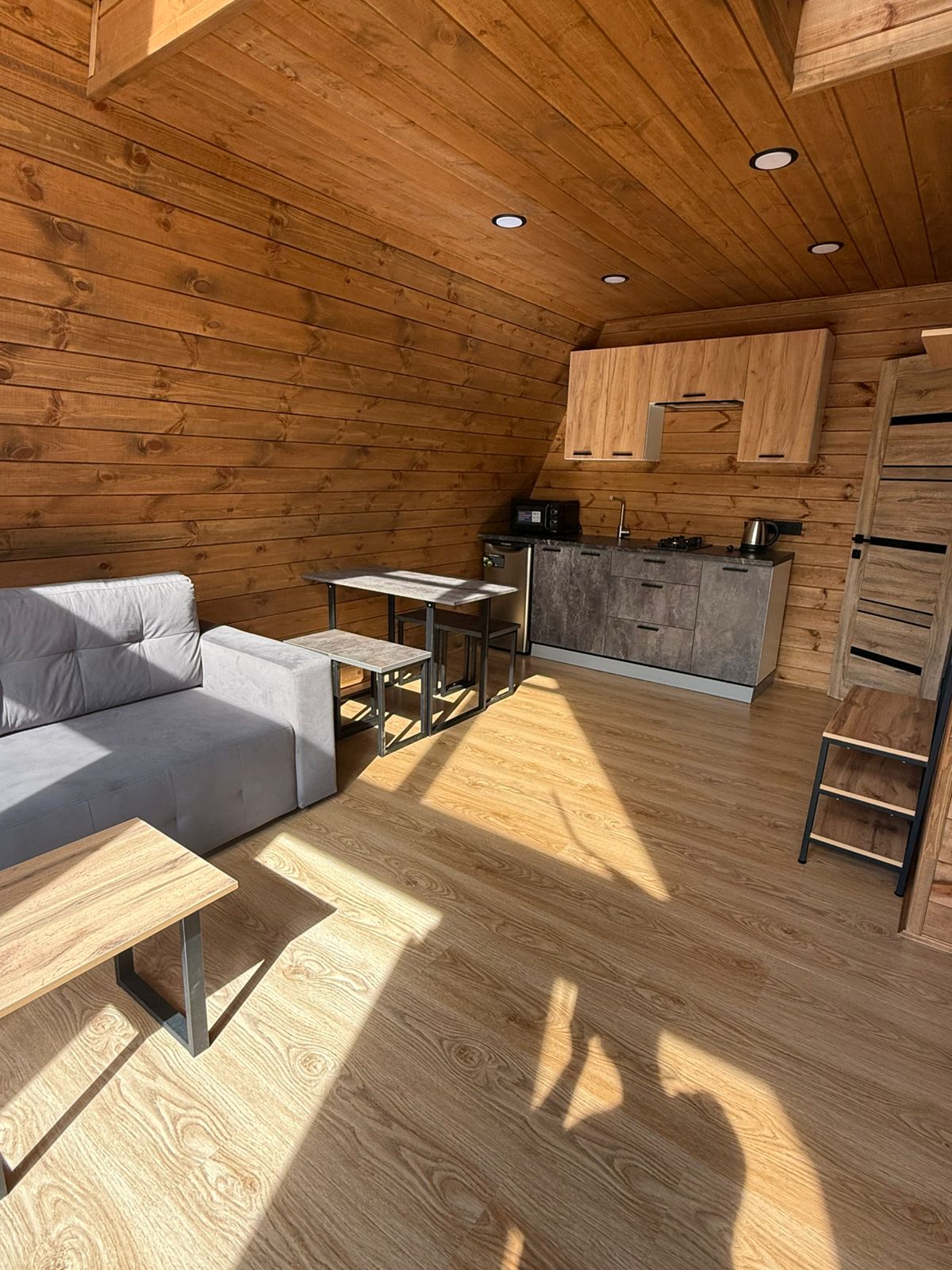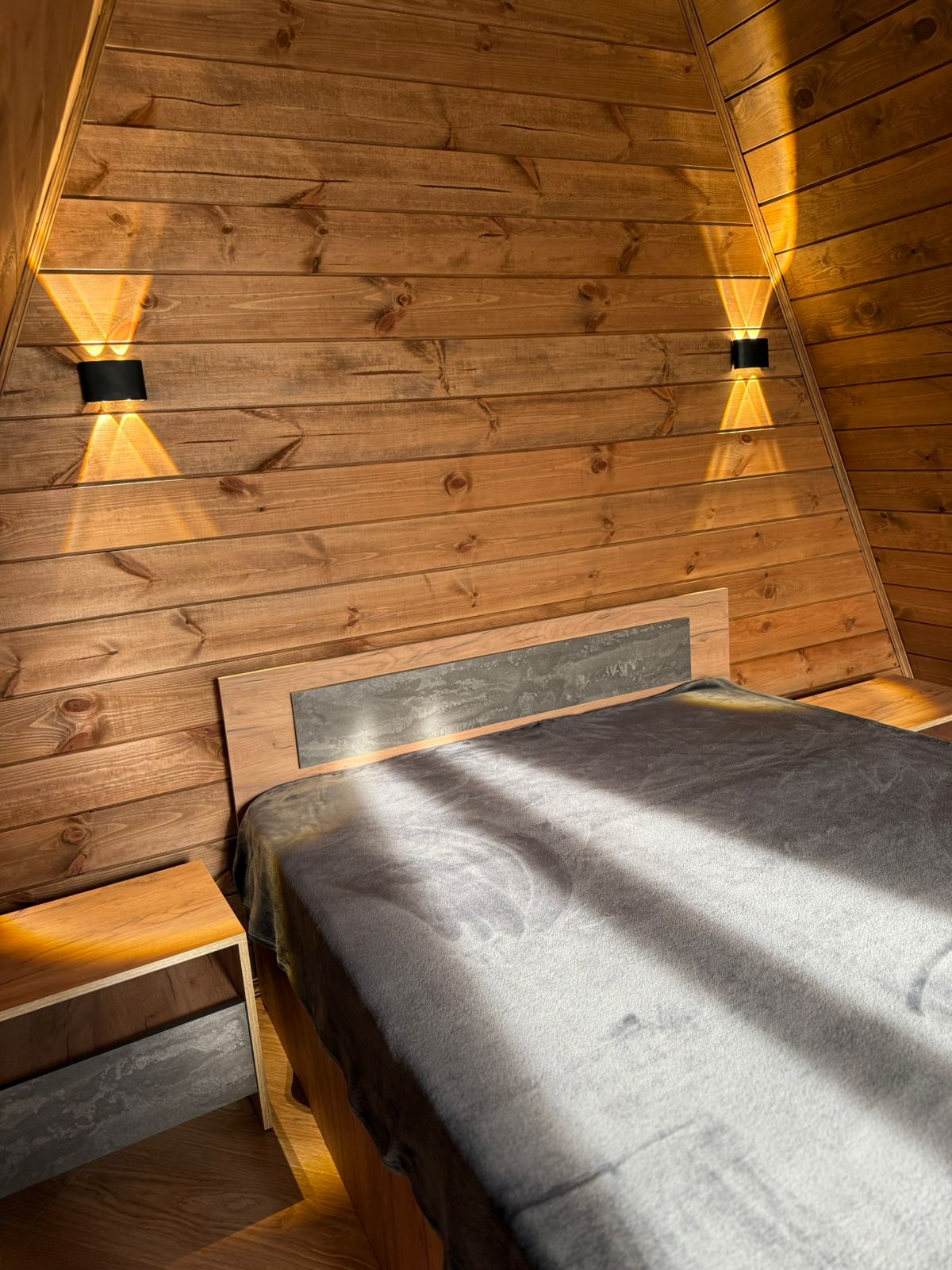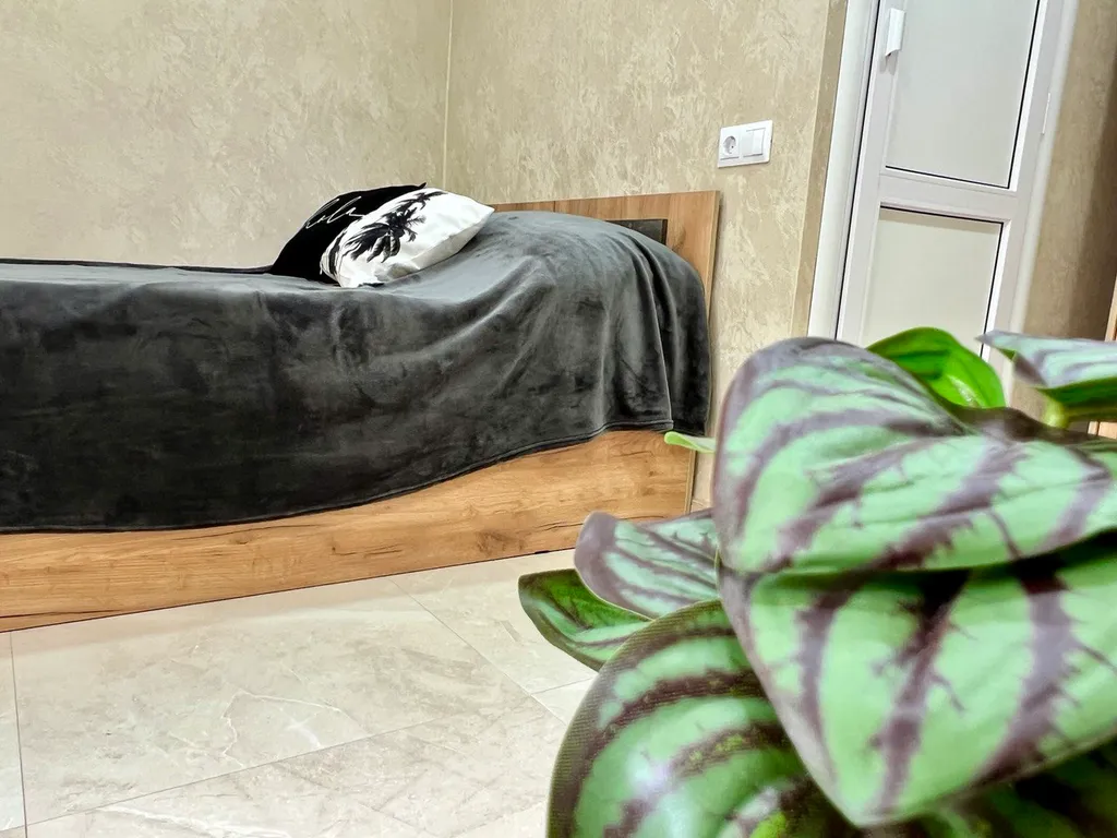 В номере: вешалка, диван, зеркало, кровать двуспальная, стол, стулья, шкаф, микроволновая печь, набор посуды, плита электрическая, телевизор, холодильник, электрочайник