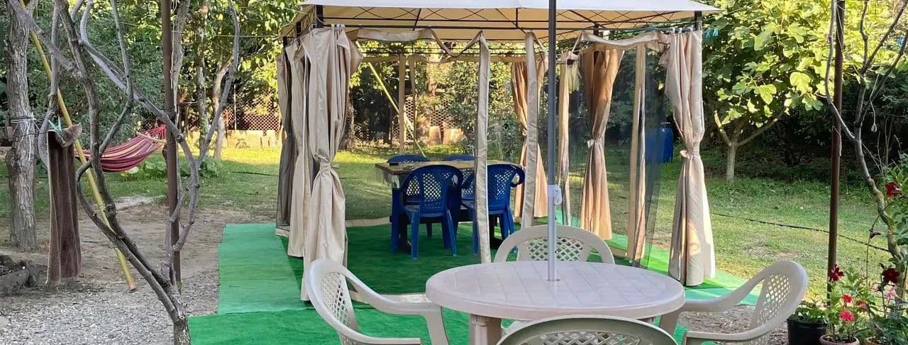 - Лаундж-зона/зона отдыха столики, телевизор, гамак, большой зонт и просторный шатёр