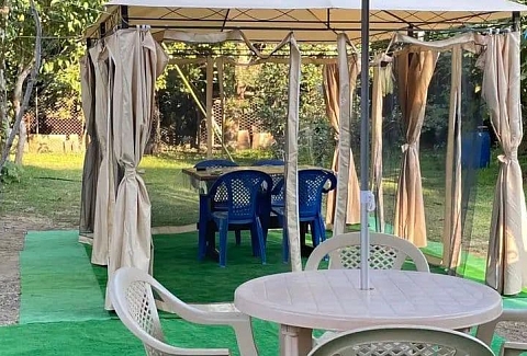 Различные столовые и кафе находятся, как в центральной зоне посёлка, так и в прибрежной. Автобусная остановка, услуги такси находятся в 5 минутах от дома. Ж/д станция расположена в прибрежной зоне в 10 минутах пешего хода, от которой с лёгкостью можно добраться до города Сочи или Красной Поляны.В Линарии просторный двор, в котором располагается теннисный стол, детские качели, бадминтон. Во дворе имеются общий телевизор и столики для проведения отдыха. На территории располагается летняя кухня для приготовления пищи со всеми необходимыми принадлежностями. Подключён интернет Wi-Fi. Для проживающих в номерах категории Эконом предусмотрены два летних душа и два туалета. В садовой части находятся большой бассейн, гамак, большой зонт и просторный шатёр, где можно позавтракать или провести тёплый и приятный вечер в кругу близких людей. Также имеется мангальная зона, в которой можно пожарить шашлыки и выпить бокал вкусного, красного, домашнего вина.Вокруг дома на ухоженной территории растет большое количество цветов, ягодных кустарников, плодовых деревьев.