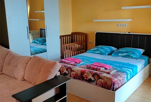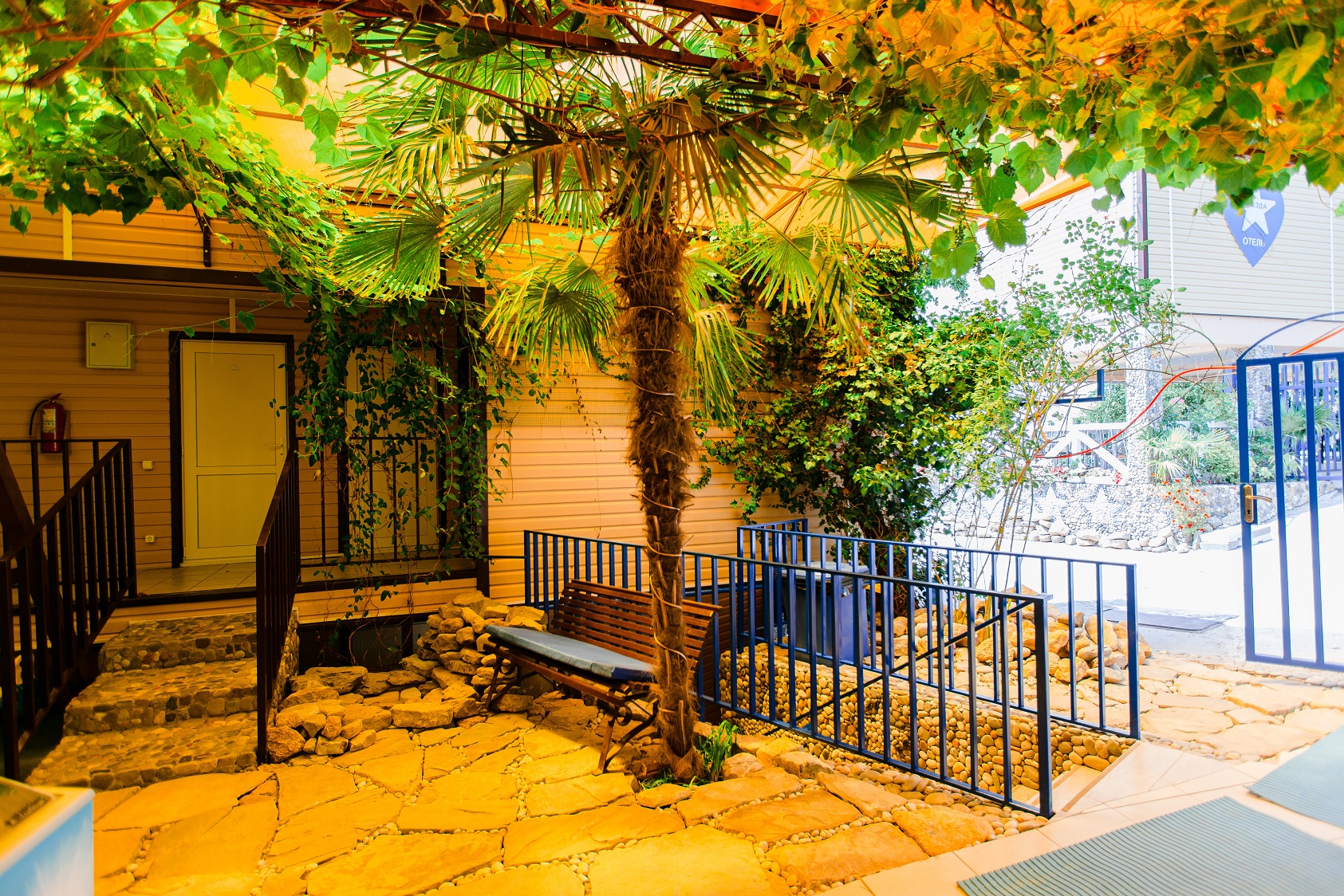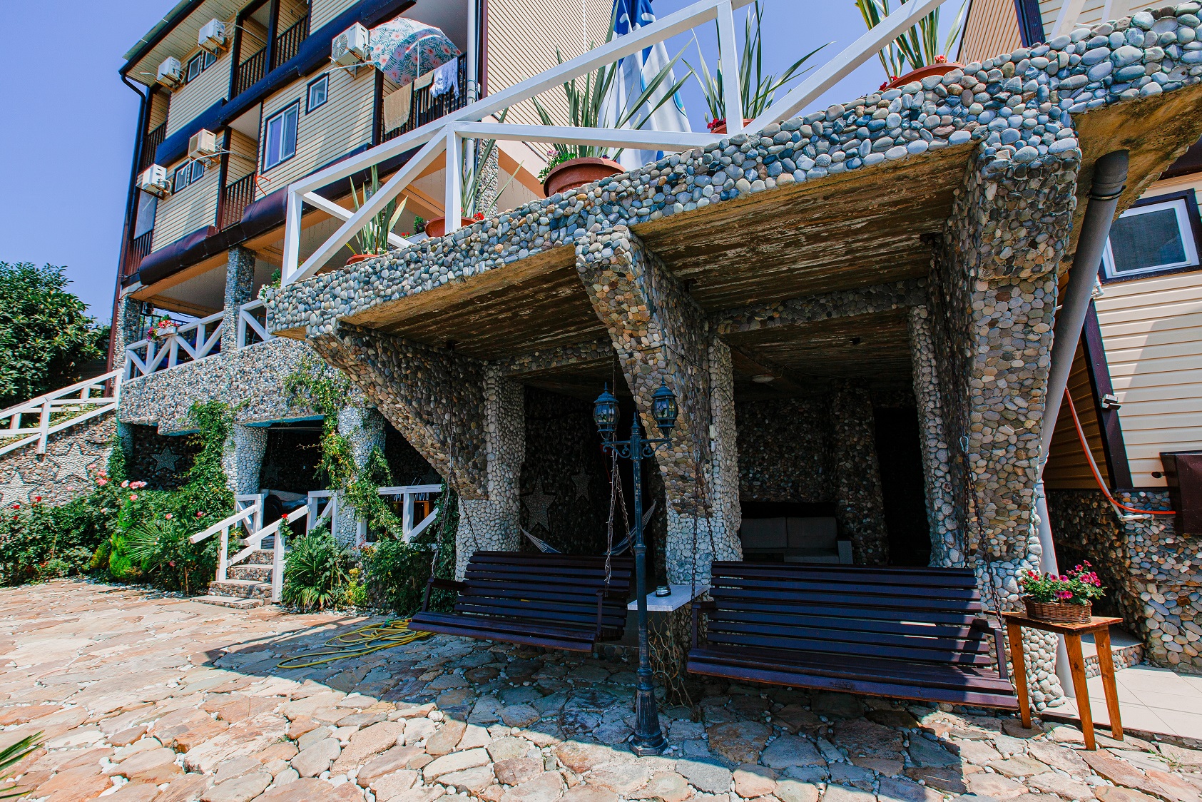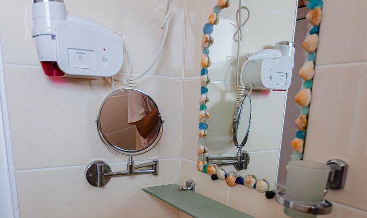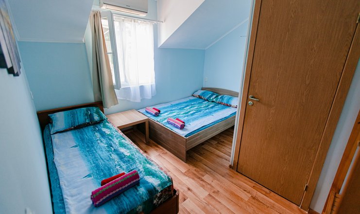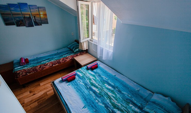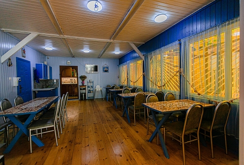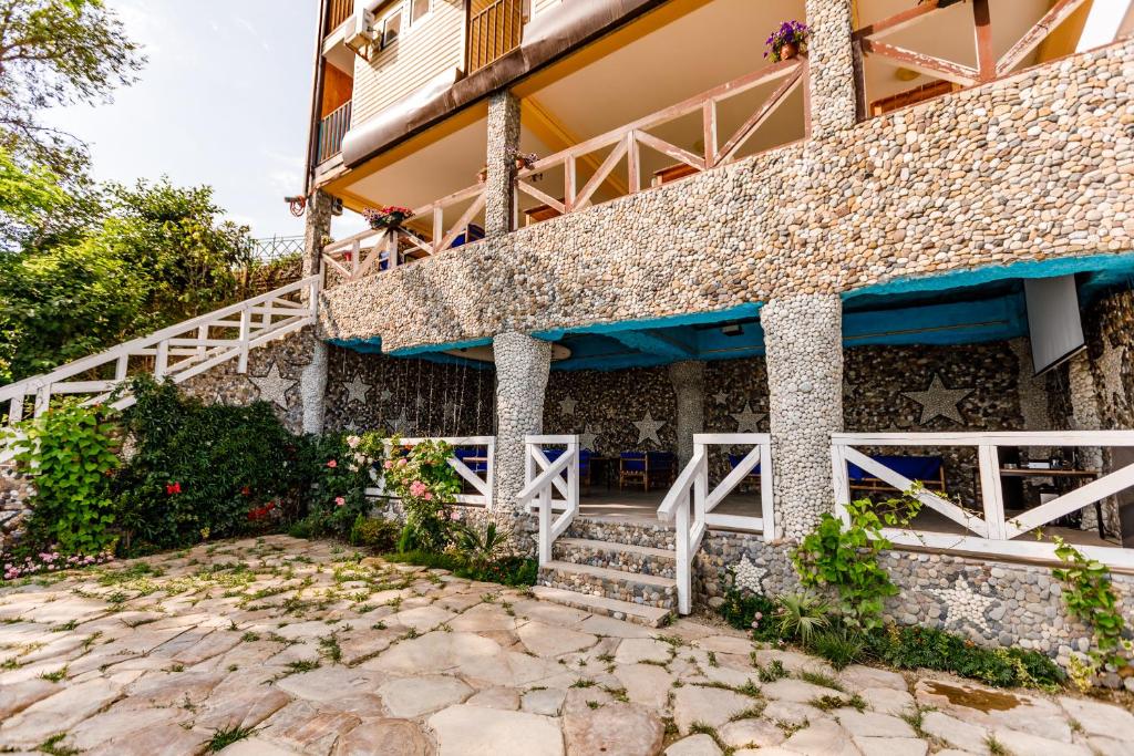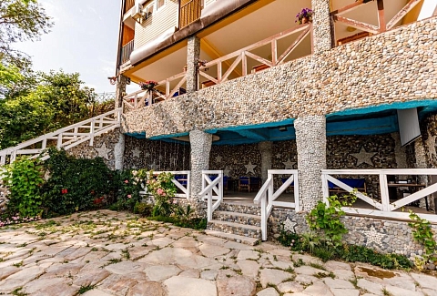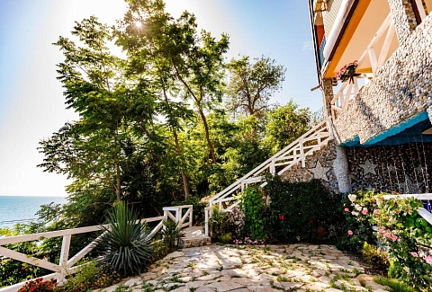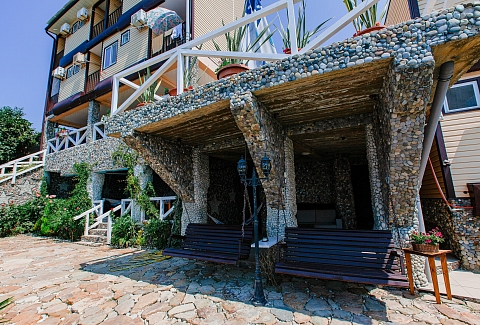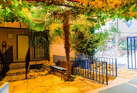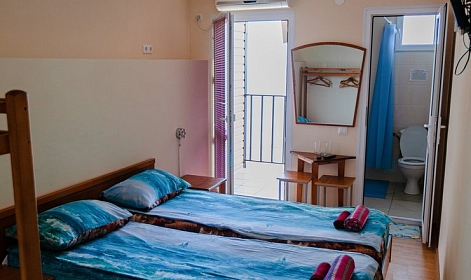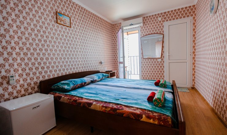 Гостей ожидают номера категории Эконом и Стандарт. Везде имеется индивидуальный санузел с душем, необходимый набор мебели, кондиционер, телевизор и холодильник. В большинстве номеров предусмотрены балконы, а из Стандартов открывается вид на море.В первом корпусе для гостей открыта столовая, в третьем работает кафе, а во дворике установлены мангалы. В распоряжении отдыхающих терраса с качелями, небольшая зона отдыха и беспроводной интернет. Юные гости могут провести время на игровой площадке, малышам администрация отеля предоставляет детские кроватки и стульчики для кормления.Всего в двух минутах ходьбы расположен галечный пляж с раздевалками, навесами и лежаками.