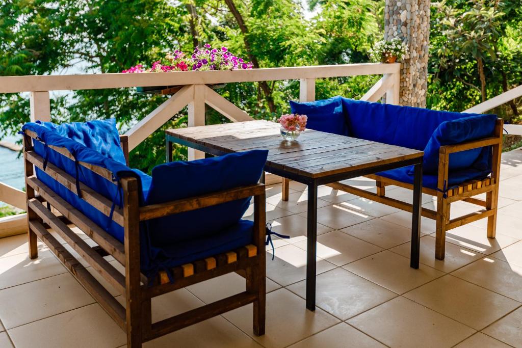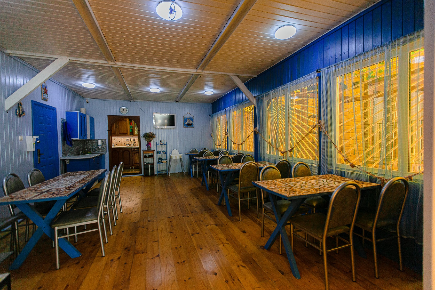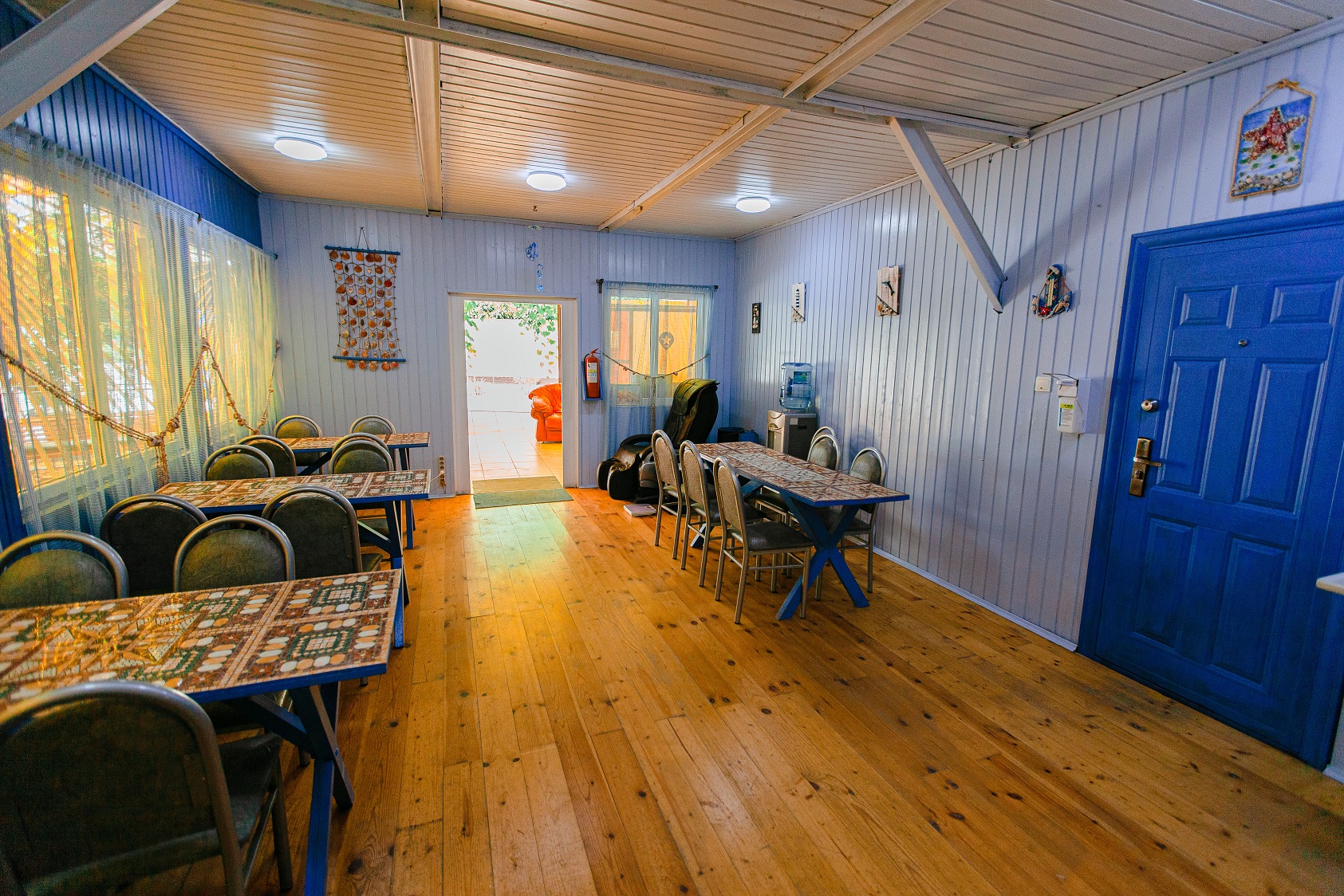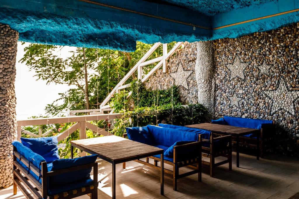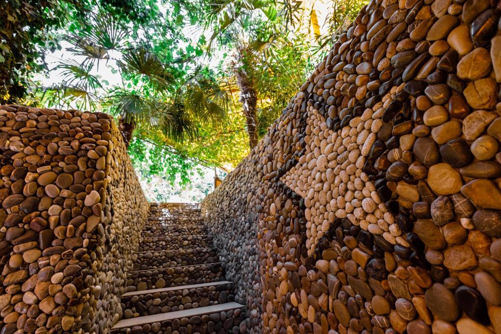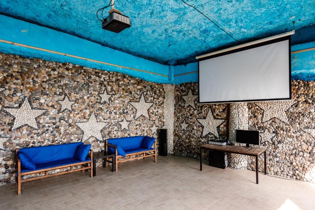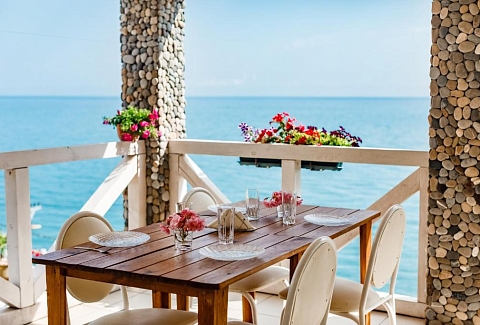 Гостей ожидают номера категории Эконом и Стандарт. Везде имеется индивидуальный санузел с душем, необходимый набор мебели, кондиционер, телевизор и холодильник. В большинстве номеров предусмотрены балконы, а из Стандартов открывается вид на море.В первом корпусе для гостей открыта столовая, в третьем работает кафе, а во дворике установлены мангалы. В распоряжении отдыхающих терраса с качелями, небольшая зона отдыха и беспроводной интернет. Юные гости могут провести время на игровой площадке, малышам администрация отеля предоставляет детские кроватки и стульчики для кормления.Всего в двух минутах ходьбы расположен галечный пляж с раздевалками, навесами и лежаками.