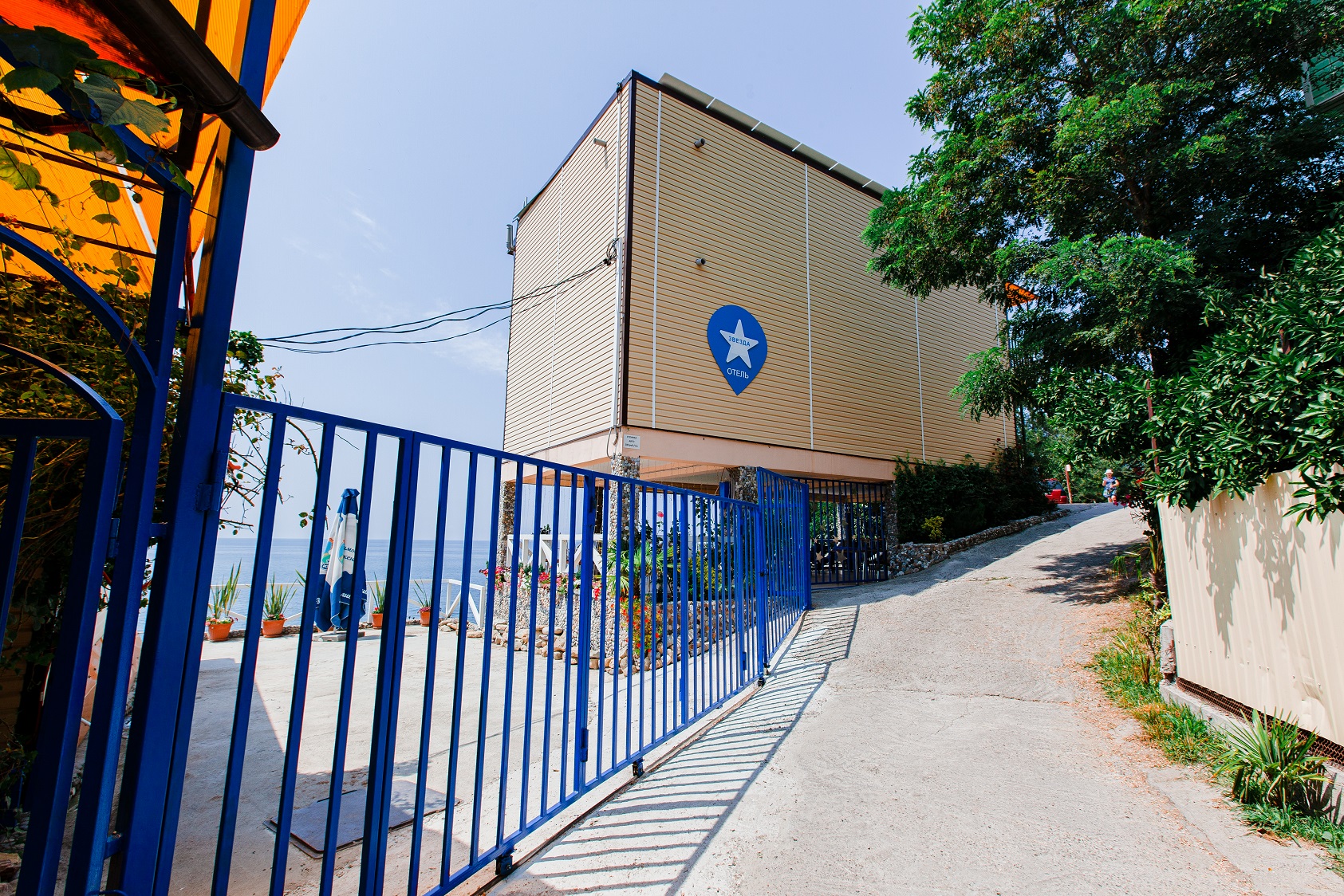 Отель «Звезда» разместился в микрорайоне Мамайка на первой береговой линии. Рядом продуктовые магазины, столовые, железнодорожная станция. За 20 минут можно доехать до центра Сочи, а в 30 километрах находится аэропорт.Отельный комплекс, состоящий из трех трехэтажных корпусов, расположился всего в 50 мерах от моря.