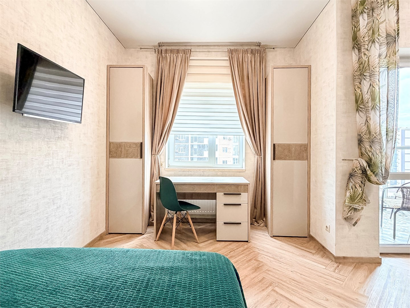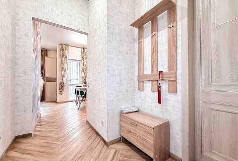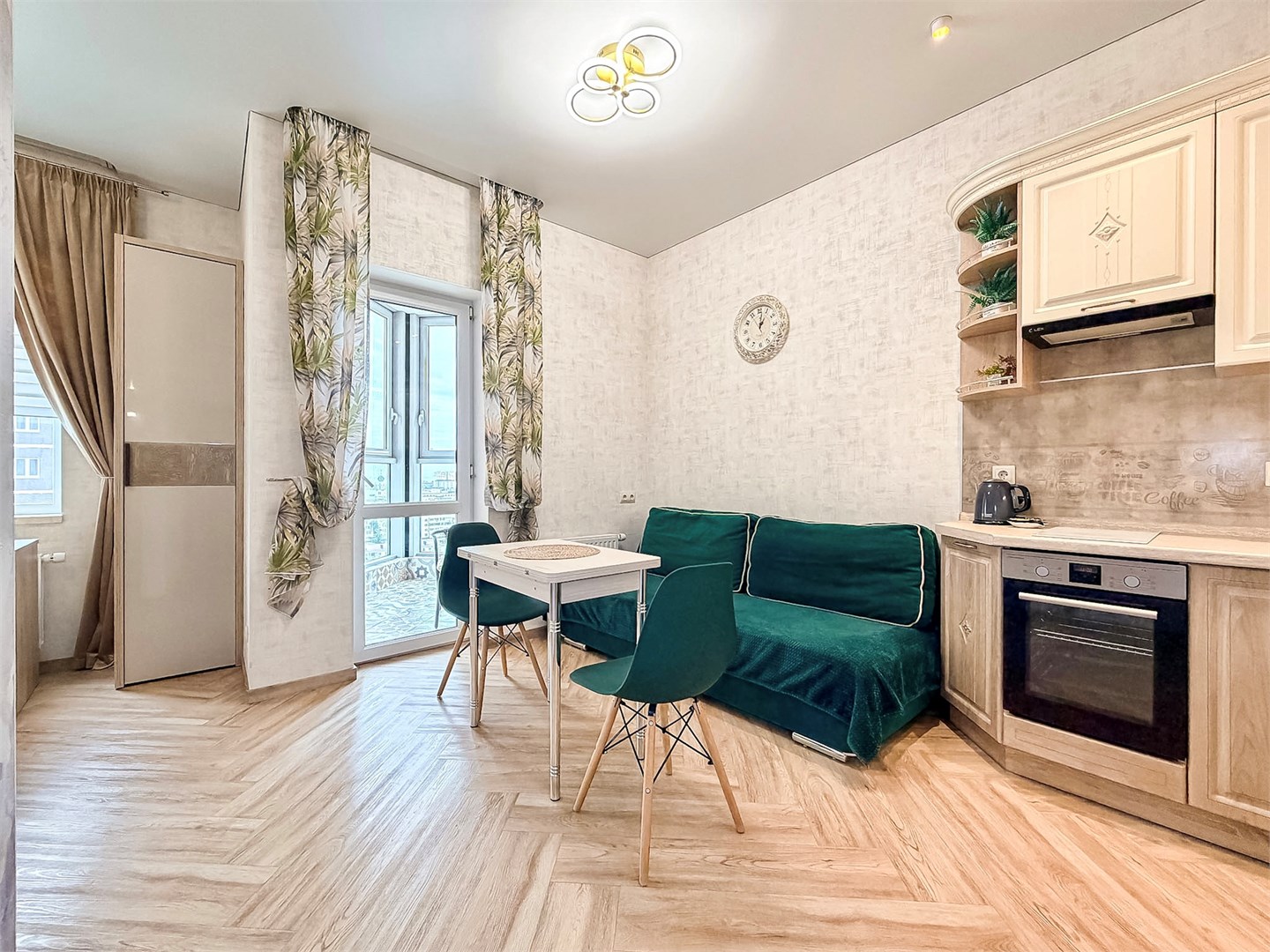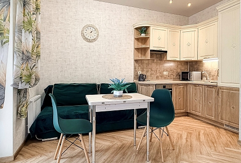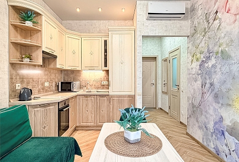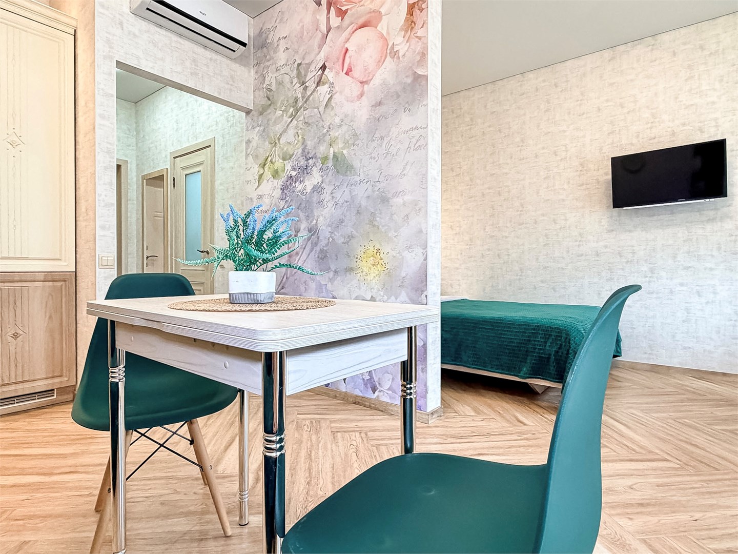В просторном номере созданы все условия для комфортного проживания: двуспальная кровать с ортопедическим матрасом, раскладной диван, полноценная кухонная зона с индукционной плитой, духовым шкафом, посудомоечной машиной и всей необходимой техникой. Апартаменты оснащены кондиционером, стиральной машиной, телевизором со Smart TV и высокоскоростным Wi-Fi. Для гостей на автомобиле предусмотрена парковка на территории жилого комплекса.Всего в трех минутах ходьбы начинается галечный городской пляж, а рядом расположены популярные зоны отдыха: пляж у яхт-клуба «Русское море», Центральный пляж и пляж «Мыс Любви».