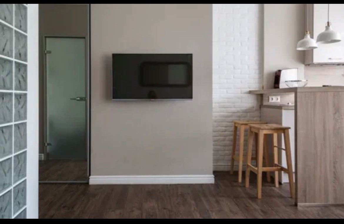 В номере: вешалка, диван раскладной, зеркало, кухонная мебель, прикроватные тумбочки, стол, стулья, тумба, шкаф, кондиционер, плита электрическая, стиральная машина, телевизор, холодильник