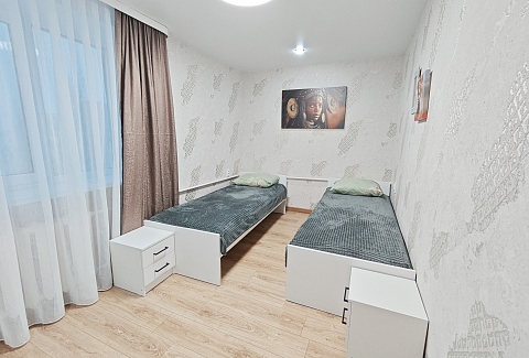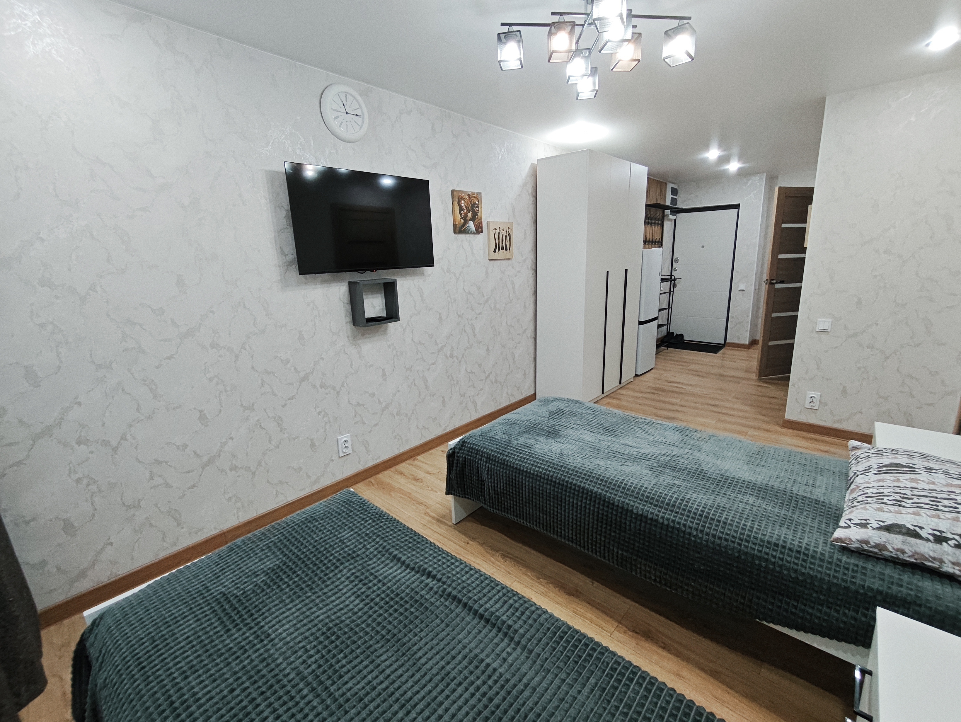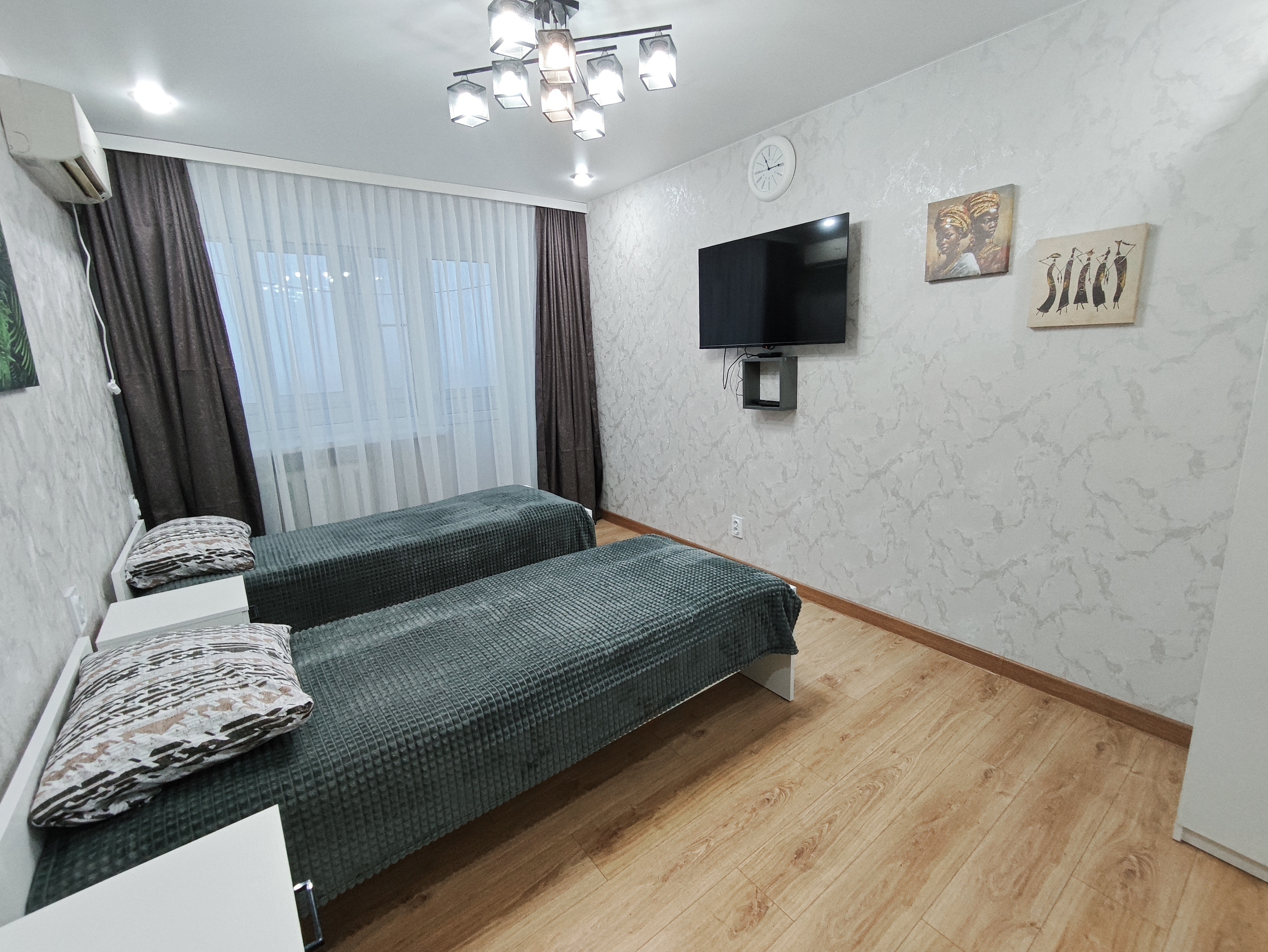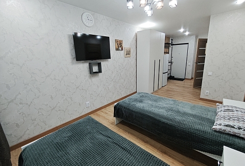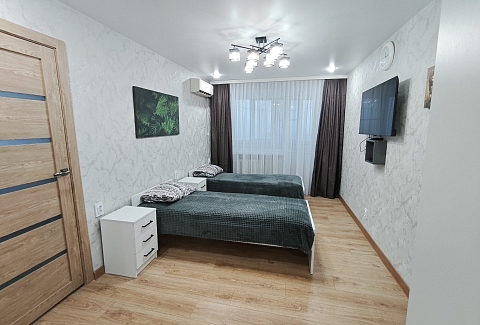 Пространство оснащено всем необходимым для комфортного проживания: работает бесплатный Wi‑Fi и смарт‑ТВ, установлена сплит‑система для поддержания приятной температуры. На кухне есть газовая панель, микроволновая печь и холодильник с морозильной камерой, а также полный набор посуды, чайник и прочие принадлежности для приготовления и приёма пищи. В ванной комнате предусмотрен душ с бесперебойной подачей горячей воды, фен и средства личной гигиены. К услугам гостей — стиральная машина‑автомат, утюг с гладильной доской и сушилка. Для удобства гостей подготовлены свежее постельное бельё, а также чай, кофе и сахар.Гостям гарантированы чистота и уют: помещения регулярно проходят уборку и дезинфекцию. Апартаменты отлично подойдут для семейного отдыха, командировок и романтических поездок.