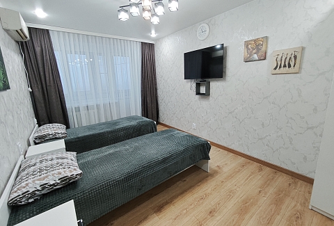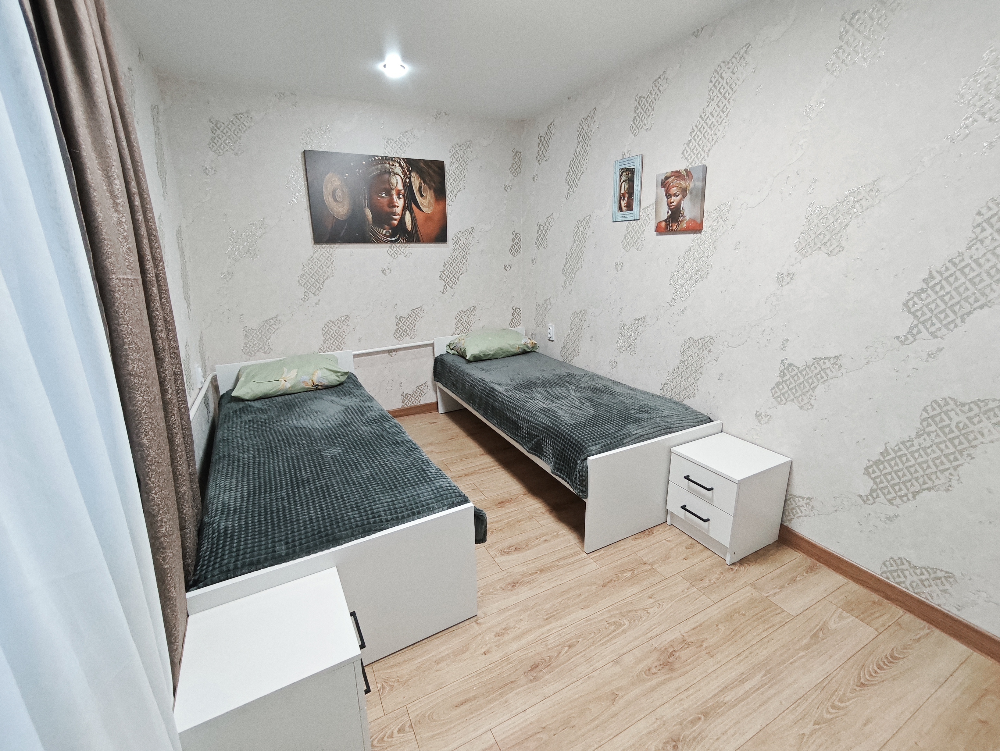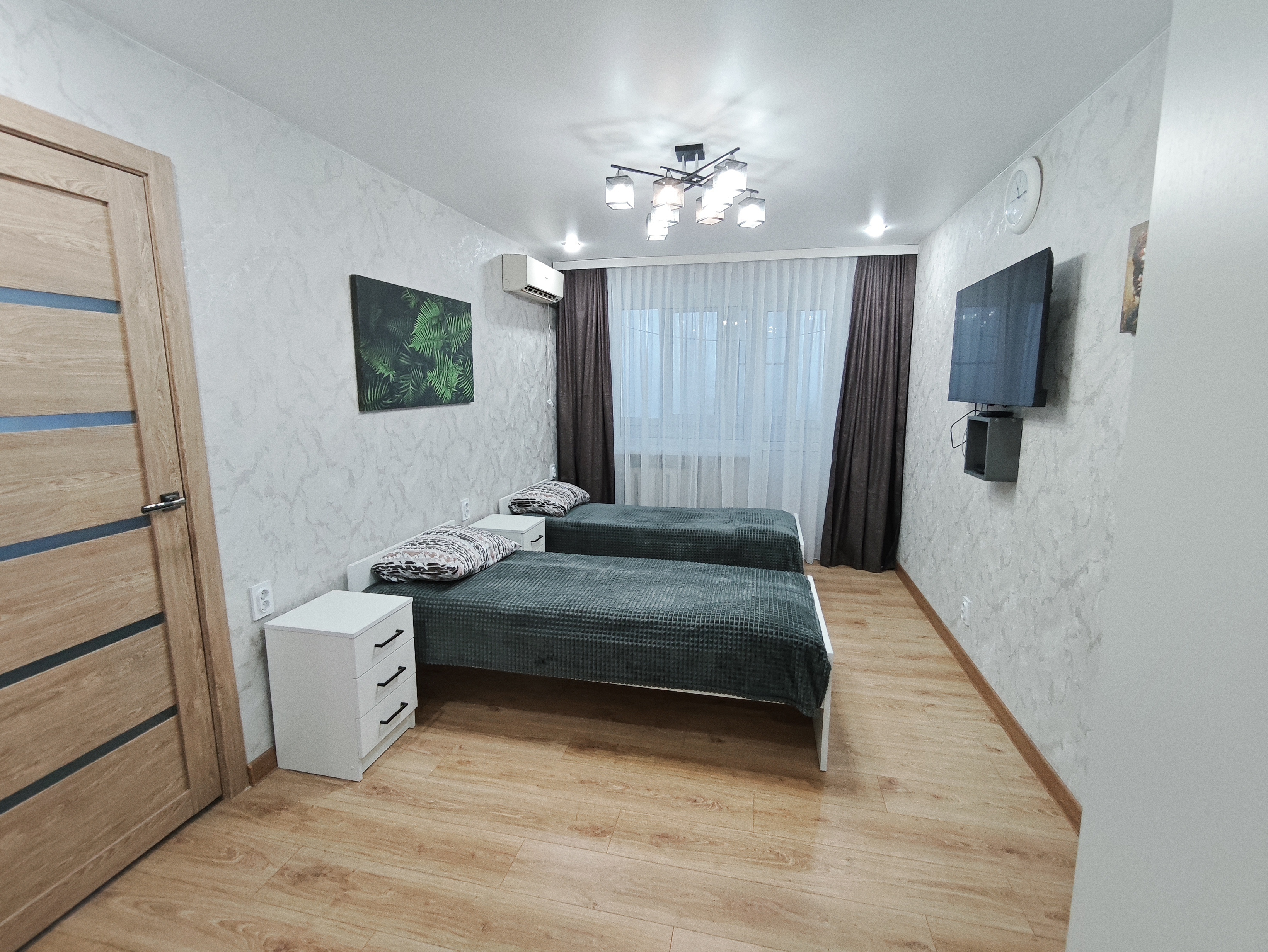 ️Апартаменты расположены в уютном районе с развитой инфраструктурой — поблизости есть магазины, остановки общественного транспорта и социальные объекты. Во дворе предусмотрена бесплатная парковка с камерами наблюдения, что гарантирует безопасность автомобиля. Для маленьких гостей оборудована детская площадка.Просторные апартаменты с новым дизайнерским ремонтом вмещают до шести гостей, в распоряжении отдыхающих шесть отдельных кроватей.