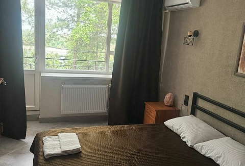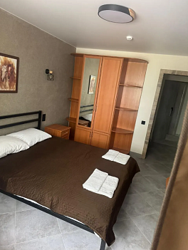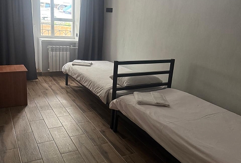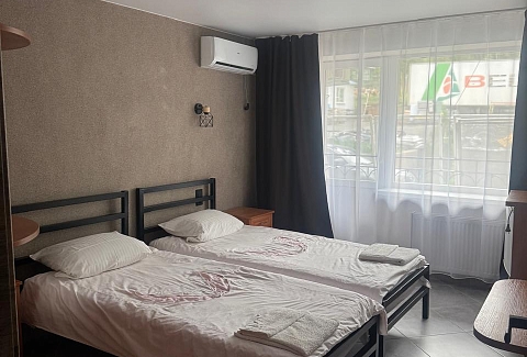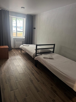 В номере: вешалка, кровати односпальные, кровать двуспальная, прикроватные тумбочки, стол, стул, шкаф, мини-холодильник, сплит-система, телевизор