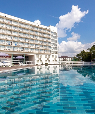 Неподалеку от Гудауты находится село Приморское, которое также близко расположено к Новому Афону. Поэтому местные термальные источники одни называют Гудаутскими, другие говорят, что они - Новоафонские. В составе здешней минеральной воды множество полезных веществ: магний, сульфаты, азот, кальций, которые образуют лечебный сероводород, избавляющий от различных недугов. Принимая целебные ванны в бассейнах под открытым небом, туристы любуются красивыми пейзажами: разросшимися эвкалиптами и горной рекой с водопадом.
